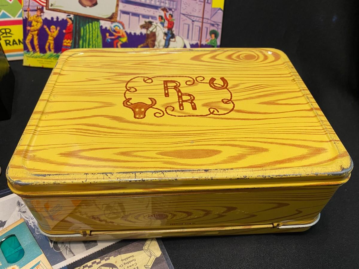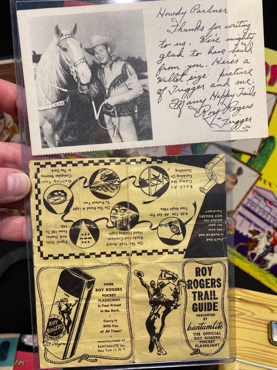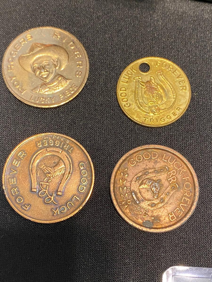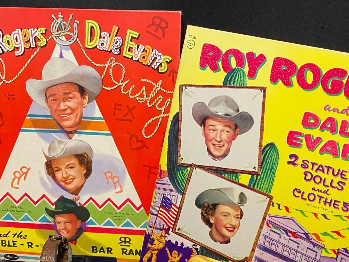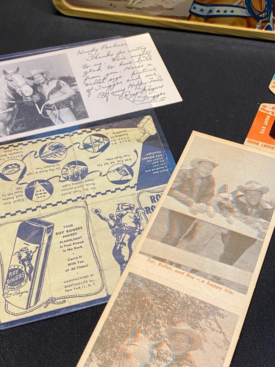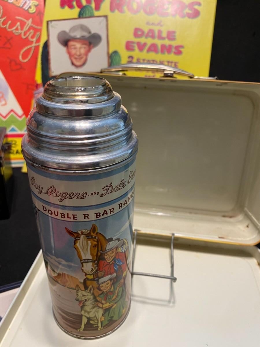 Large Lot of Roy Rogers Vintage Collectibles Ephemera Lunch Box Thermos Books Coins Badges Pins and Horseshoe