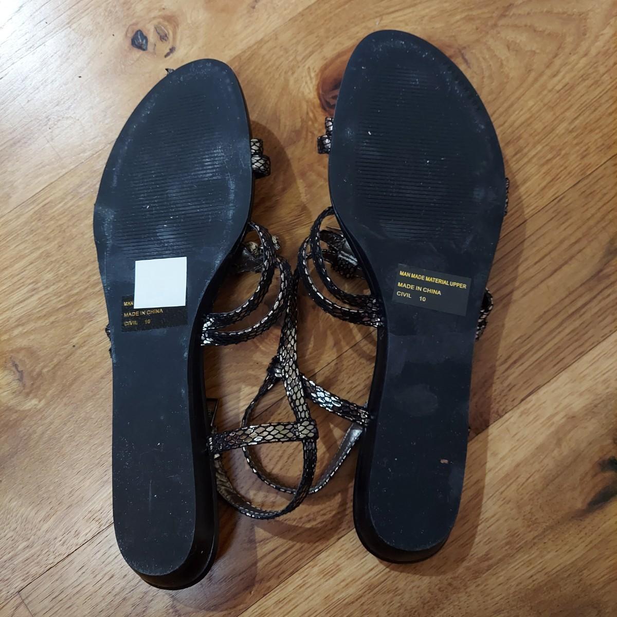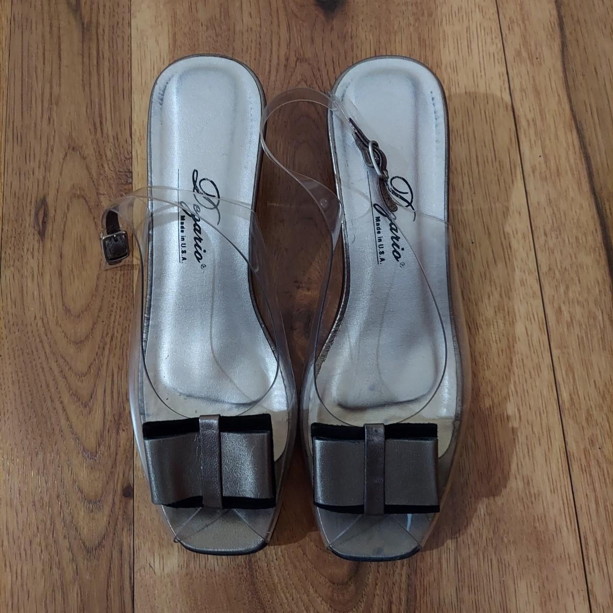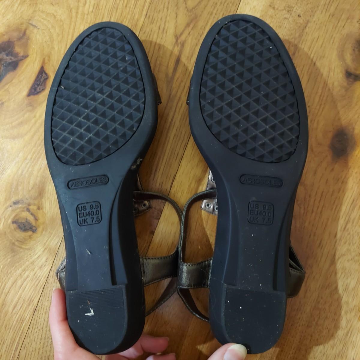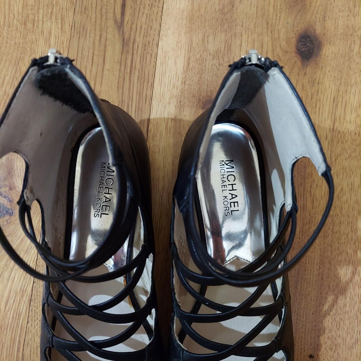 Many varying styles of heels and sandals. There are 12 pairs in this lot. Some brands include Michael Kors, Carlos Santana and Aerosoles. All shoes are marked between size 9-10. There are many flat styles, some with a 2" wedge or low heel. The Alex Marie leopard heels have a 3" heel. Shipping available.