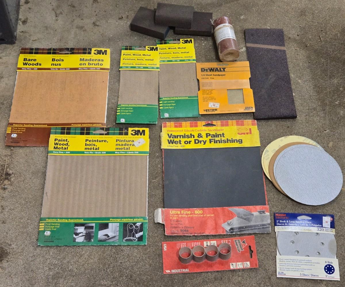 Large Lot of Sanding Paper, Discs, a Roll and More