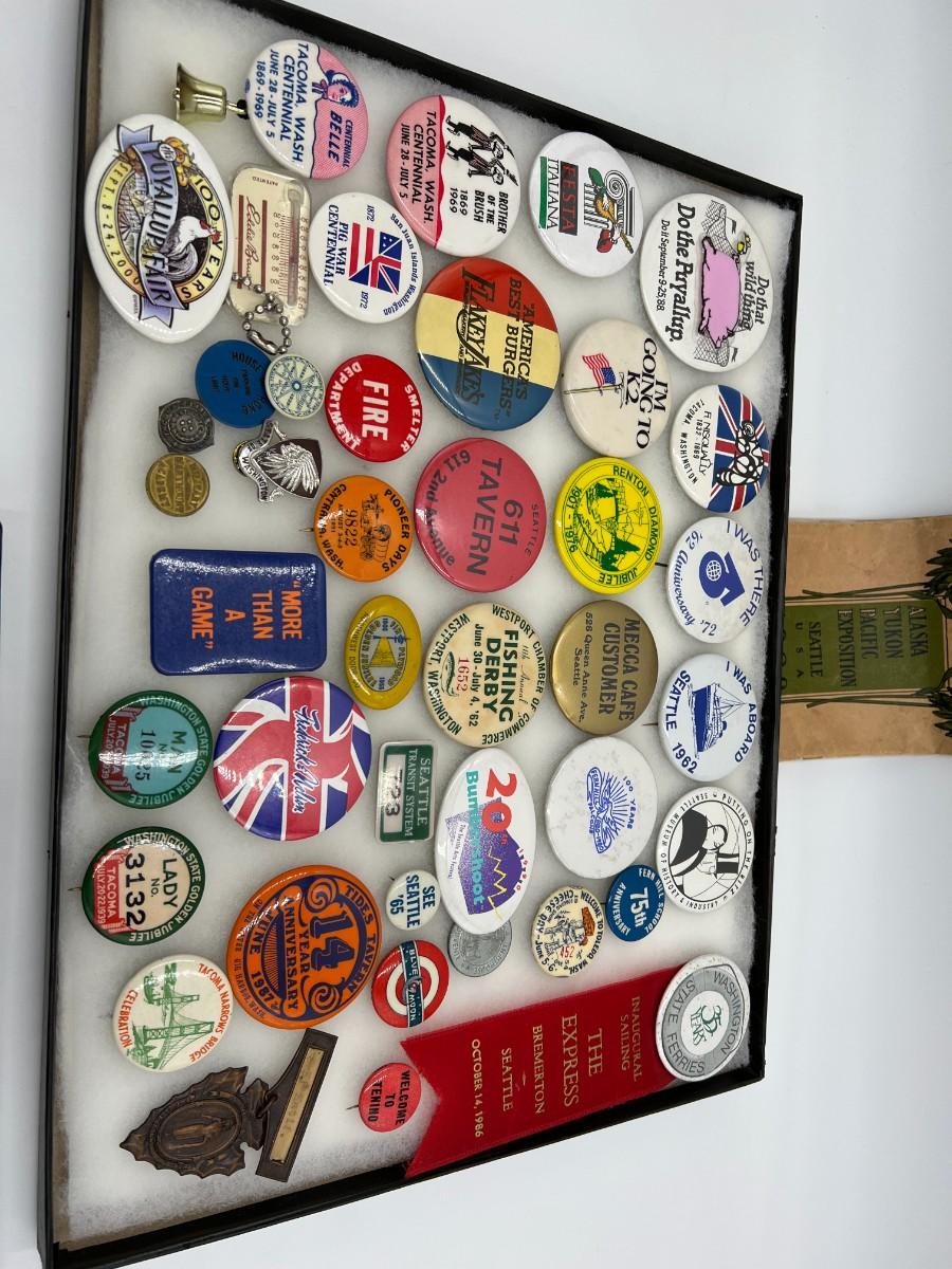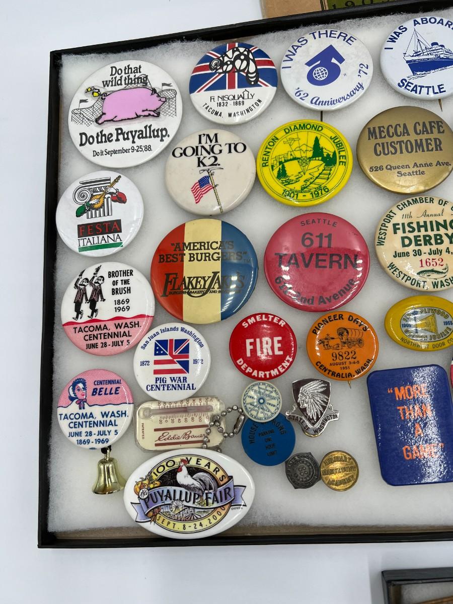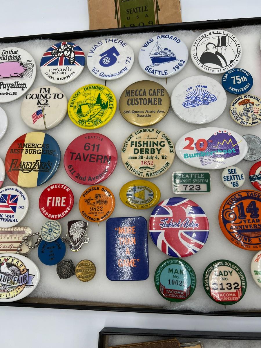Large Lot of Seattle and Washington Related Buttons and Ephemera