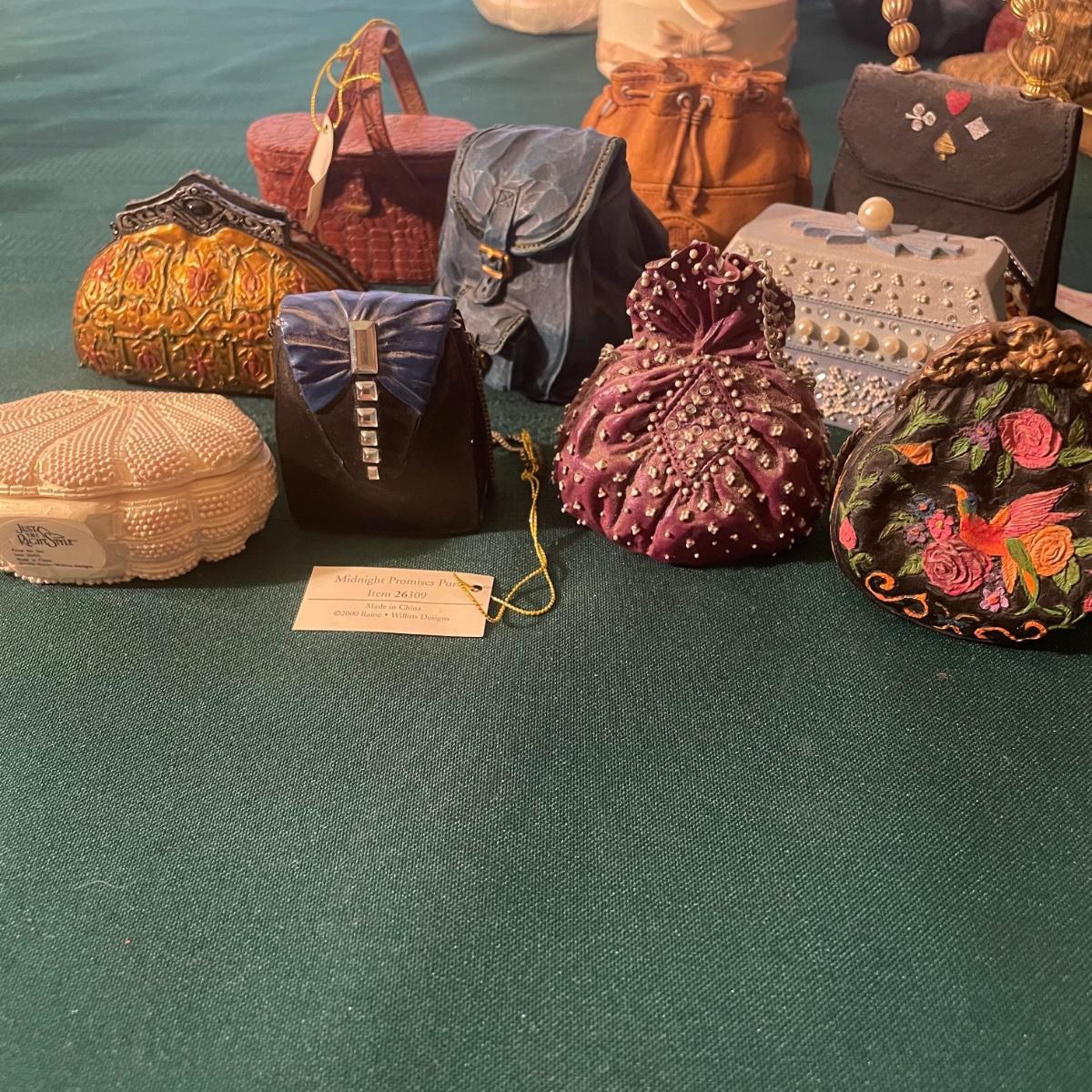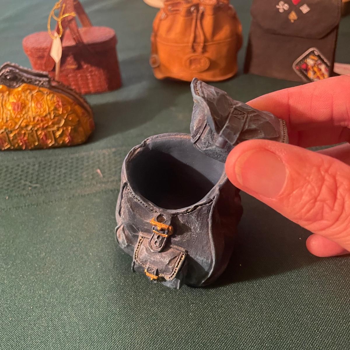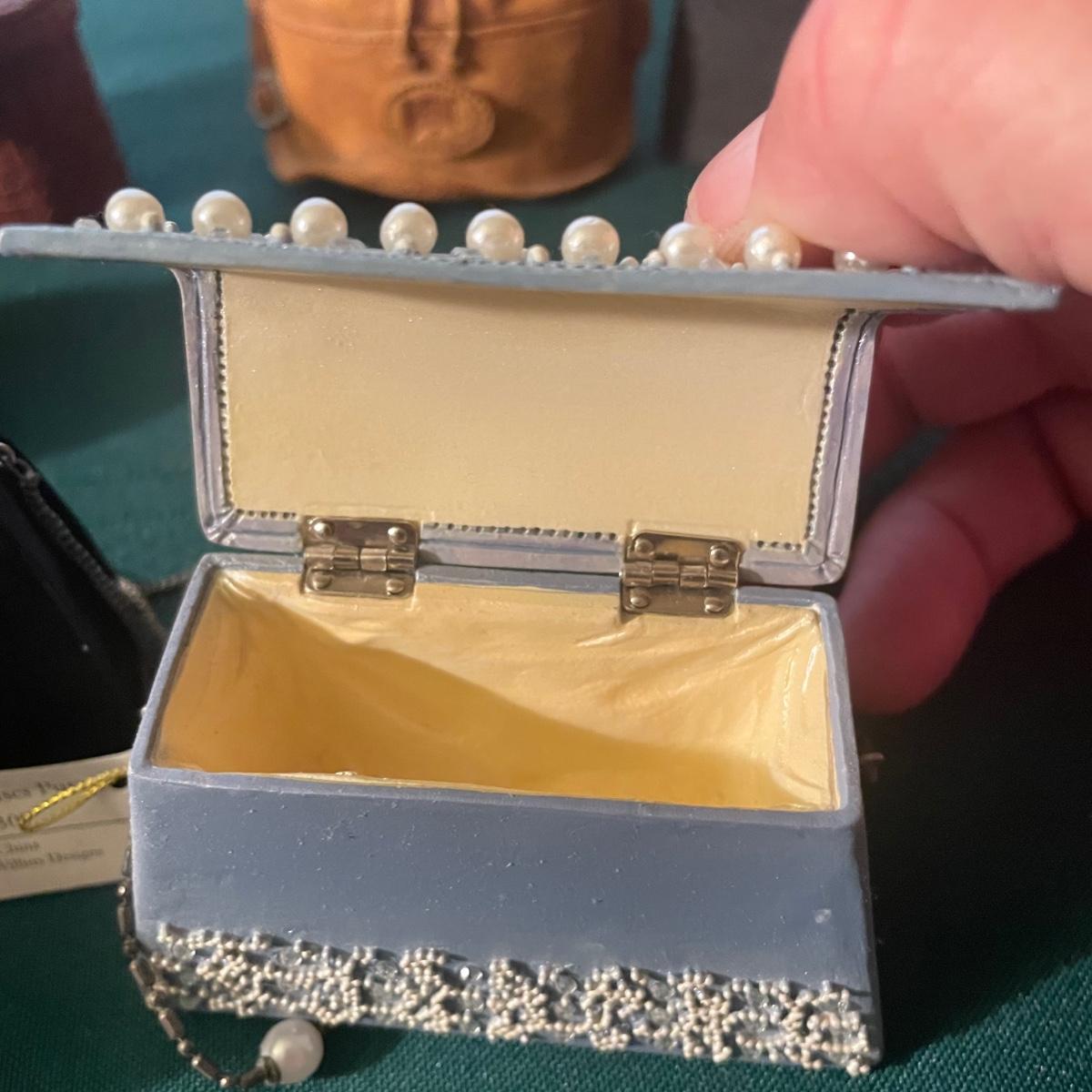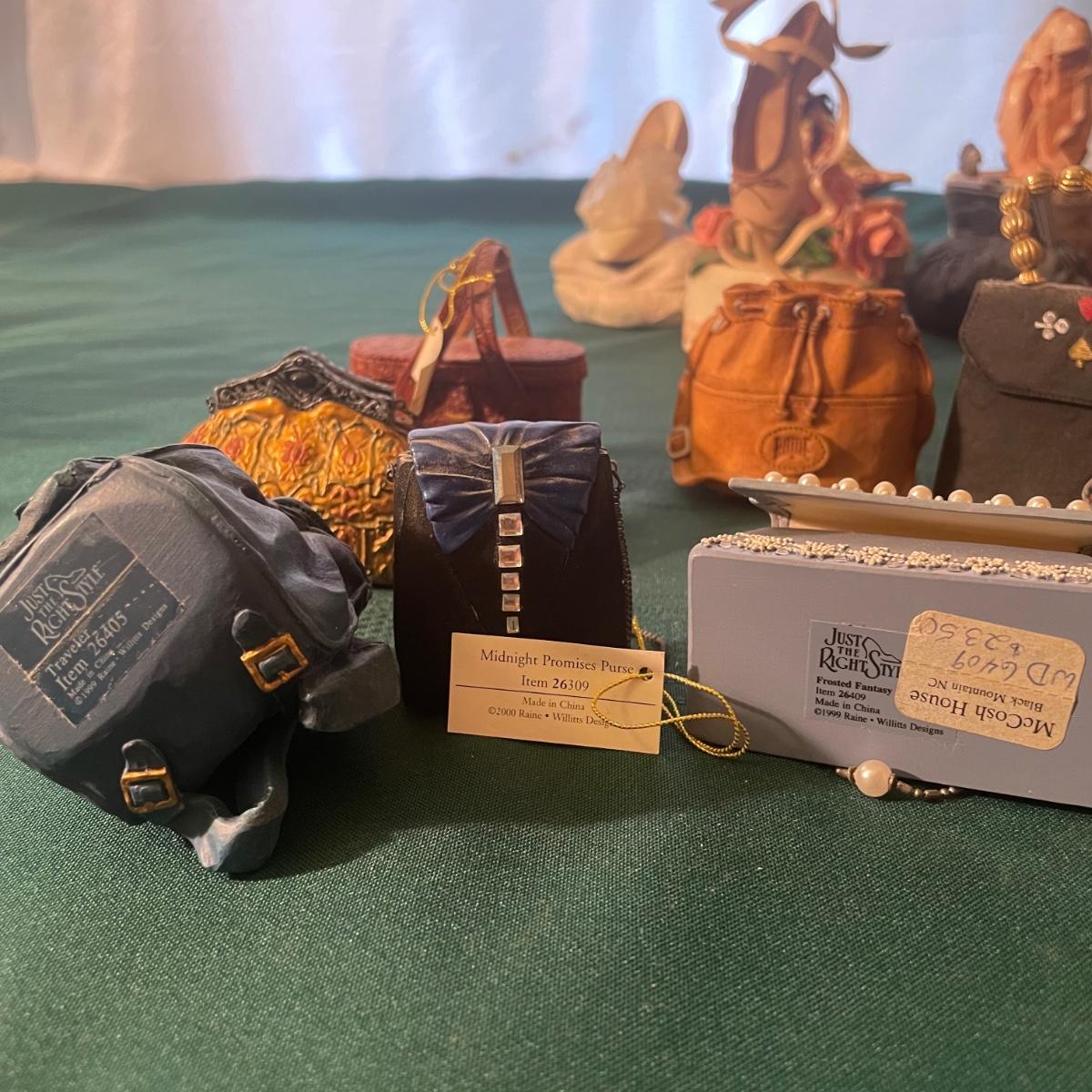 Note that two of the music boxes with black shoes have broken straps on the shoes and one bag’s chain handle is broken, all other items are in good condition; these prices are cold pressed porcelain whilst other items include metal, plastic and glass.