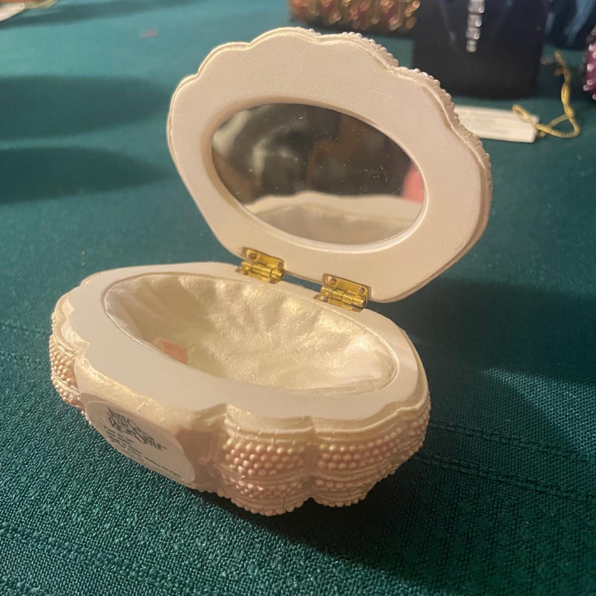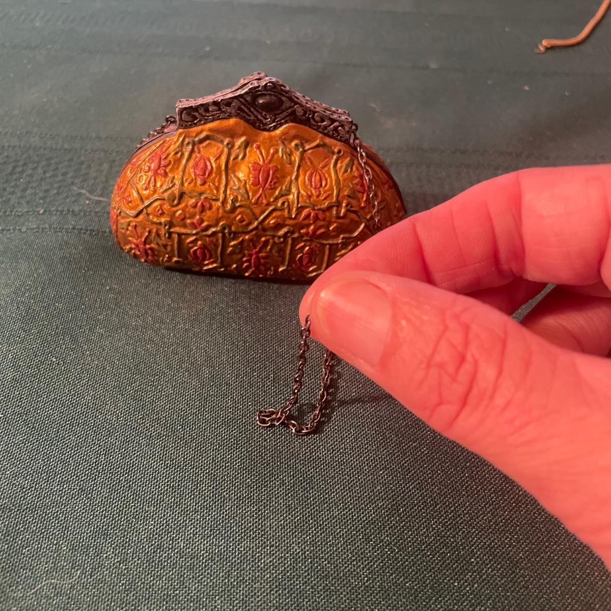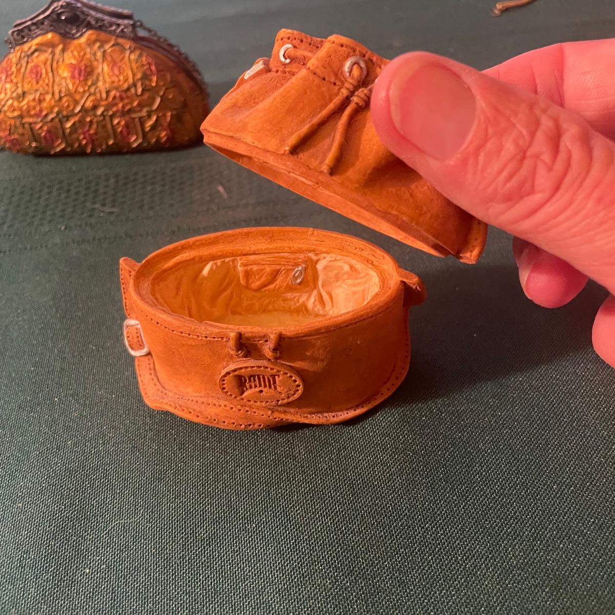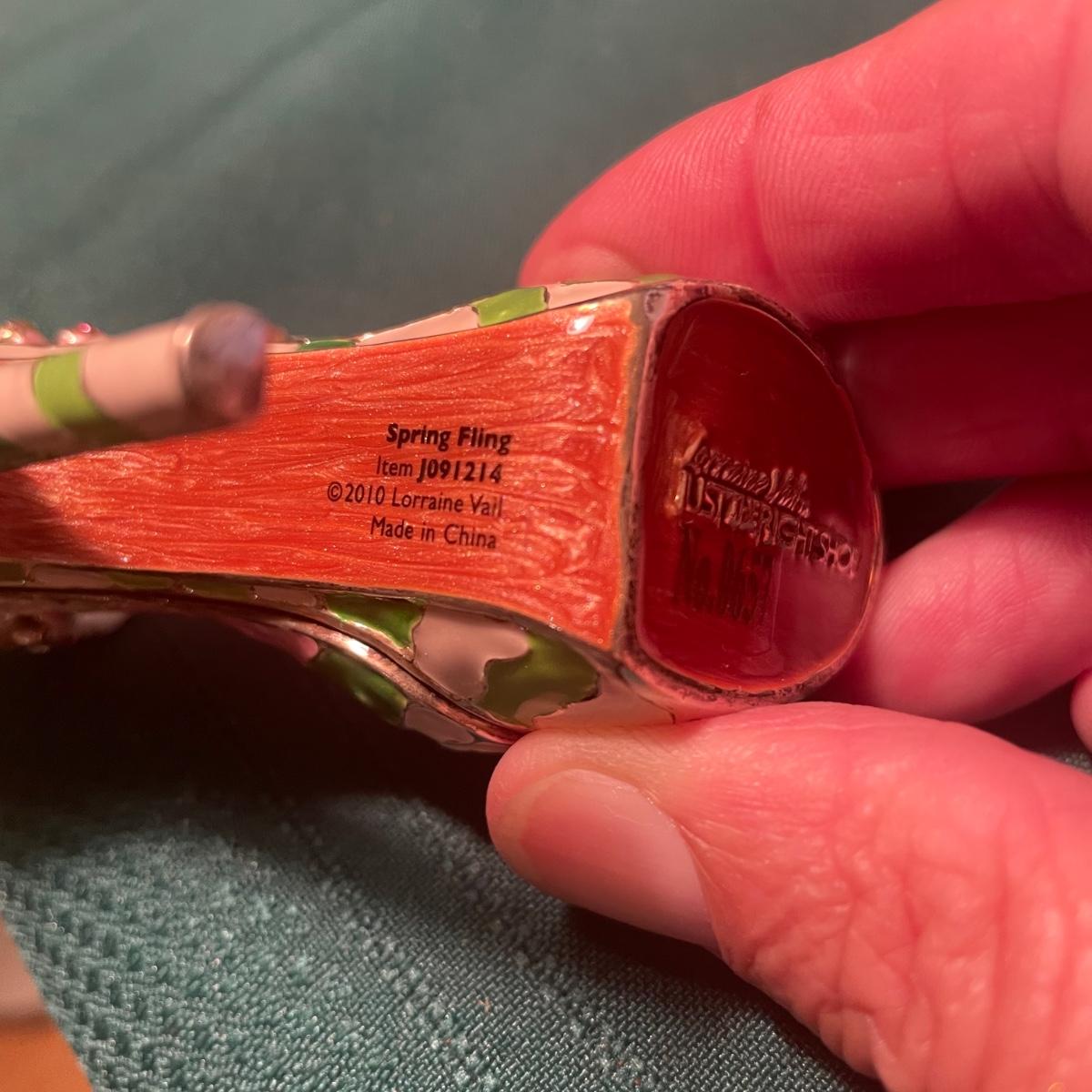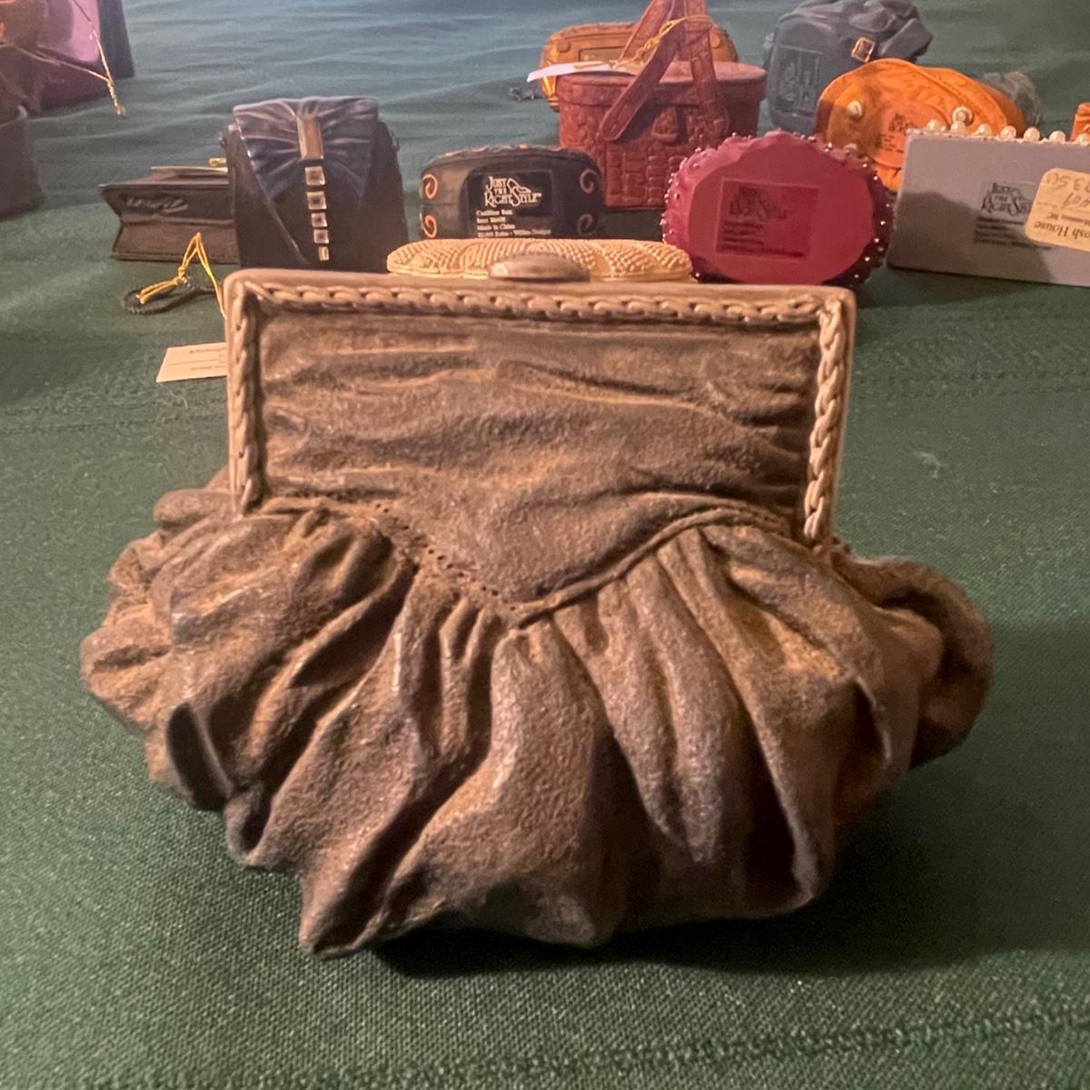 Note that two of the music boxes with black shoes have broken straps on the shoes and one bag’s chain handle is broken, all other items are in good condition; these prices are cold pressed porcelain whilst other items include metal, plastic and glass.