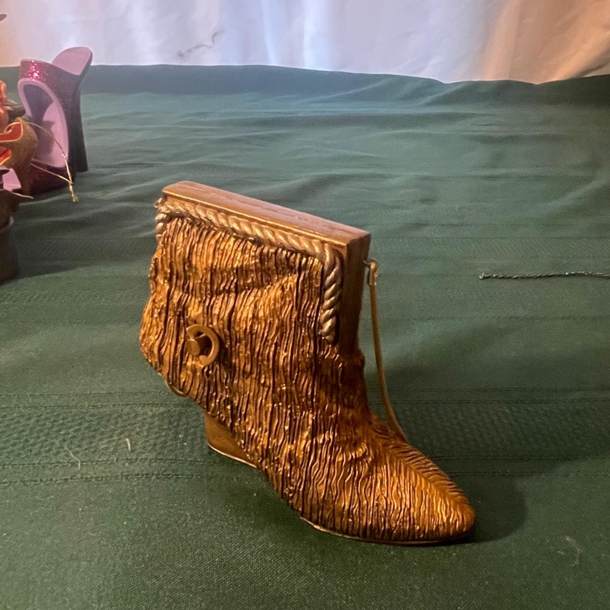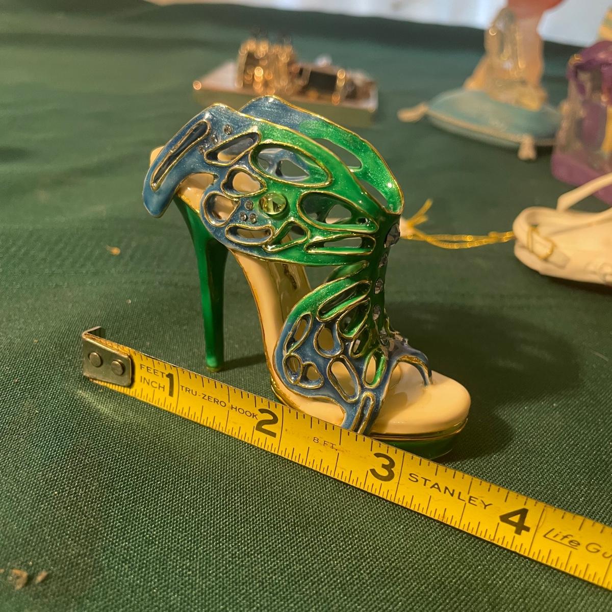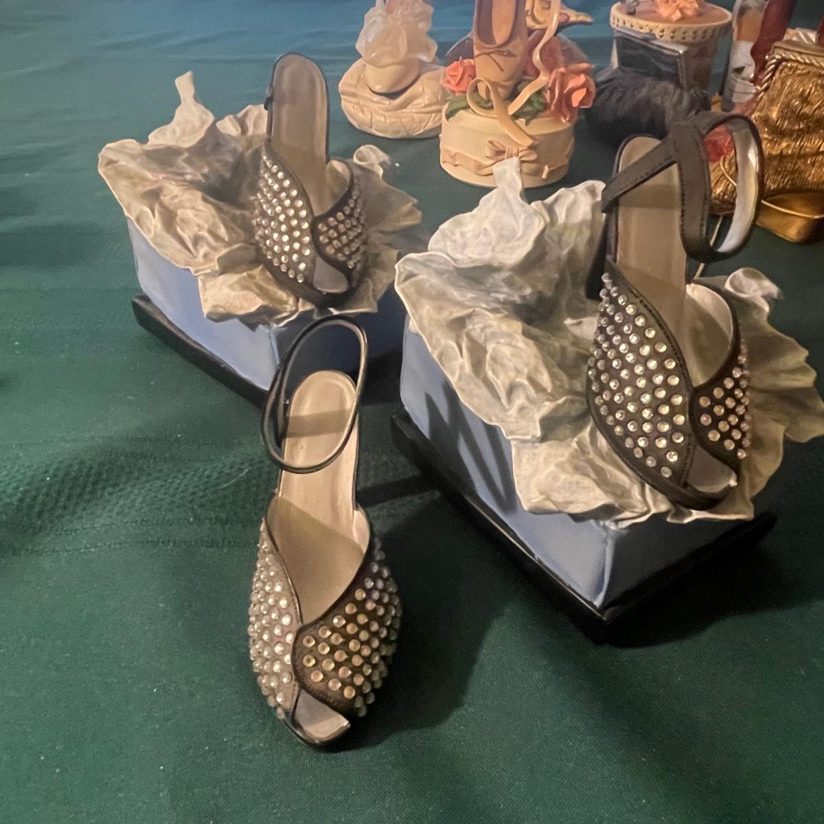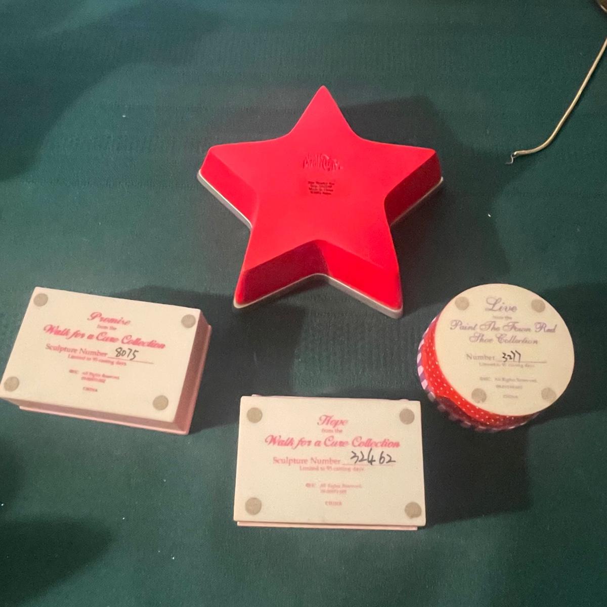 This large lot of keepsakes for shoe lovers includes lots of items from the “˜Just My Style’ collection with many being music boxes that all work and even 2 metal shoes that open up to be trinket boxes. Lots of other keepsakes, see images. The plinth like pink, purple and star shaped boxes appear to be designed for displaying a shoe.