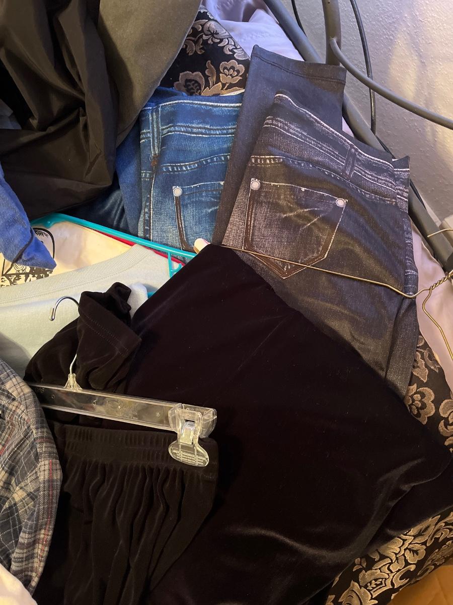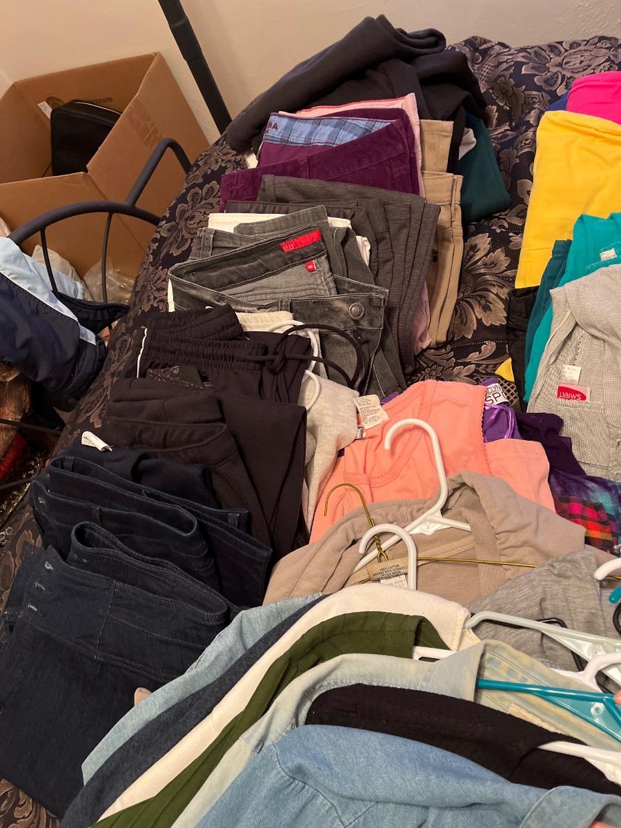 See pictures. Pants, shorts, jackets, capris and jean jeggings. See pictures