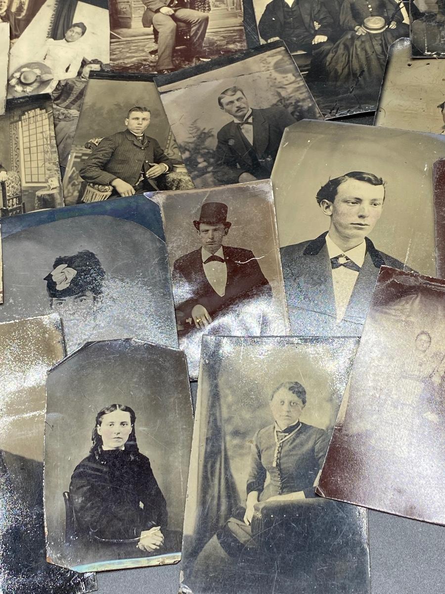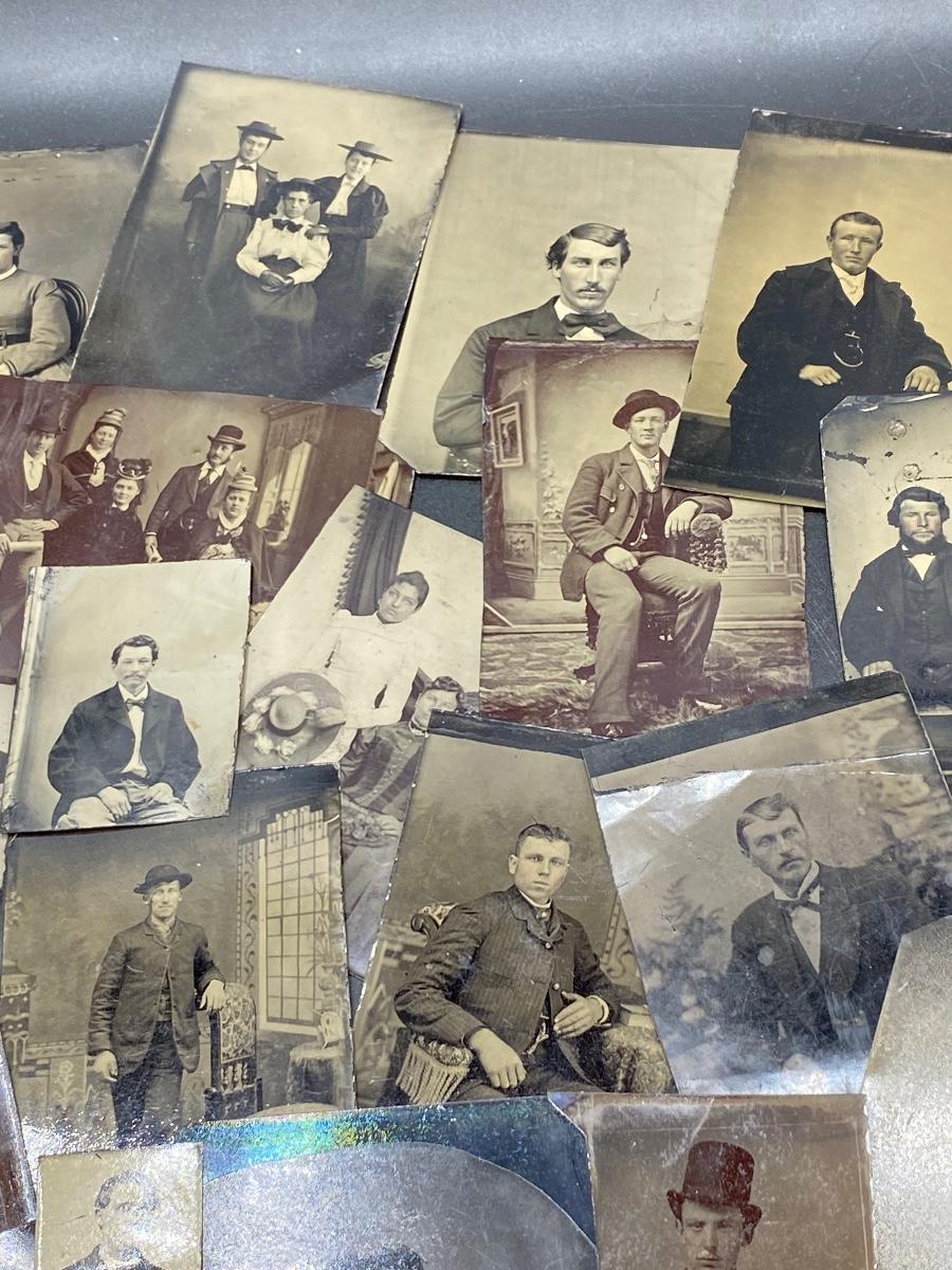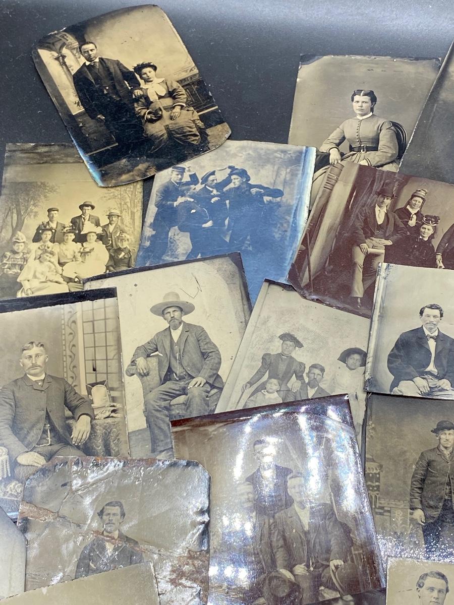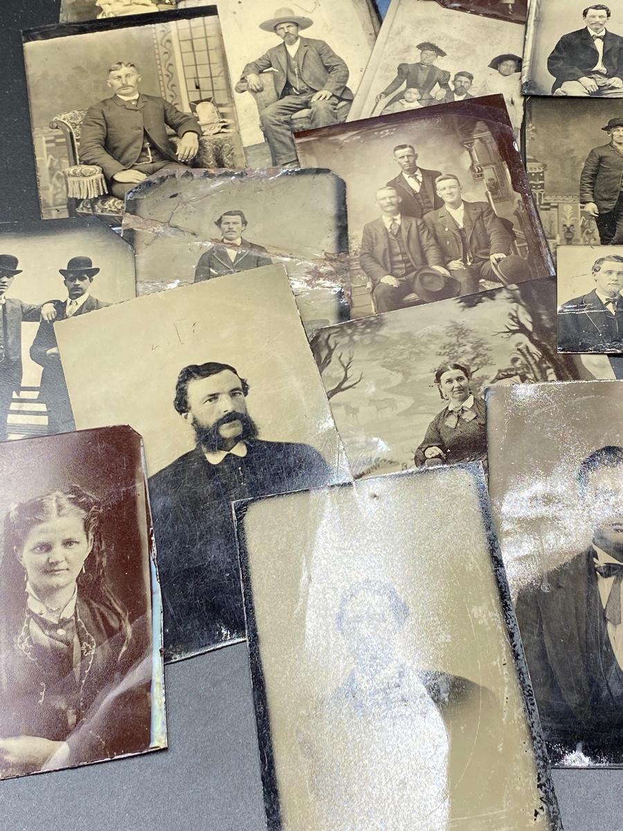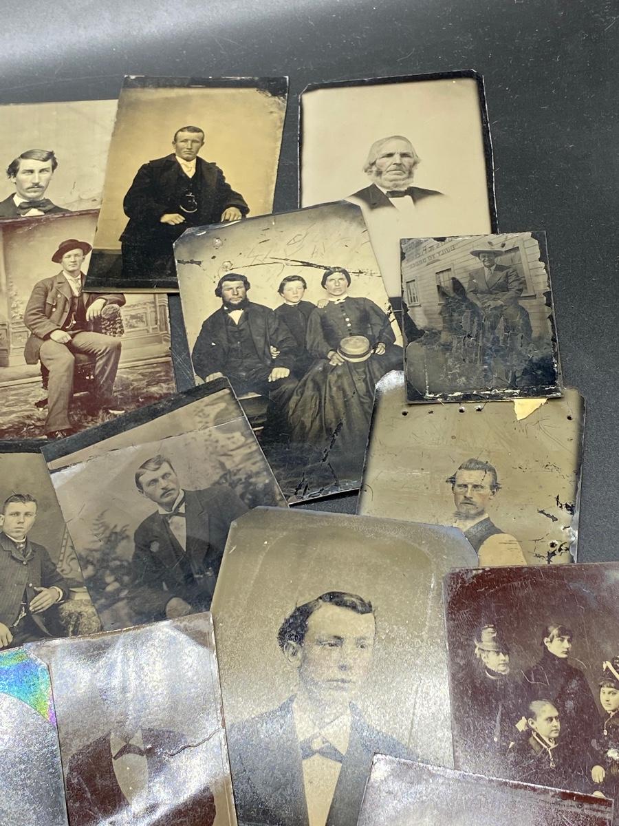 Large lot of Victorian tintype photos. Men, women, children, and families. Light fade, some dents and dings from being metal, but in overall good antique condition.