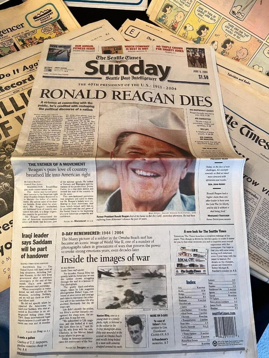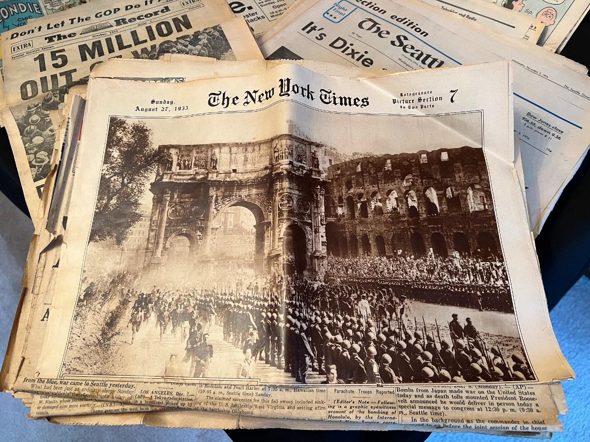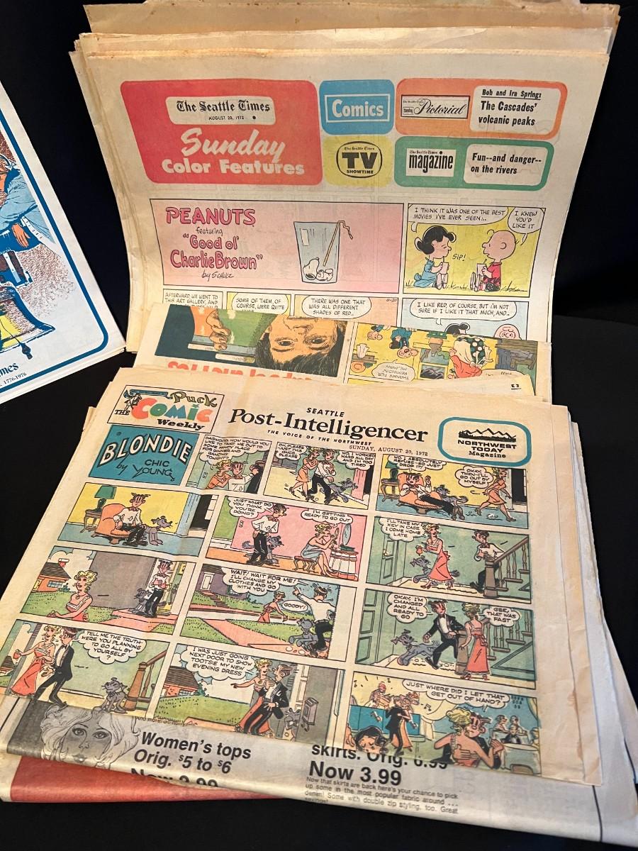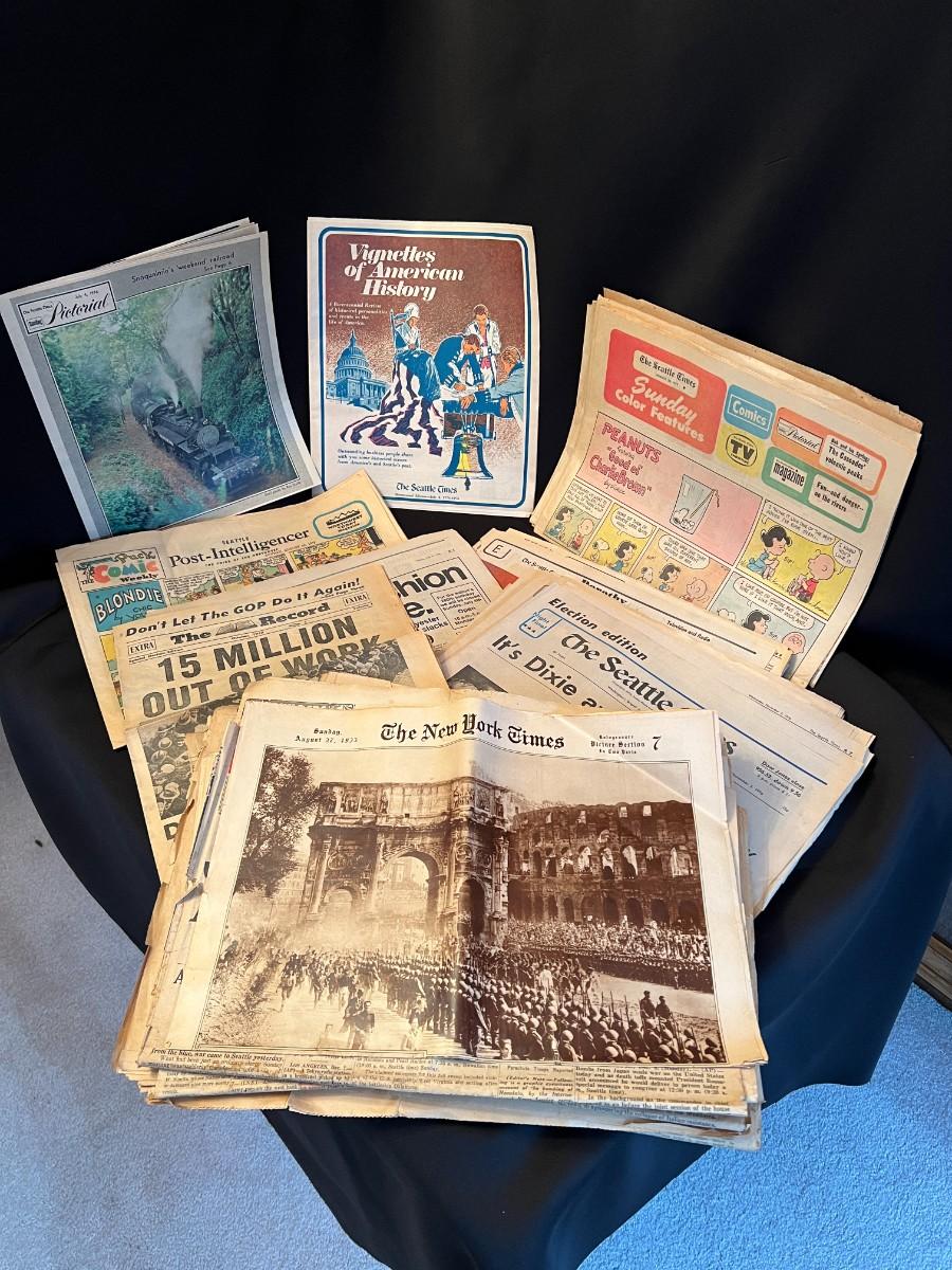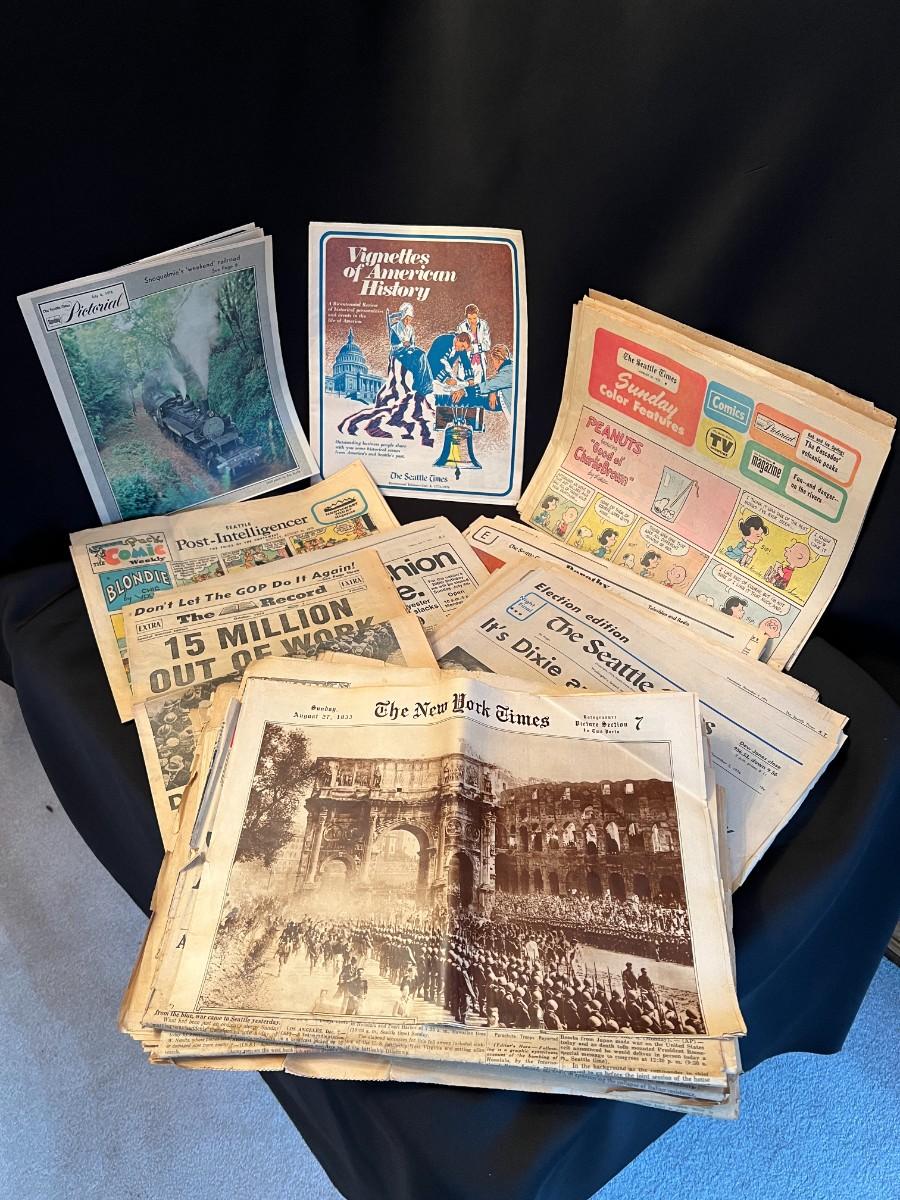 Fantastic large lot of vintage and antique newspapers and comics from various era. Lot includes The New York Times and Seattle Times, and covers the World War, depression, and more! Conditions are as shown.