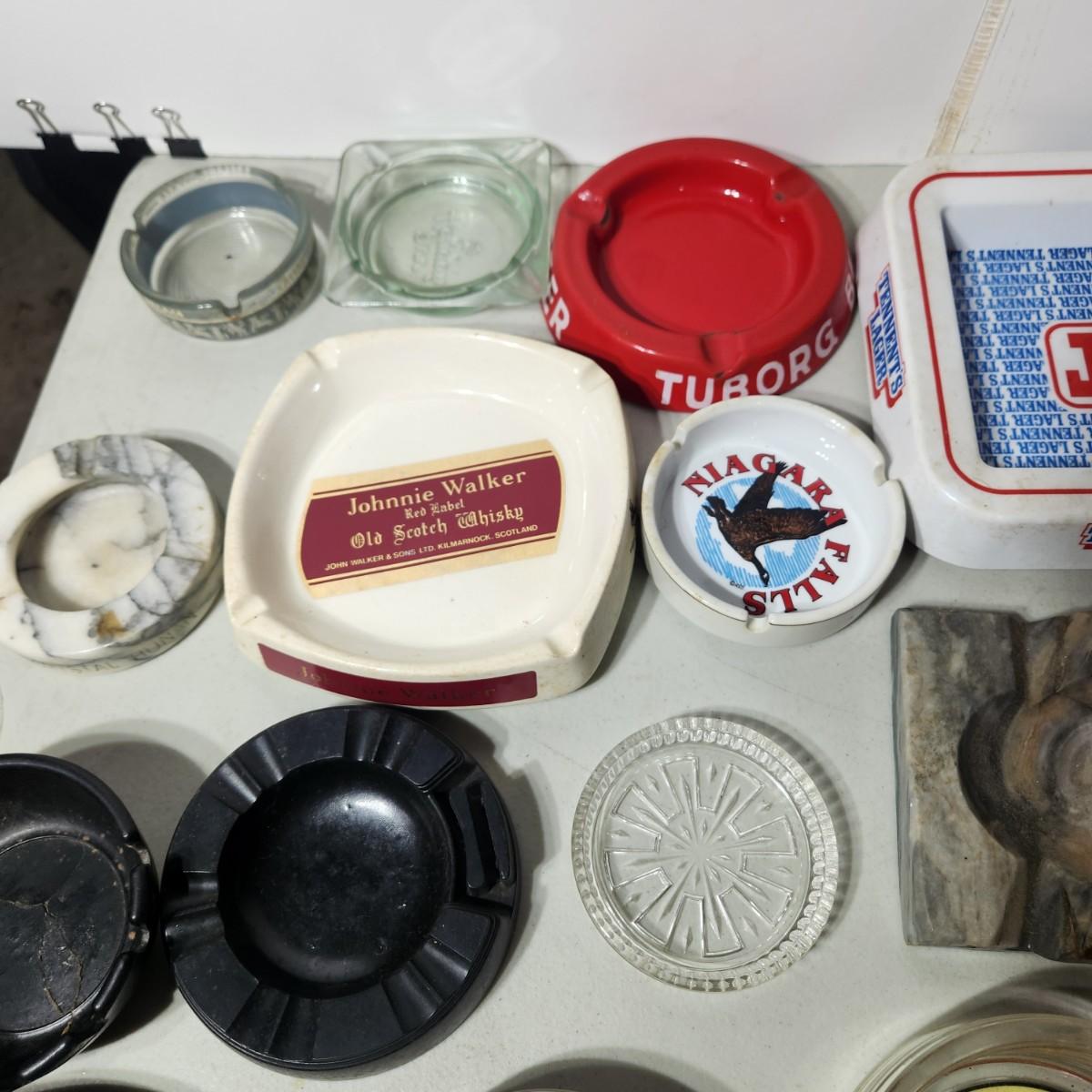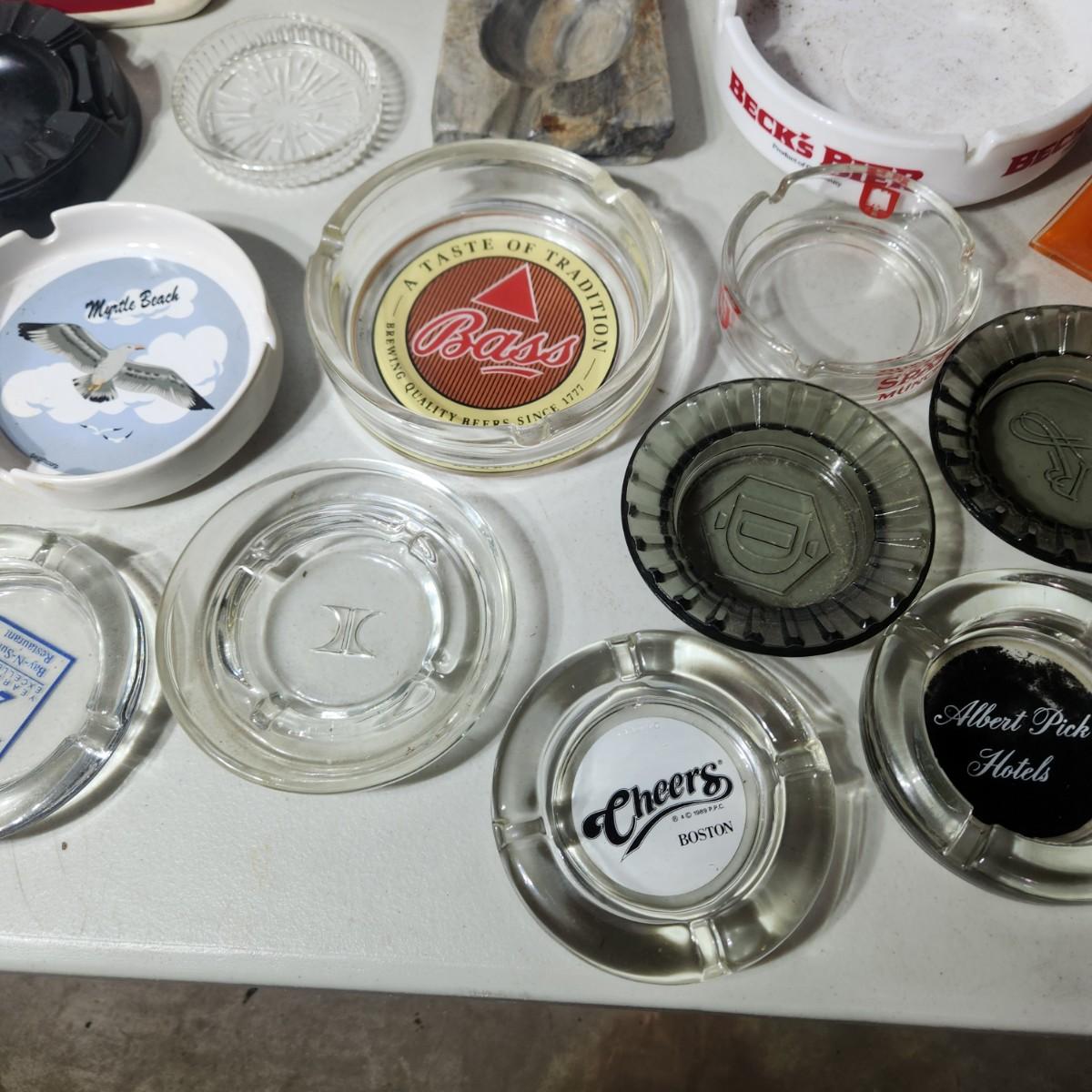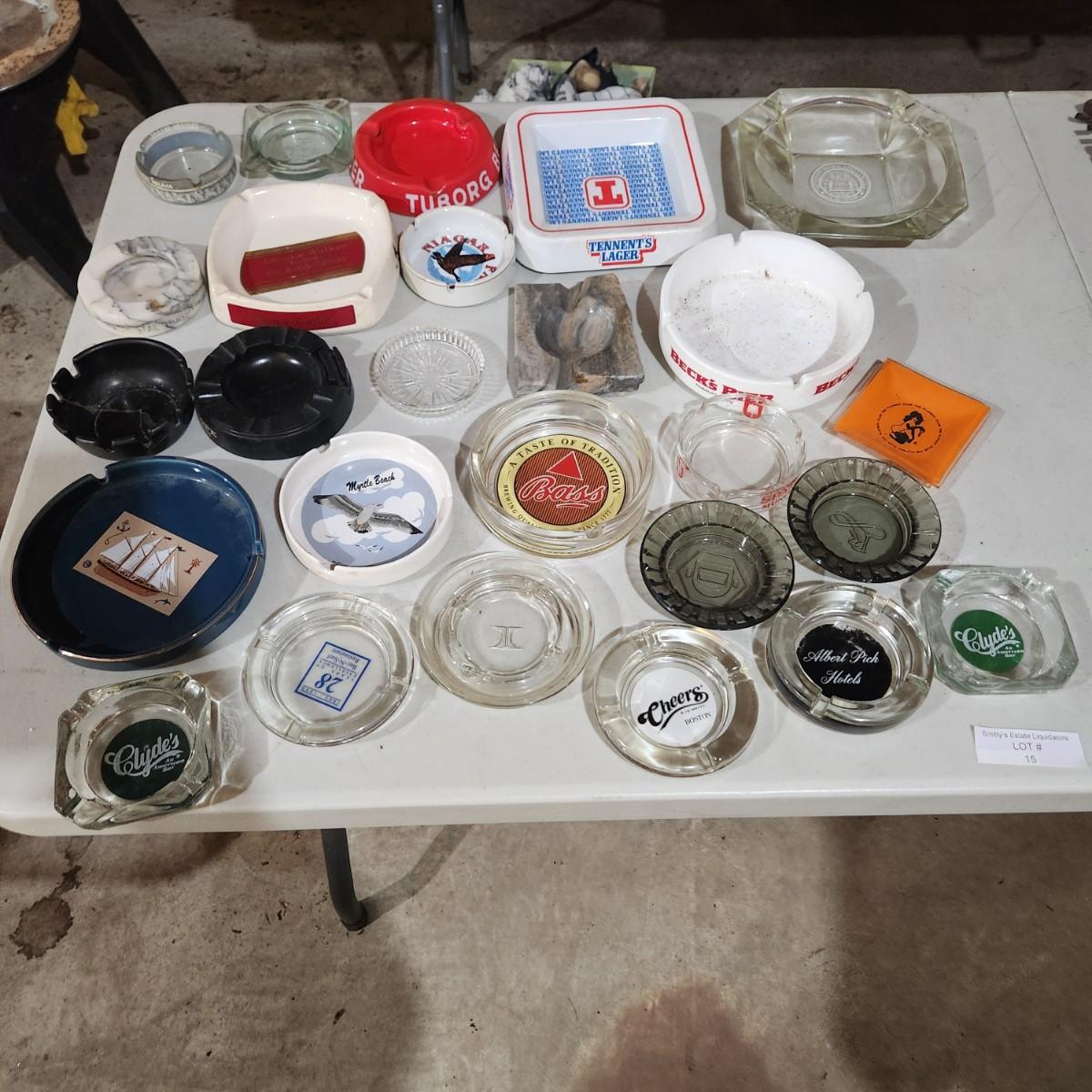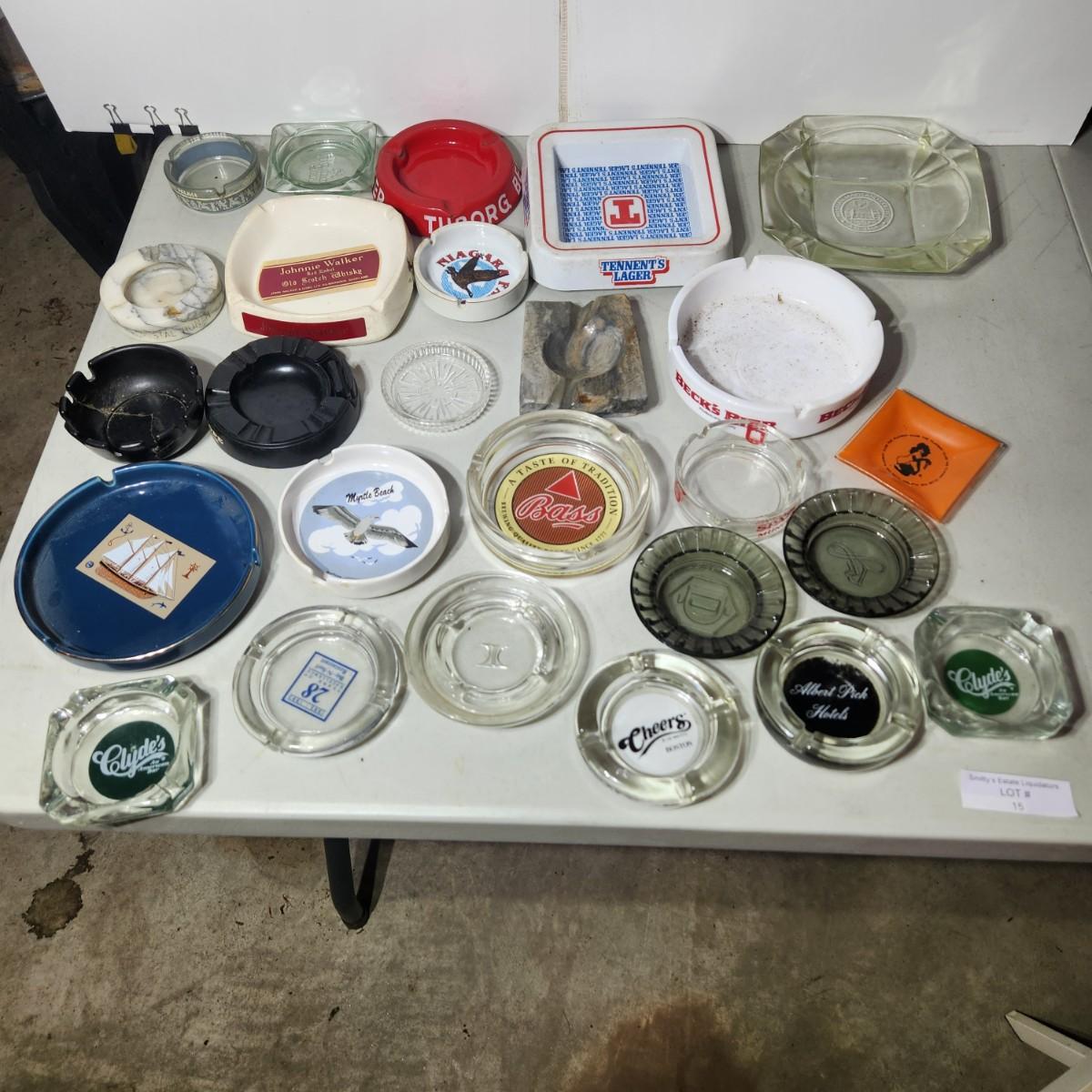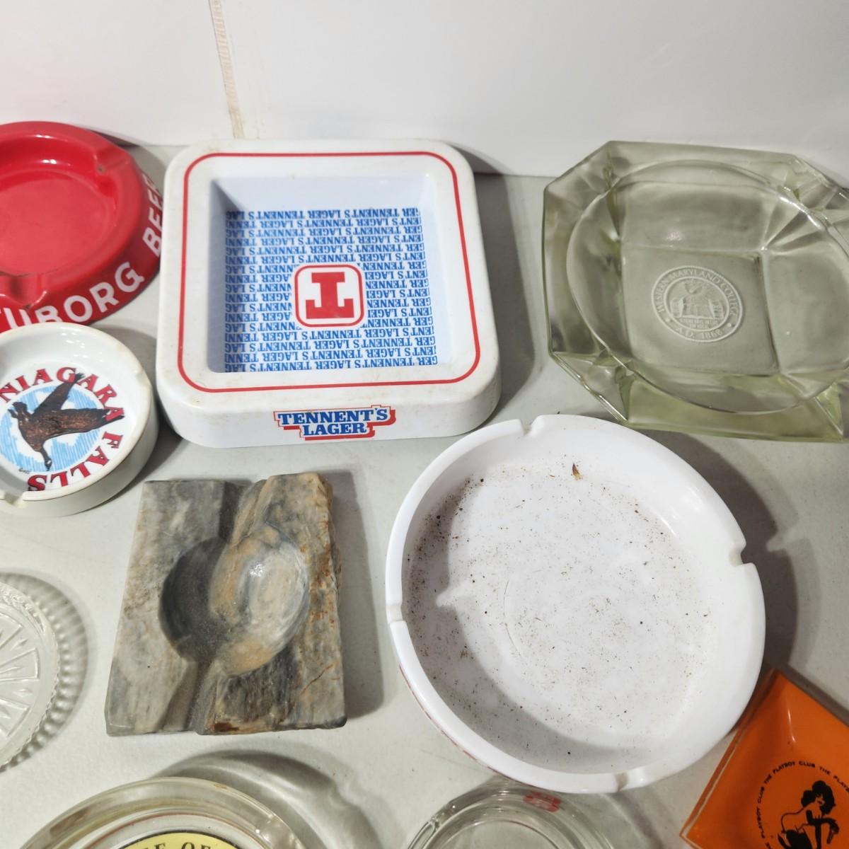 Large Lot of Vintage Ashtrays Playboy, Johnnie Walker,Tennet's Lager , Tuborg, Cheers , Clyde's
