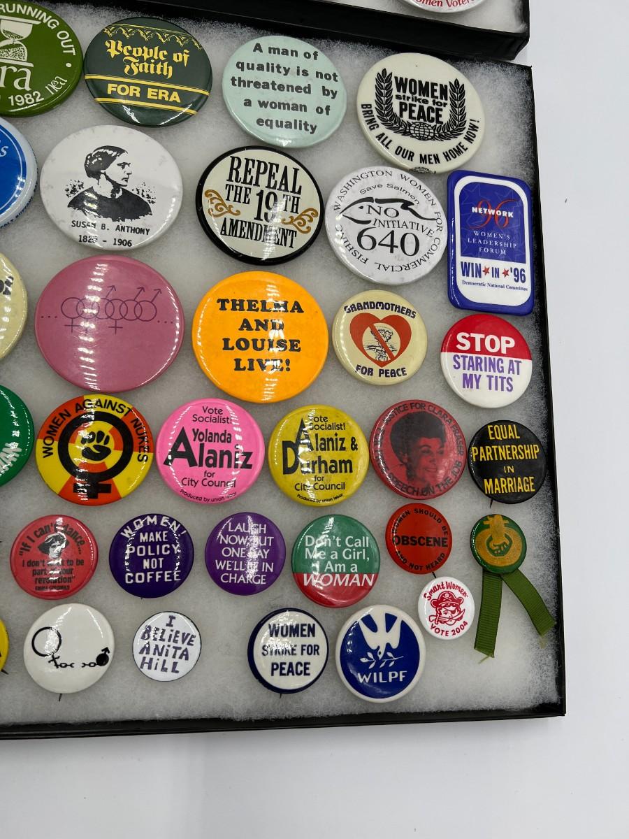Large Lot of Vintage Buttons Pins Related to Womens Rights and Events