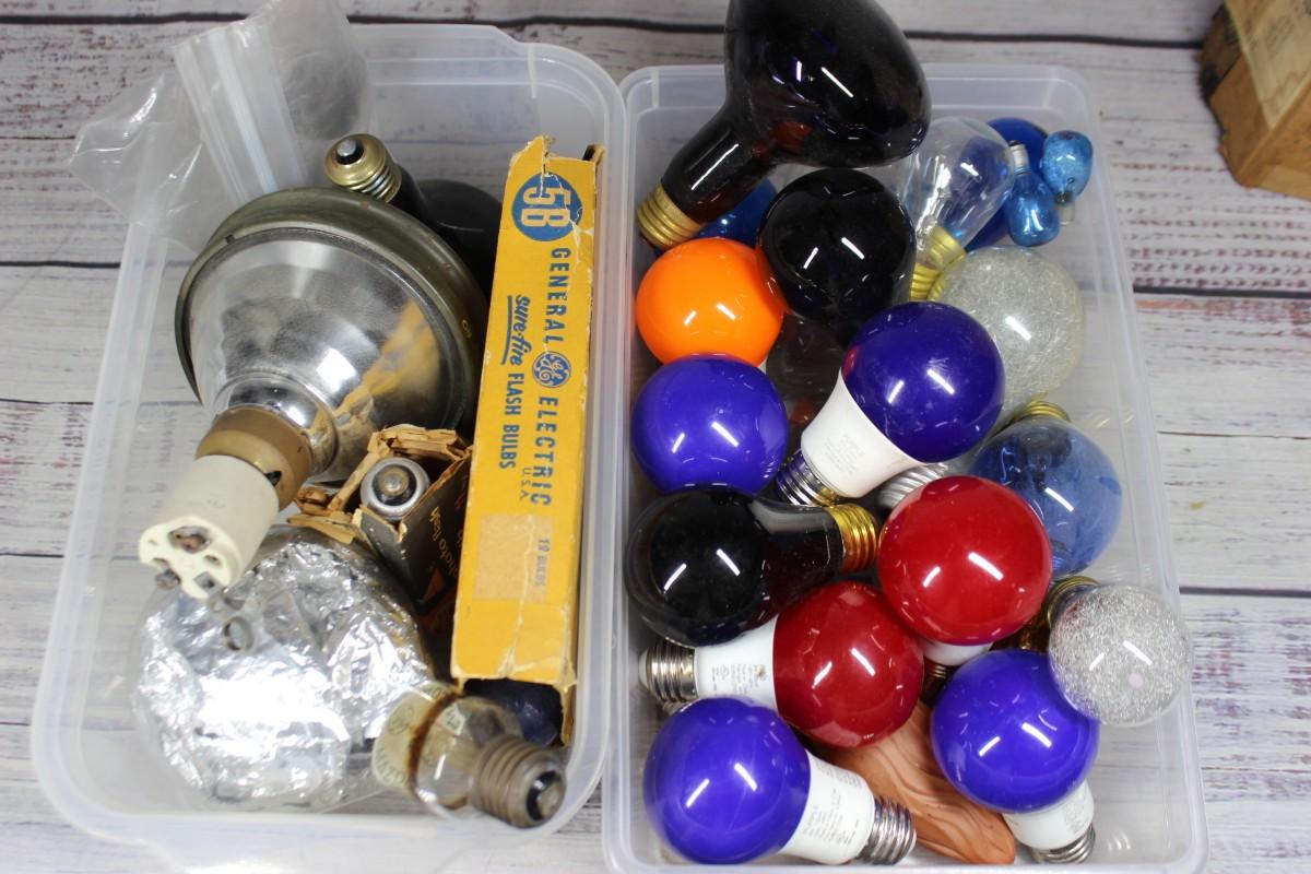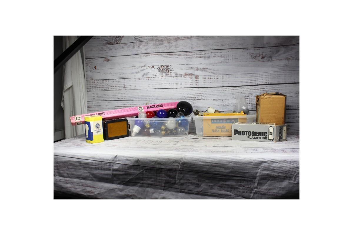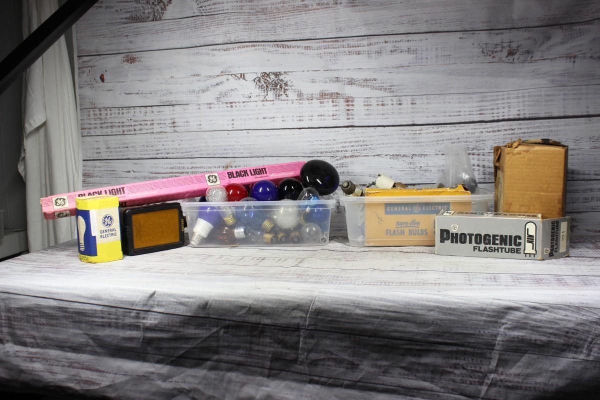 Large Lot of Vintage Camera Flash Bulbs, Photolamp, Kodak Brownie Safelight, Photogenic Flashtube, General Electric Flash Bulbs & More