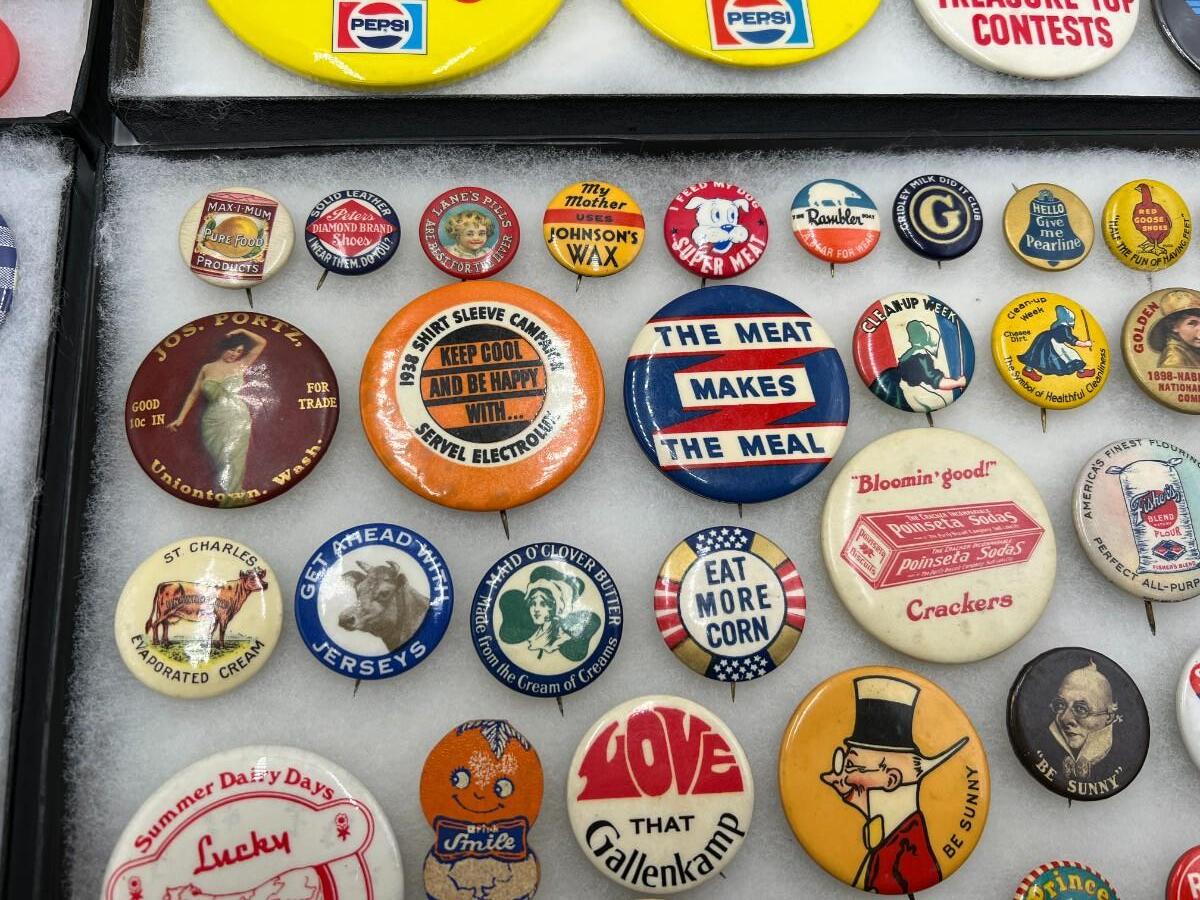 Large Lot of Vintage Commercial Brand and Advertising Related Buttons Pin Backs