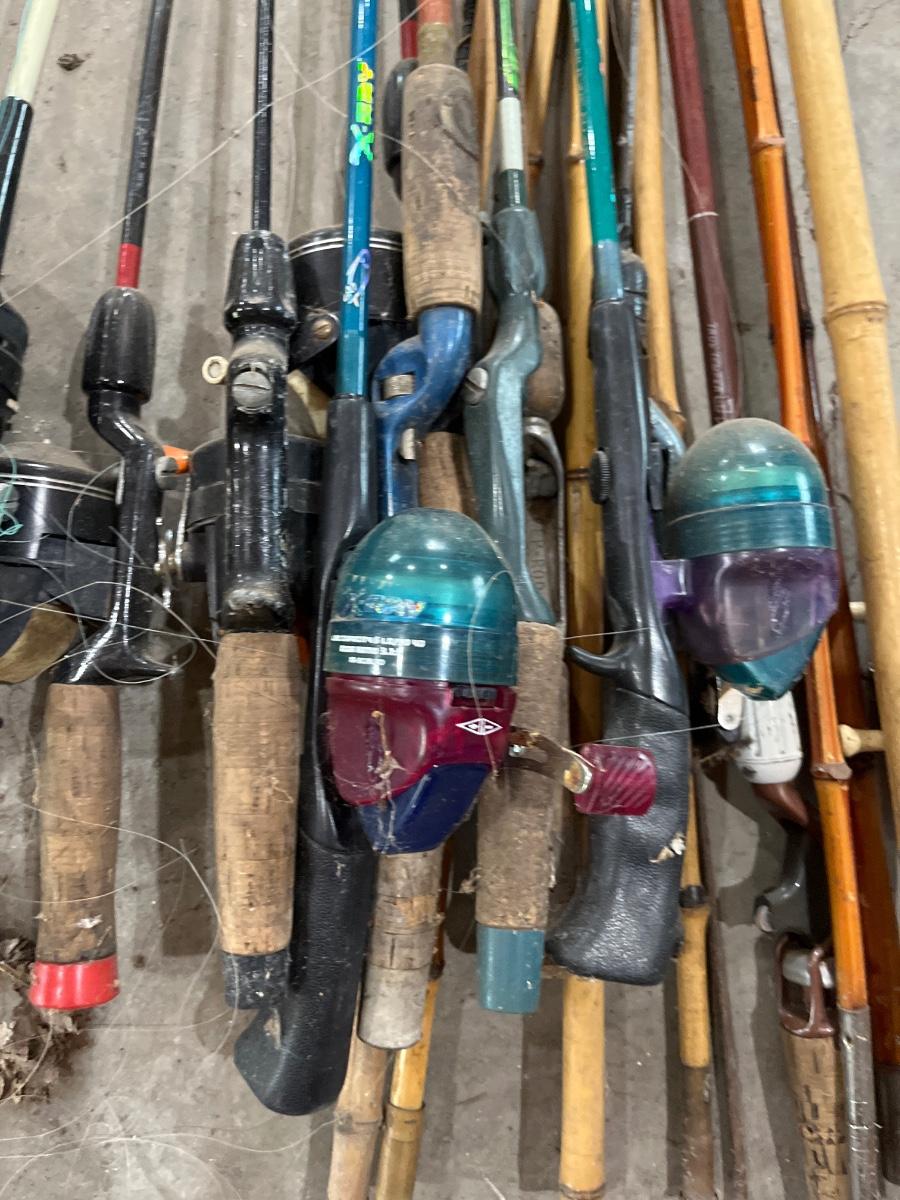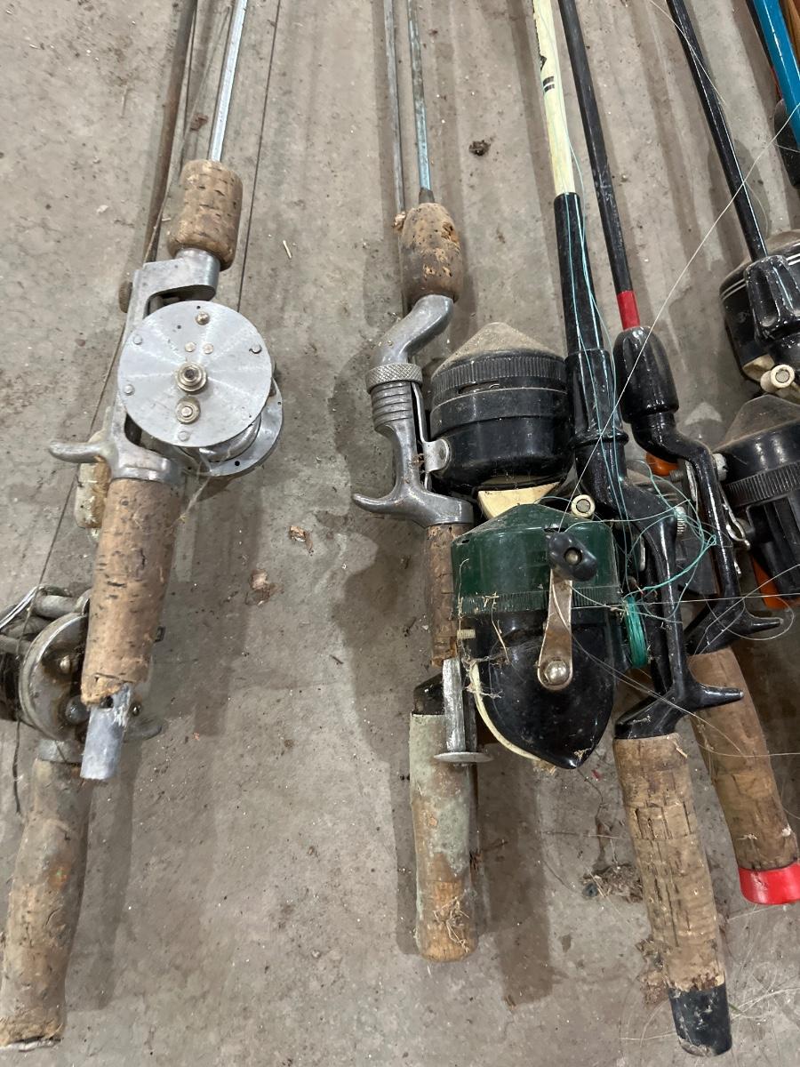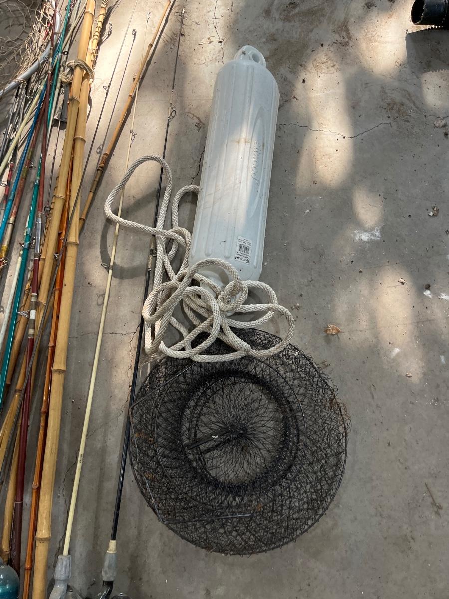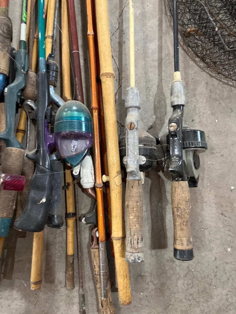 Large lot of vintage, fishing, rods, net, etc.