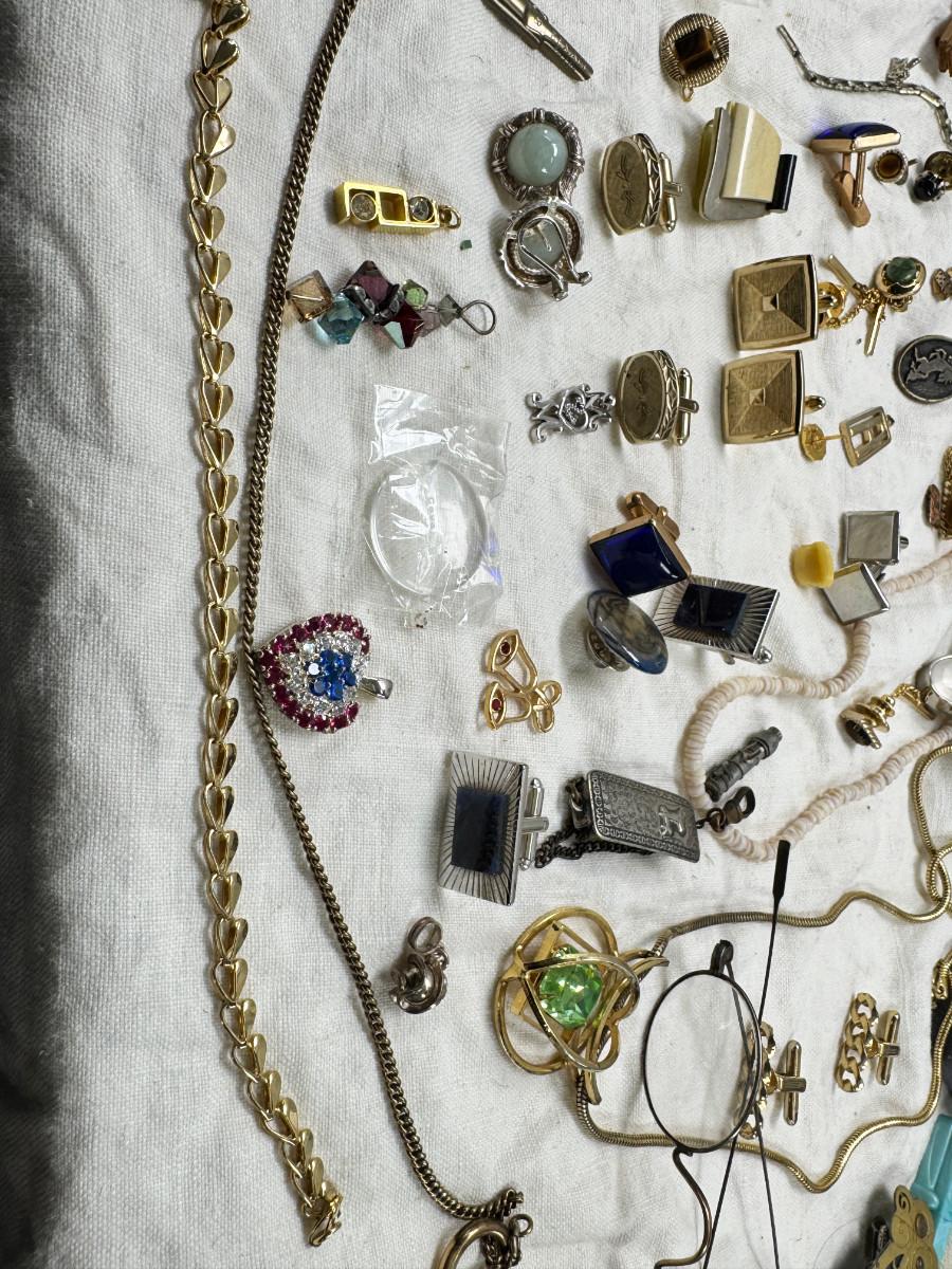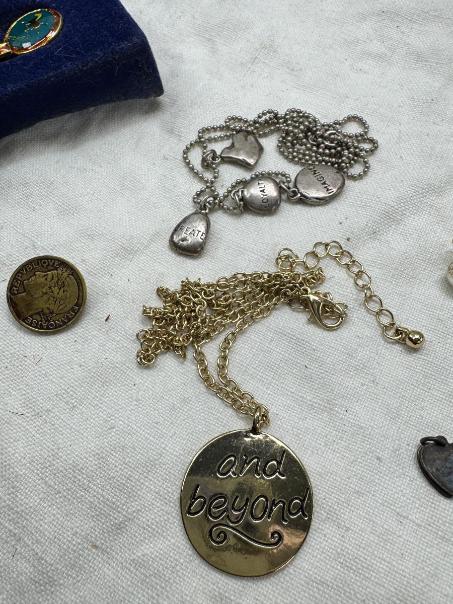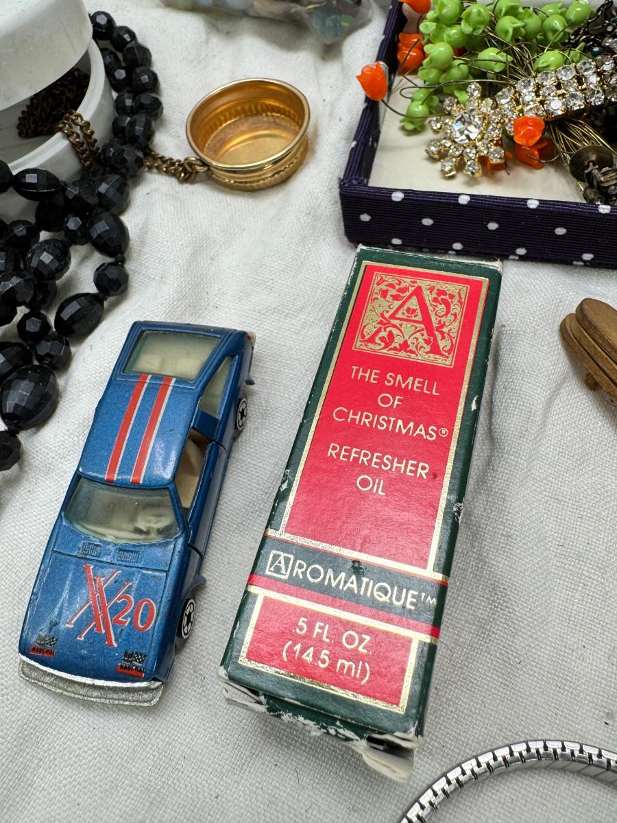 Necklace display not included. Empty Tiffany box. Costume jewelry huge variety, vintage . Necklaces, Bracelets, rings,