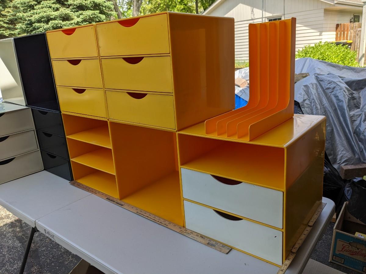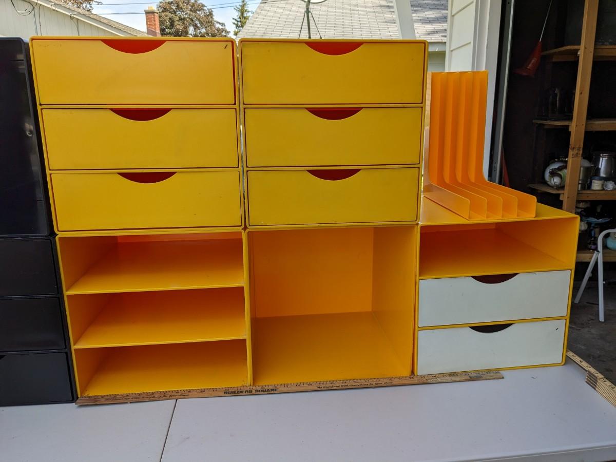 Large Lot of Vintage Palaset Style Plastic Yellow Cube Kartell Columbo Organizers