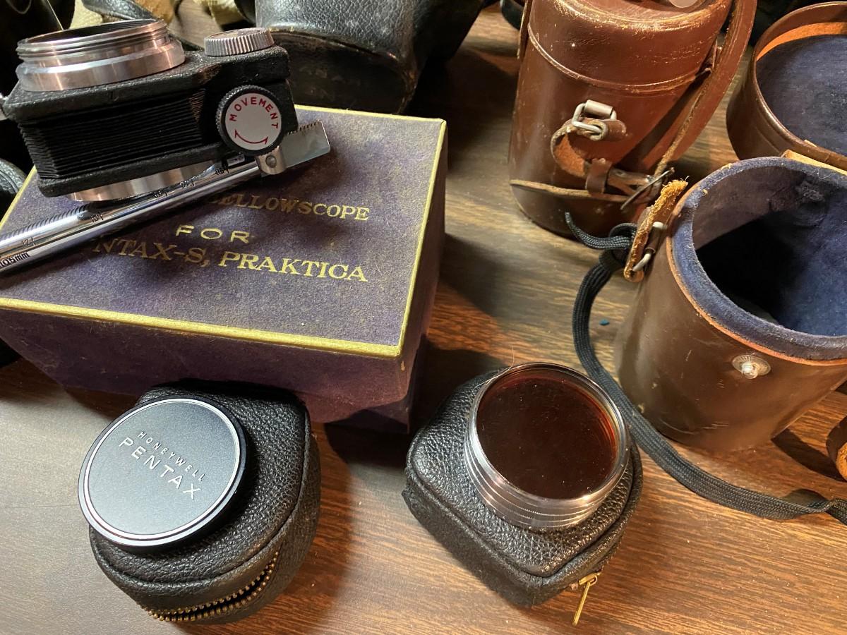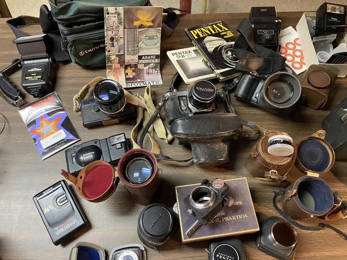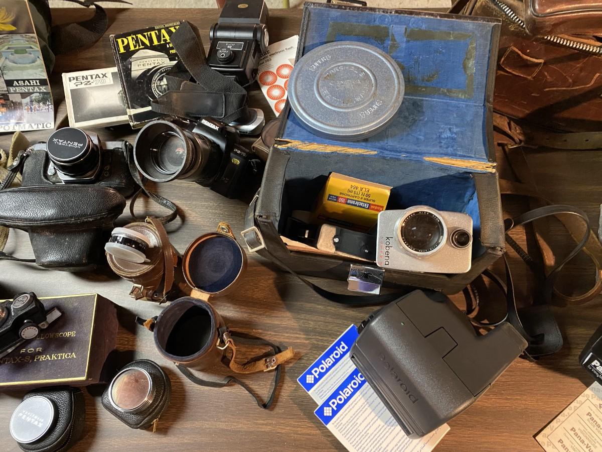 Are you a photography enthusiast? Then this is the lot for you! Large Lot of Vintage Photography and Video Cameras Equipment. Includes brands Kobena, Asahi Pentax, Kopil, Gossen, Olympus, Komura, Vivitar, Honeywell Pentax, Polaroid, Sony, Pana-vue, and Kodak. Used condition.