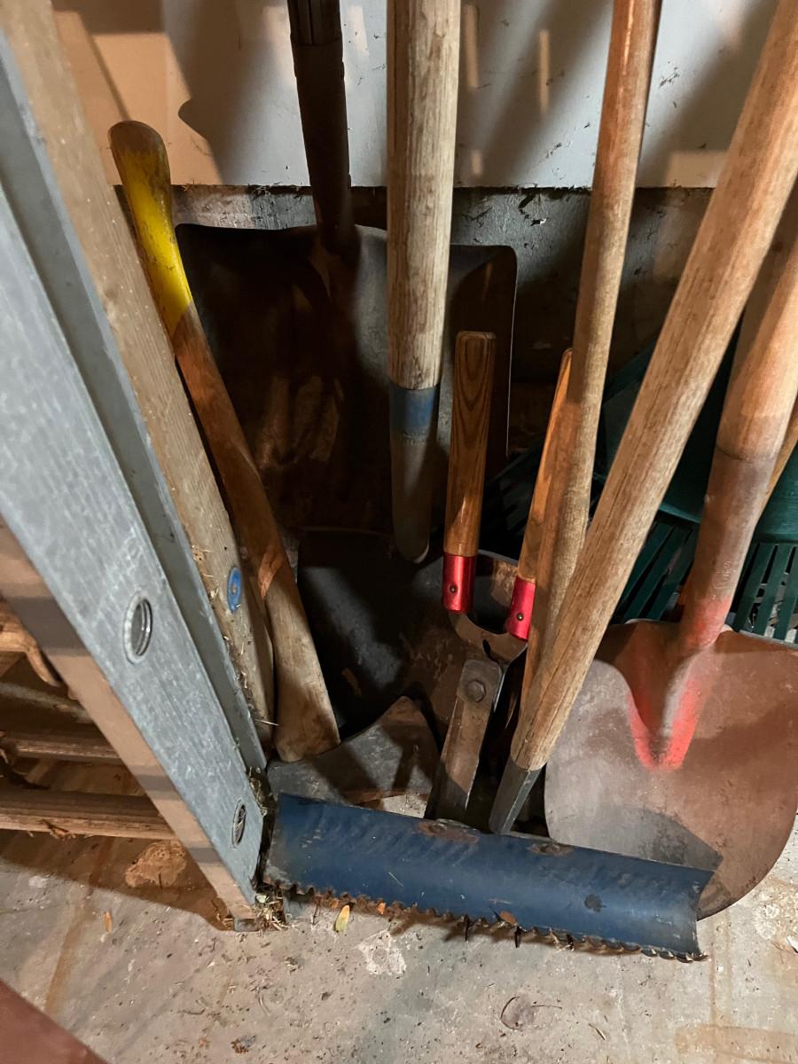 Large Lot of Yard Tool; Hoe, Ax, Shovels Etc.