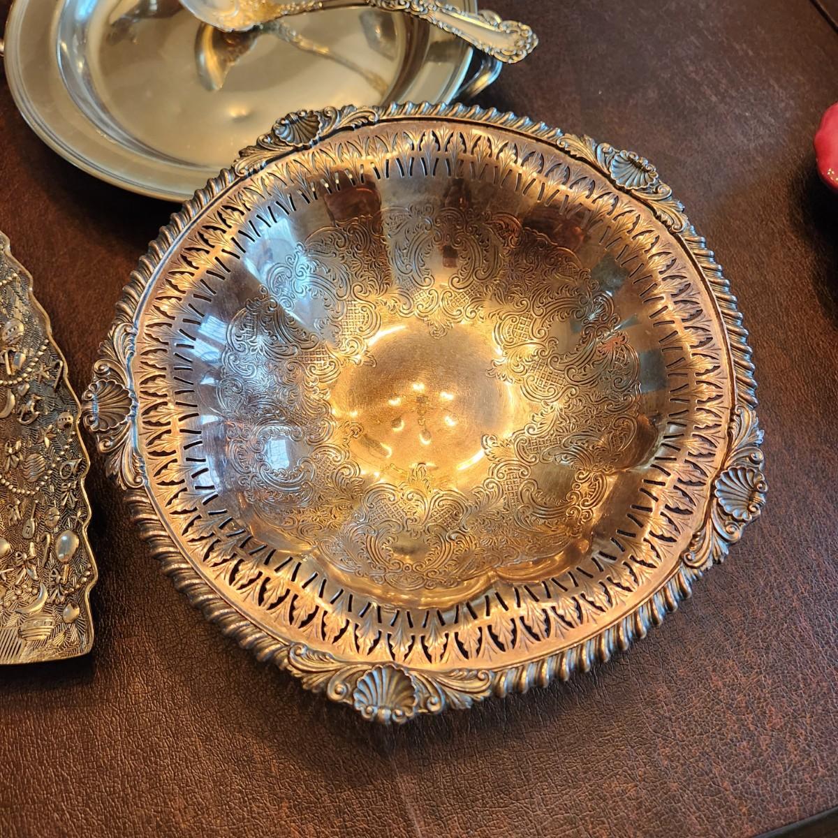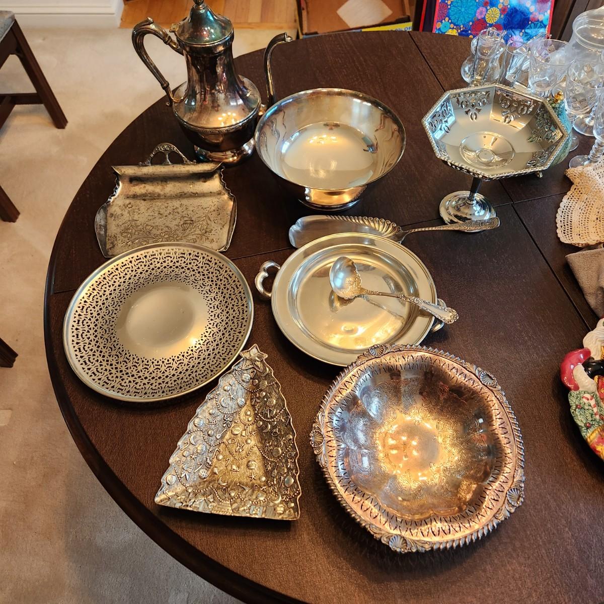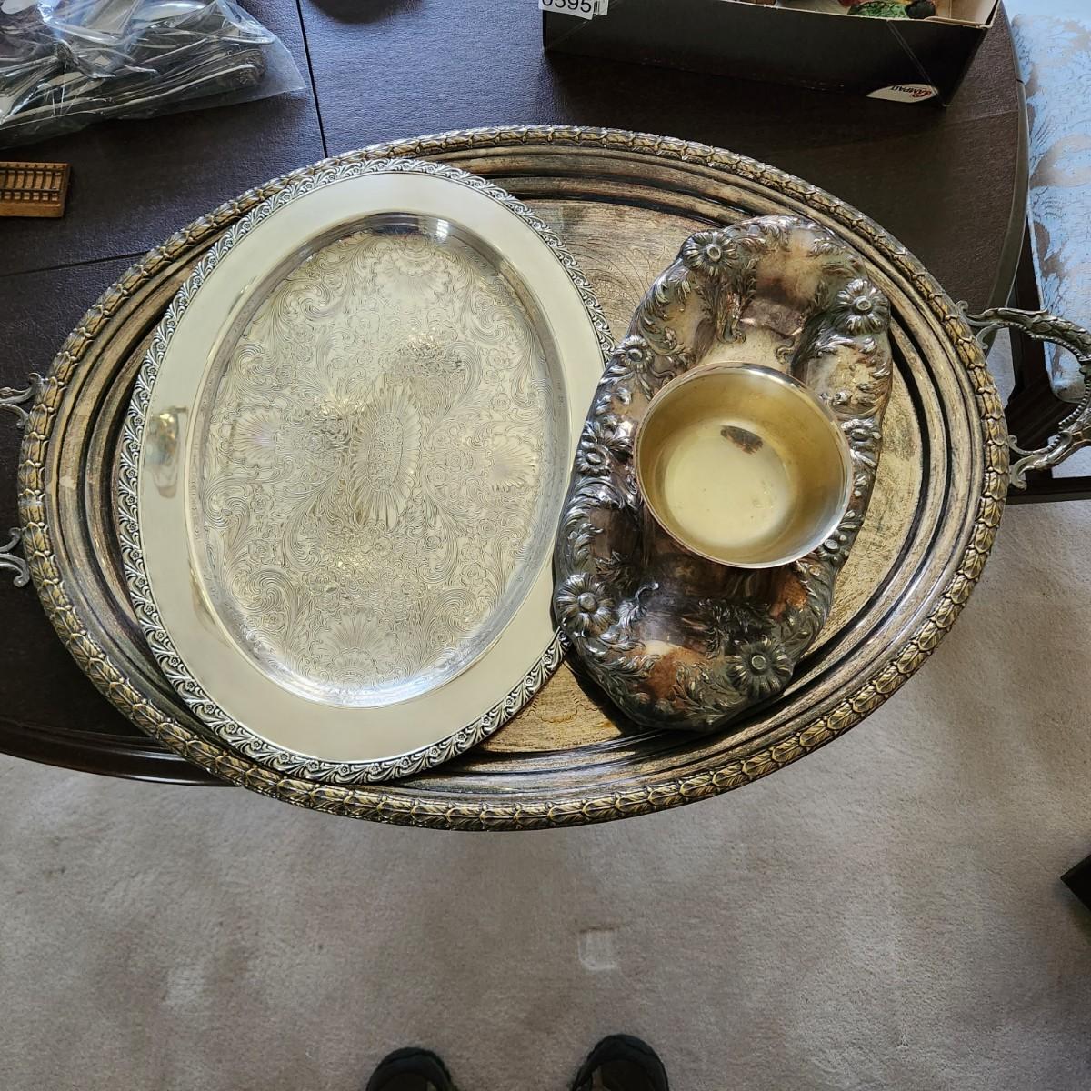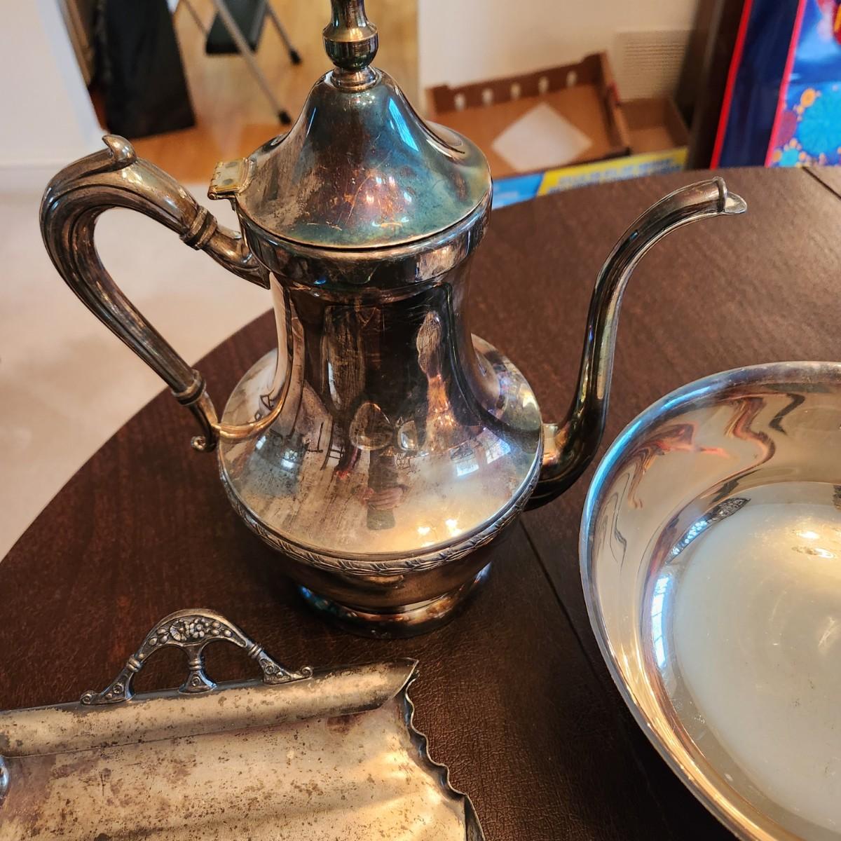 Large Lot Silver Plate & Pewter  Tea pot, Bowls, Trays