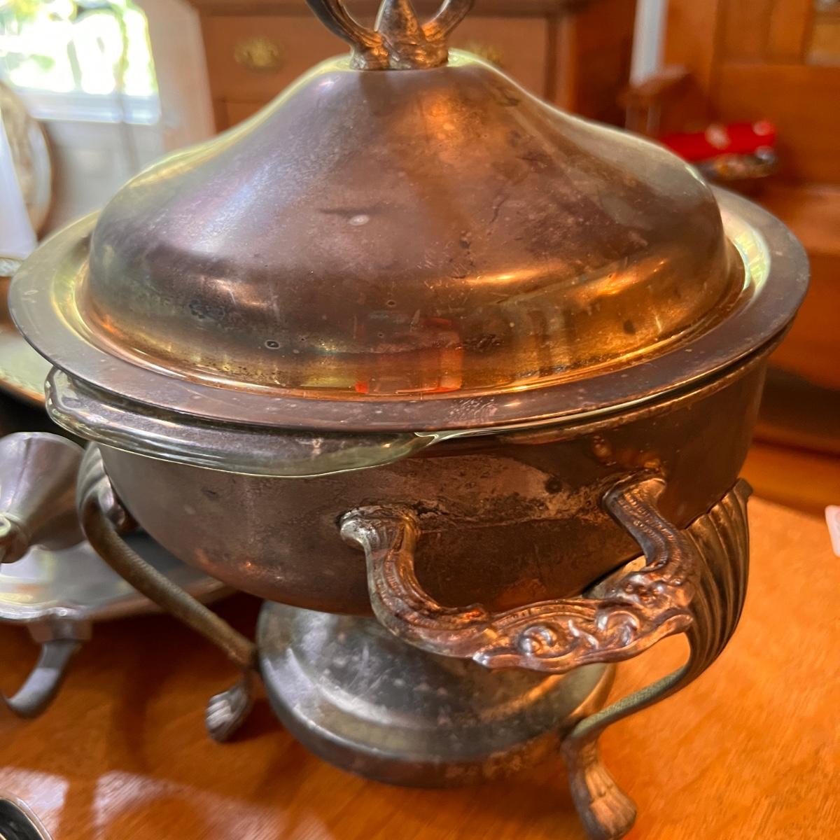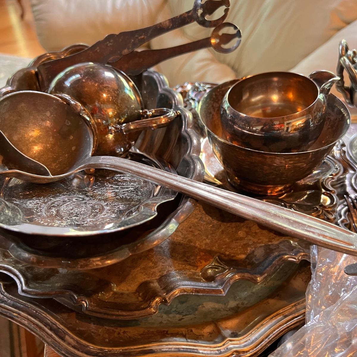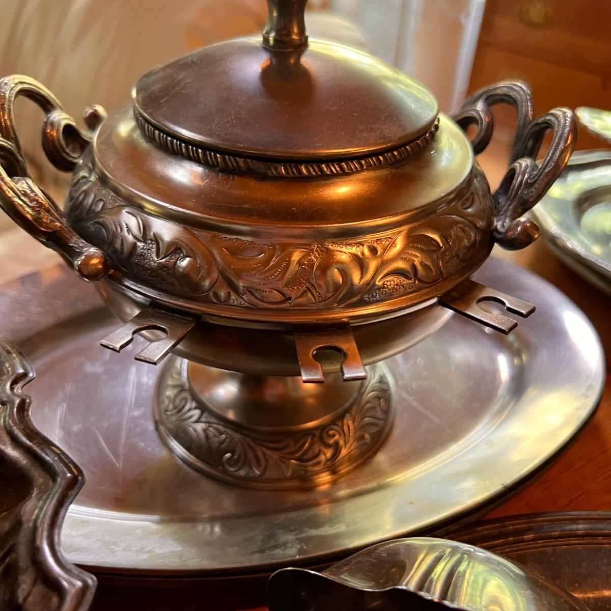Large Lot Antique Vintage Silver Plate & Pewter Serving-ware