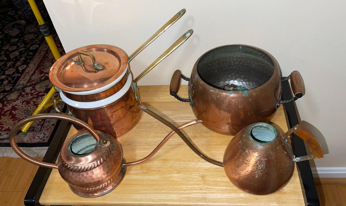 Vintage Paul Revere limited edition cookware, along with a variety of other copper pots as shown.