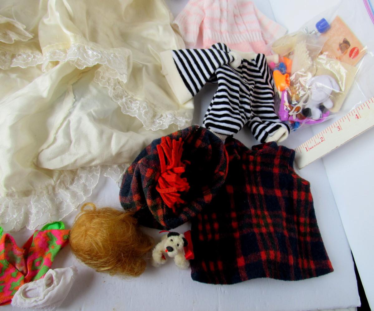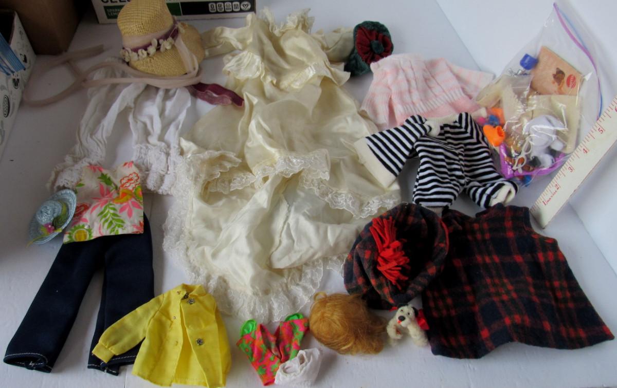 From well used to very good. Also, Barbie wig and some accessories. Shipping is available at actual shipping cost plus $5.00 handling fee per box for supplies/labor. See our terms for details. All sales are final. Condition notes may not be all inclusive, we may miss some issues as most vintage items are not in mint condition and have some degree of wear, paint loss, etc, but we always try to note obvious damage.