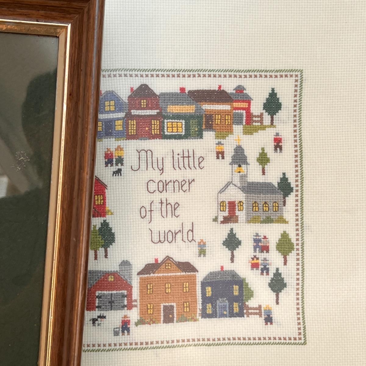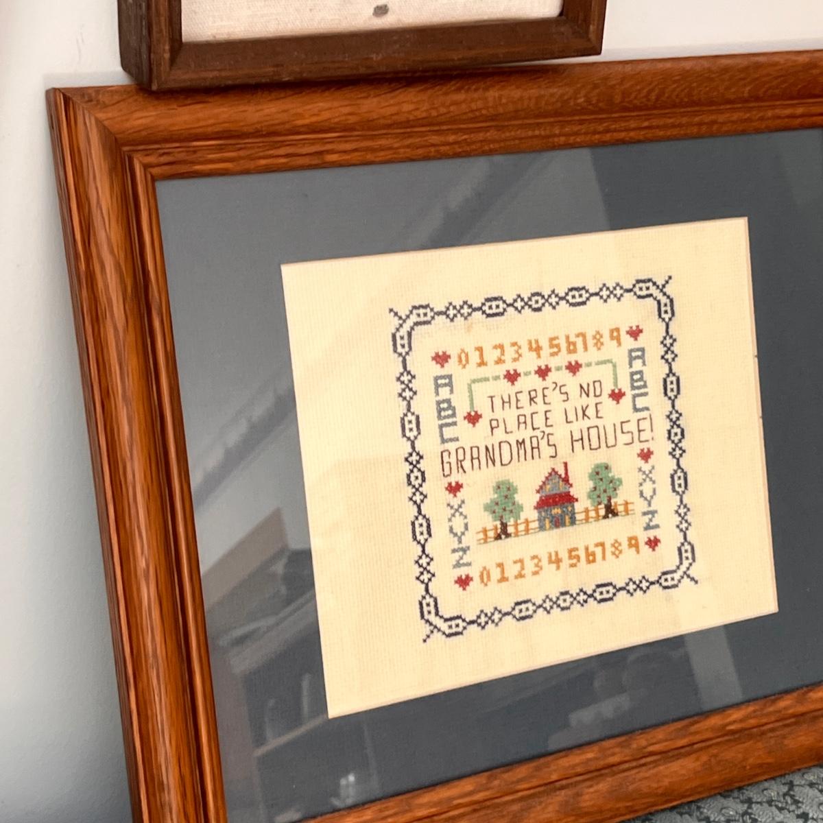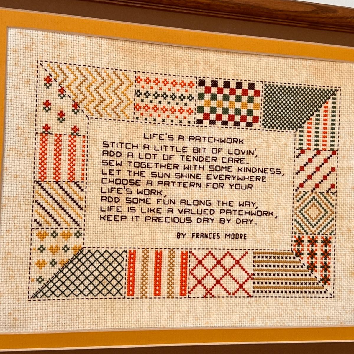 Framed hand embroidered hanging wall art.