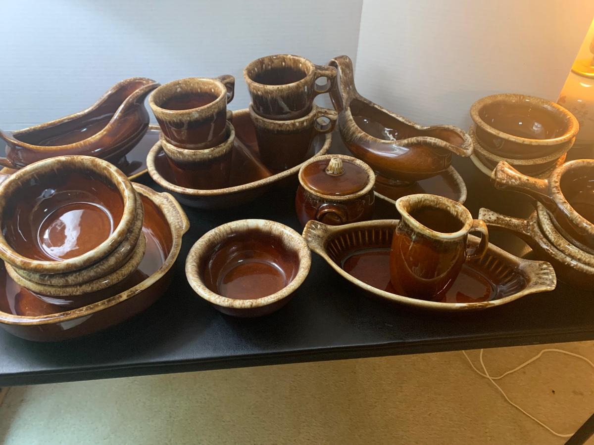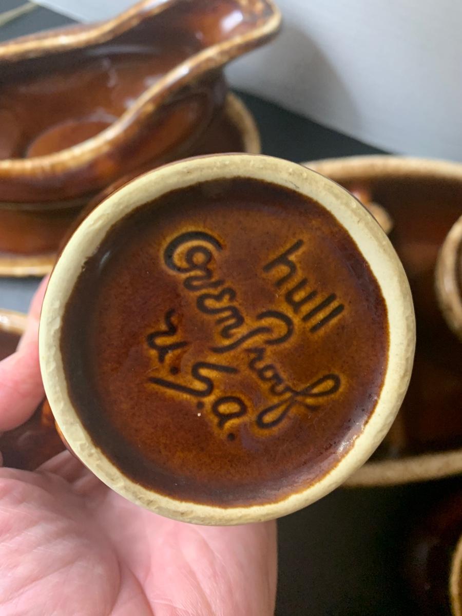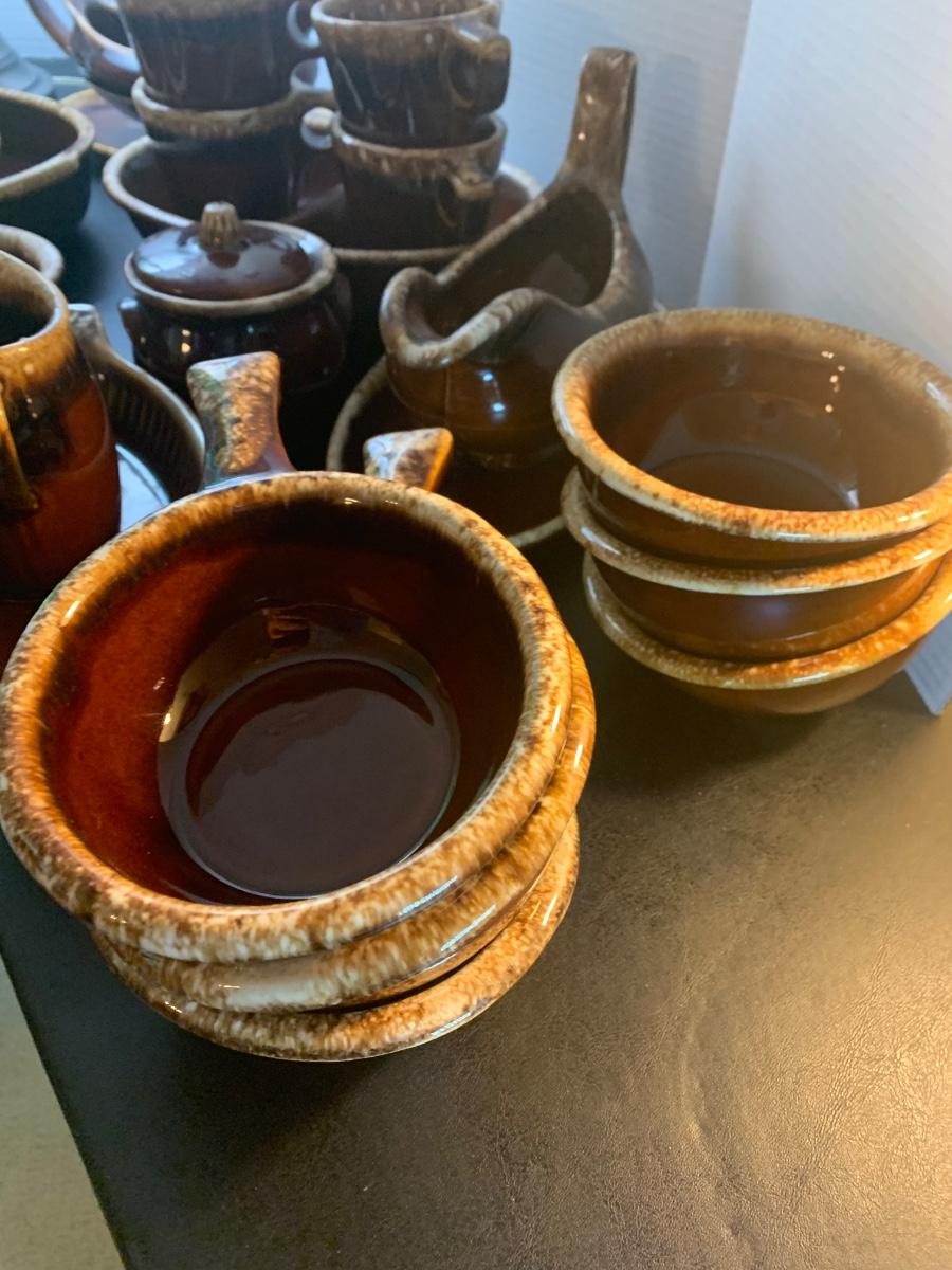 Large Lot Vintage USA Hull Pottery Oven Proof Brown Drip Glazed Cookware Lot 216
