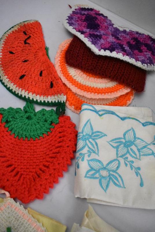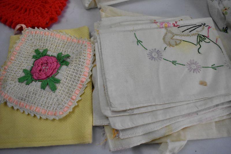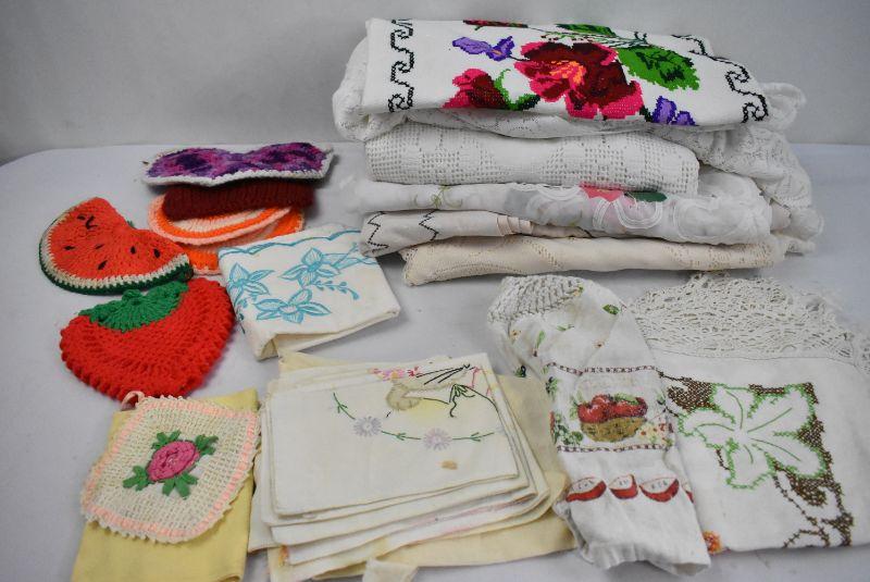 Large Lot Vintage Kitchen Linens: Tablecloths, Towels, Napkins, etc
