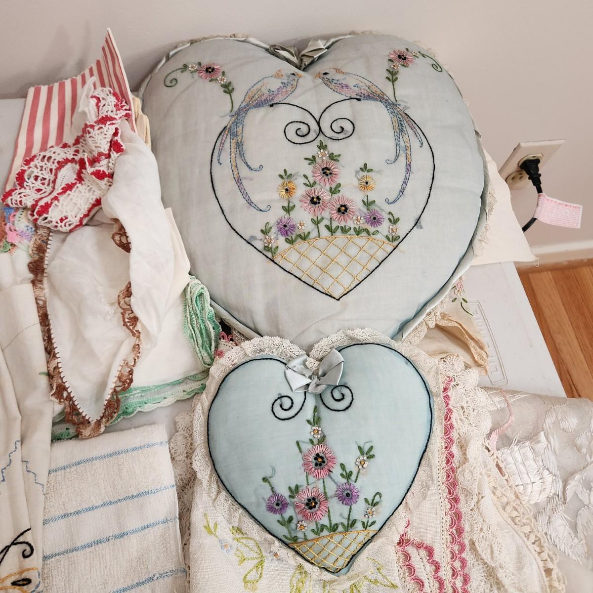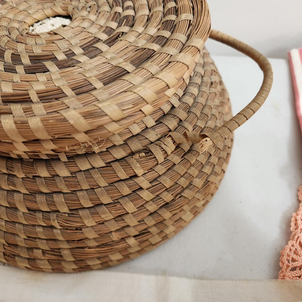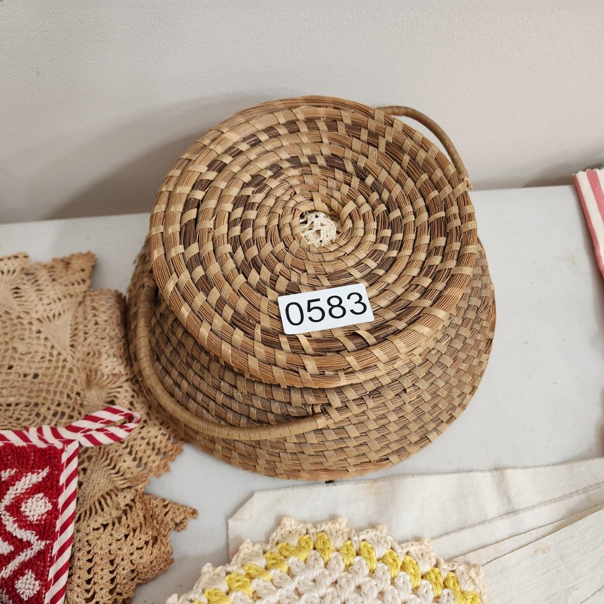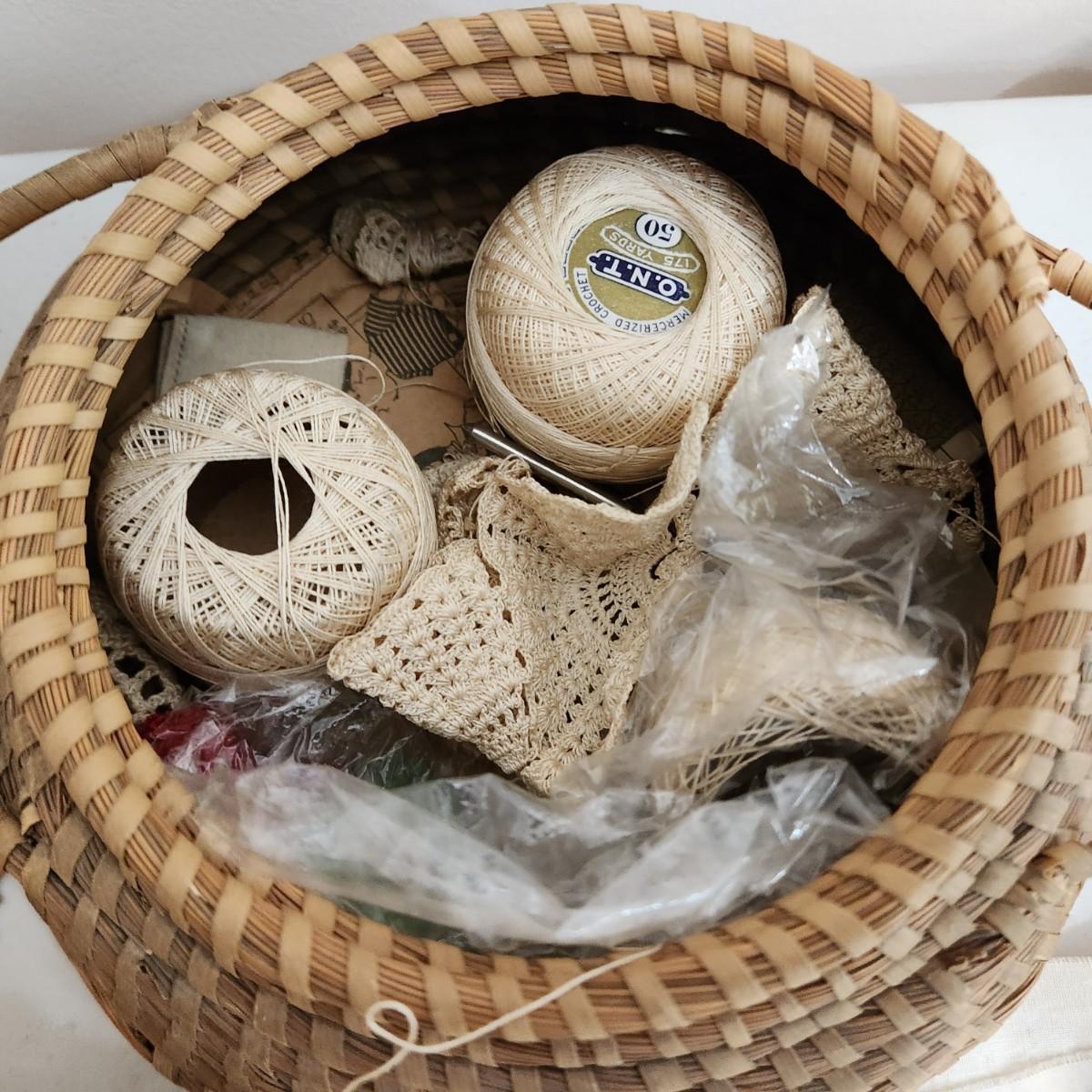 Large Lot Vintage Linens Textiles Lace Basket Lot  583
