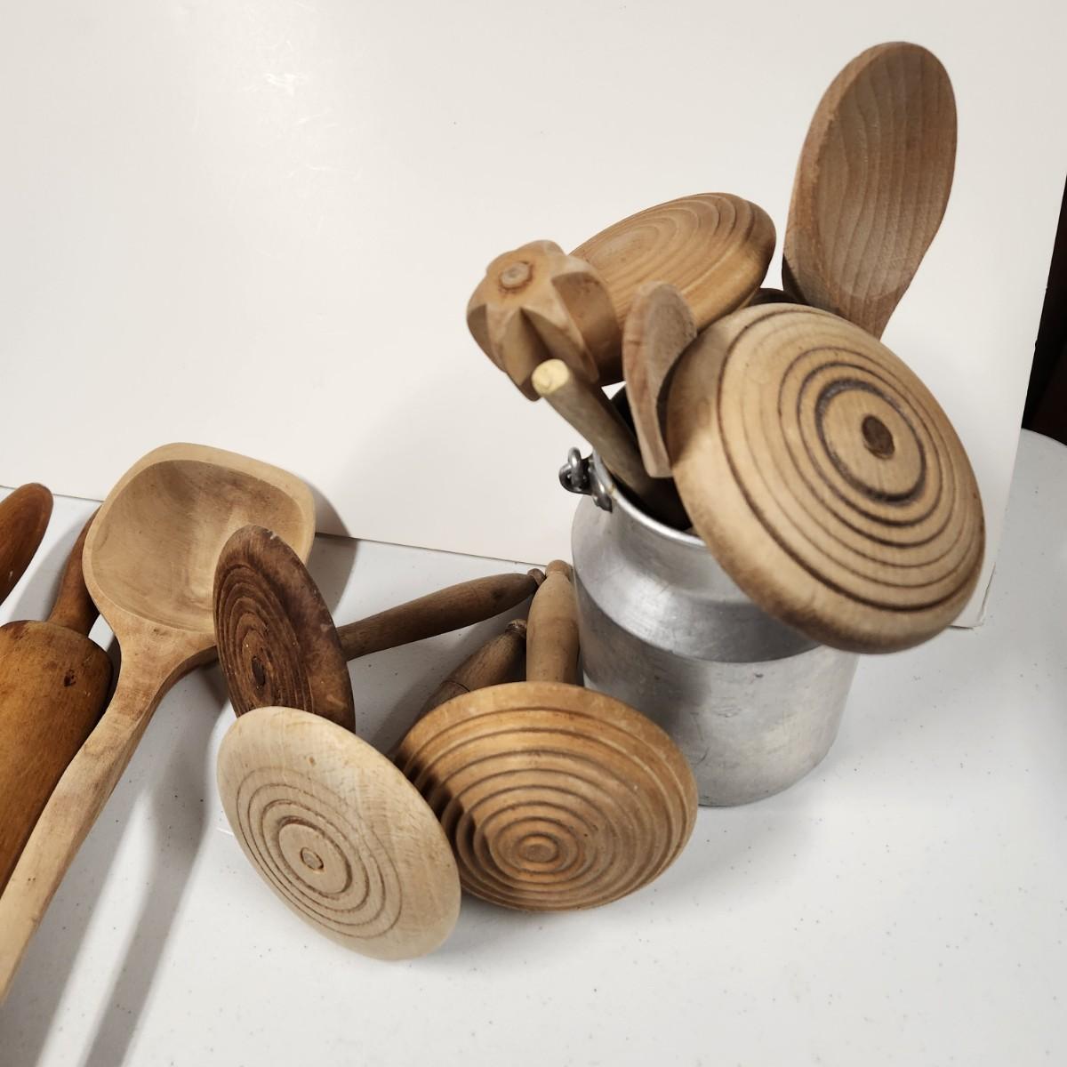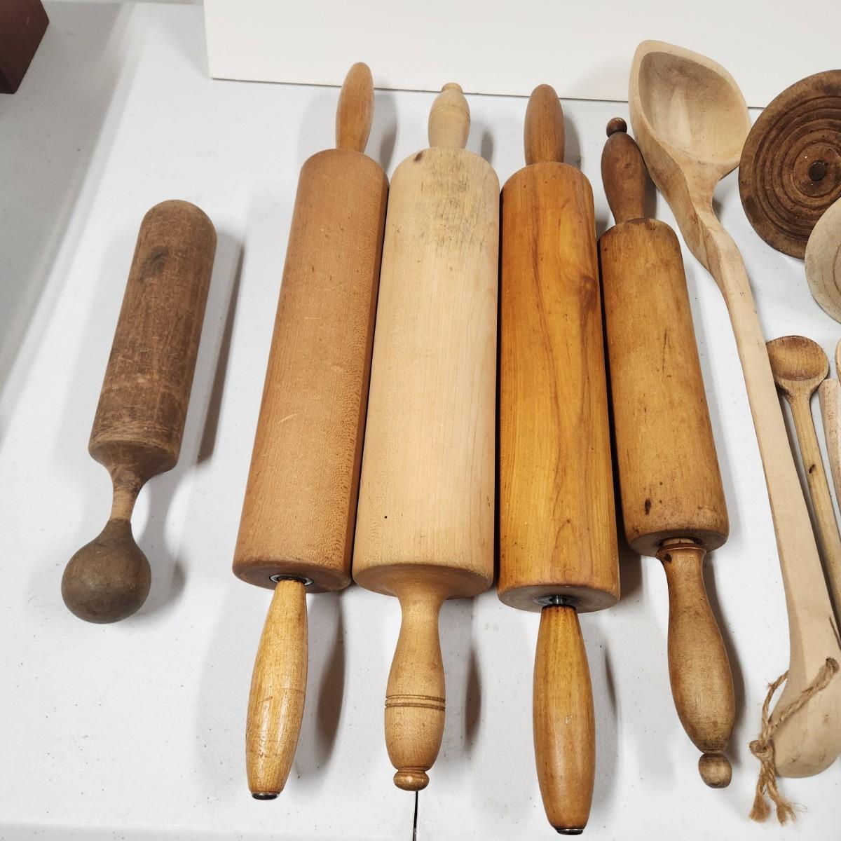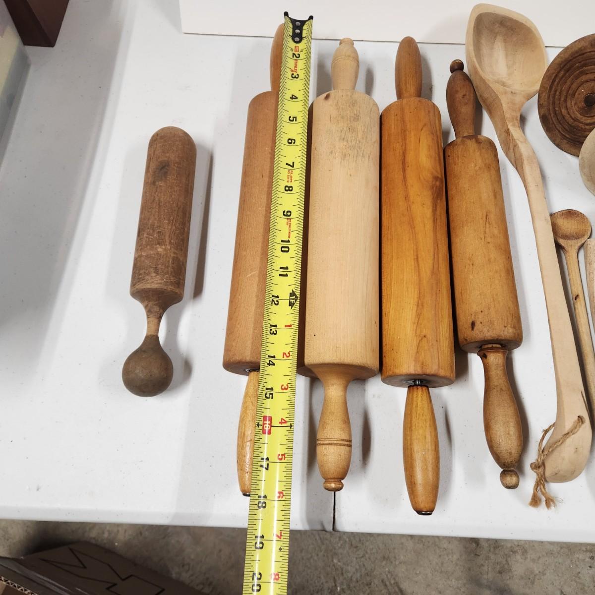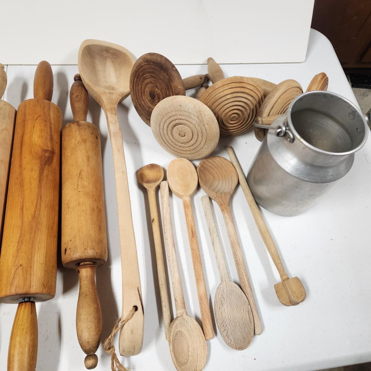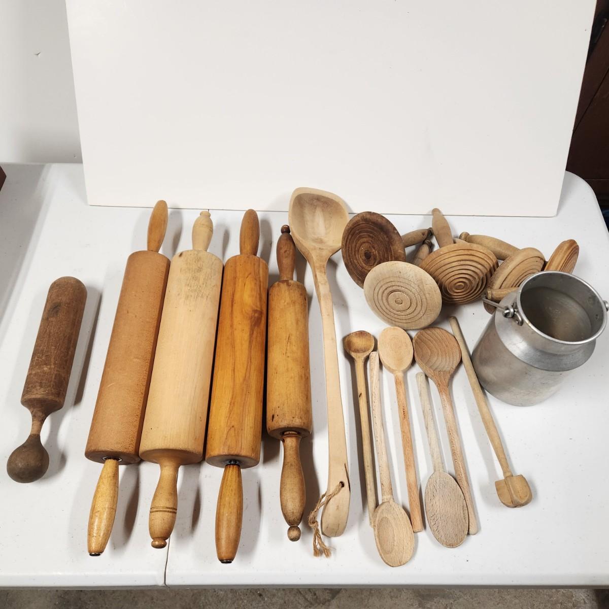 Large Lot Vintage wood kitchen Rolling pins, ladles,mashers