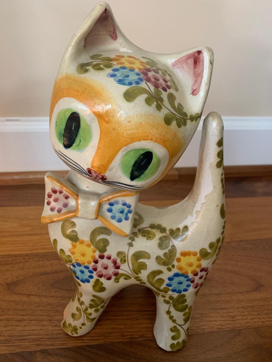 Large Made In Italy Ceramic Hand Painted Cat
