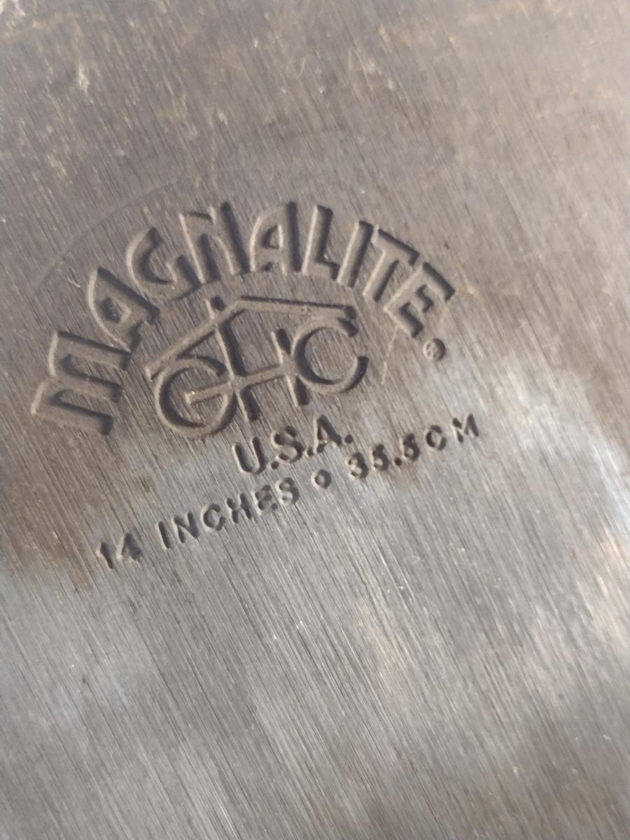 Large Magnalite Pan with Lid- 14 Inch. Item is in used condition and has wear to finish- please see all pictures.
