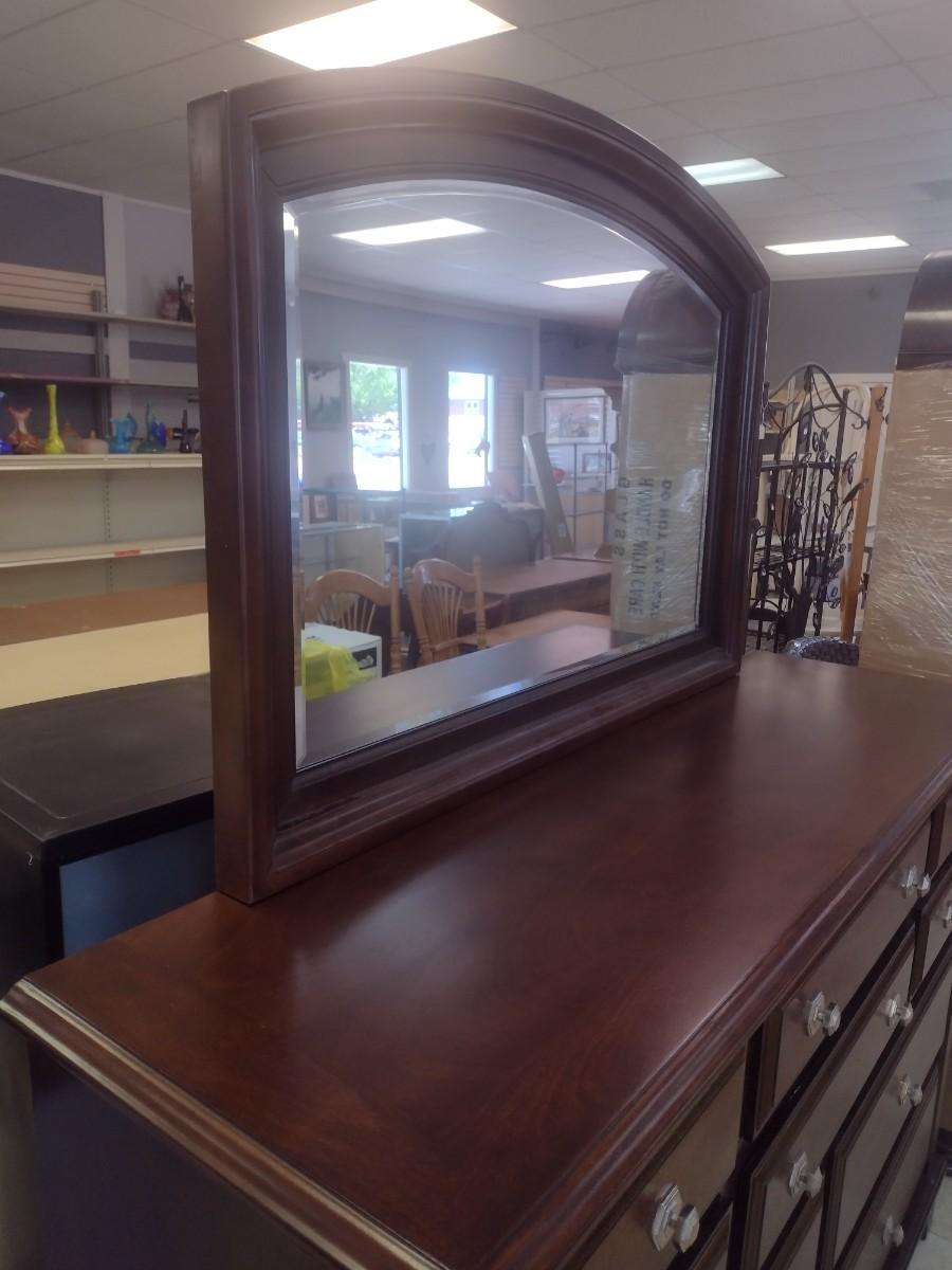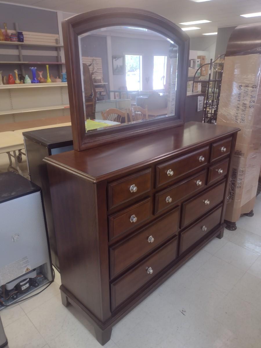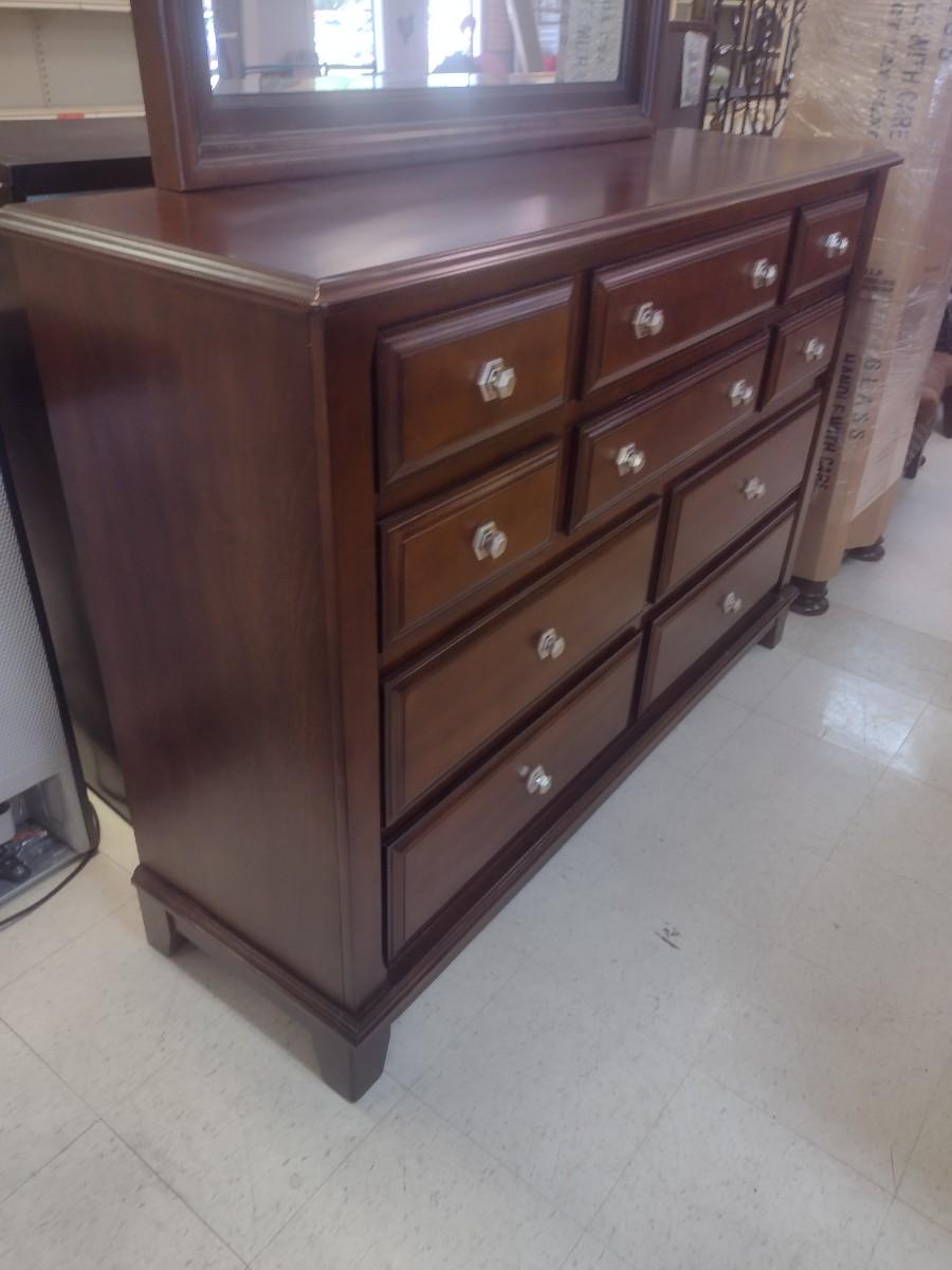 Large Mahogany Finish Ten Drawer Dresser with Mirror