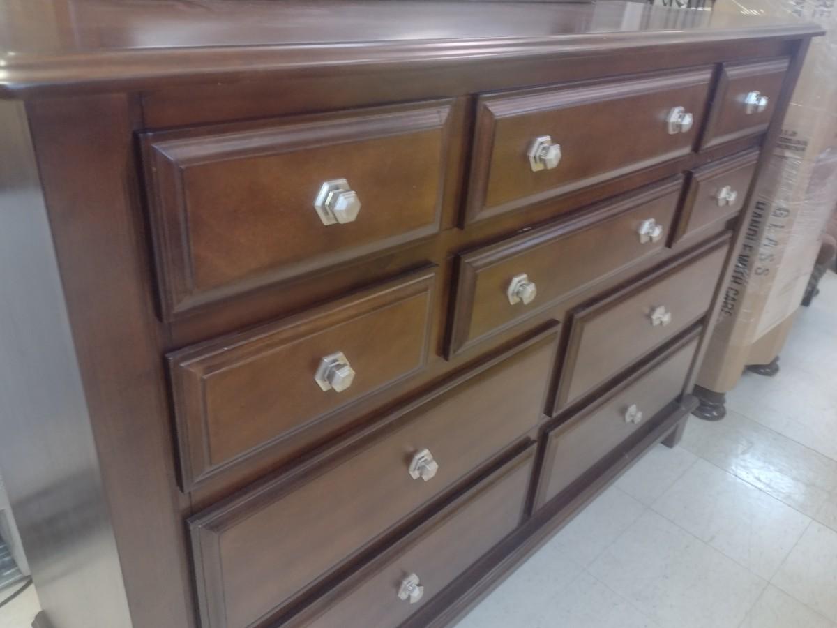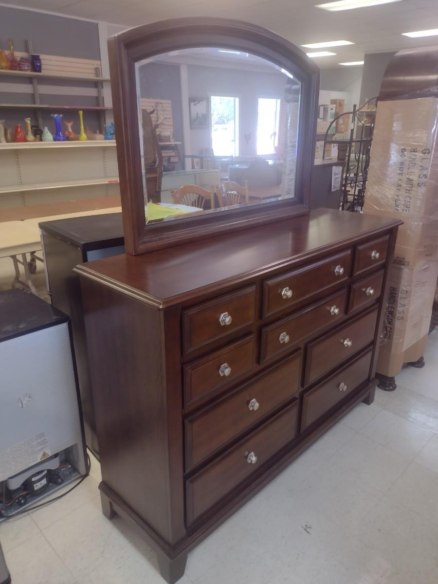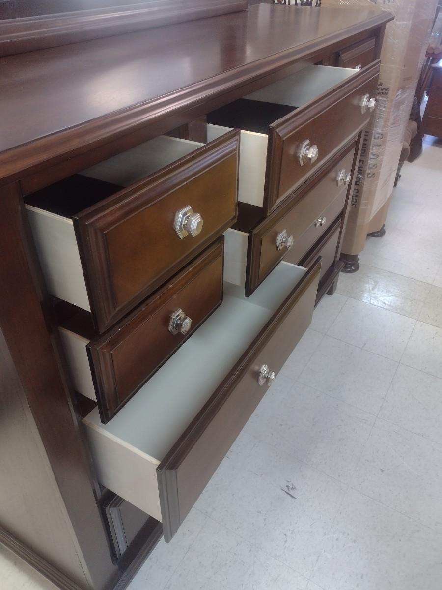 Large Mahogany Finish Ten Drawer Dresser with Mirror