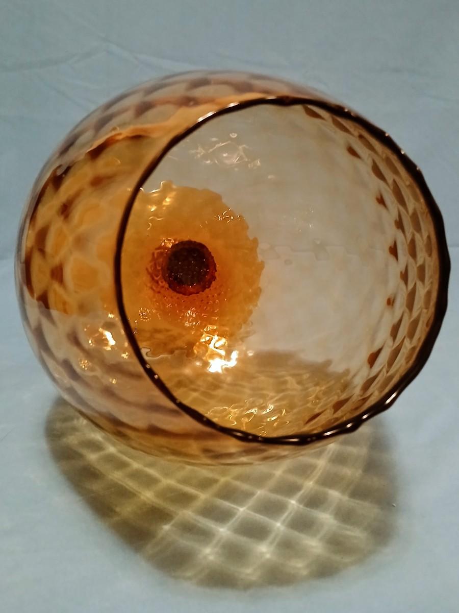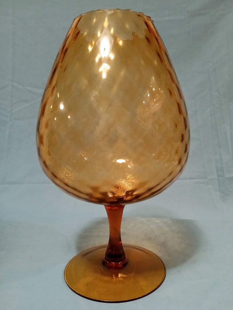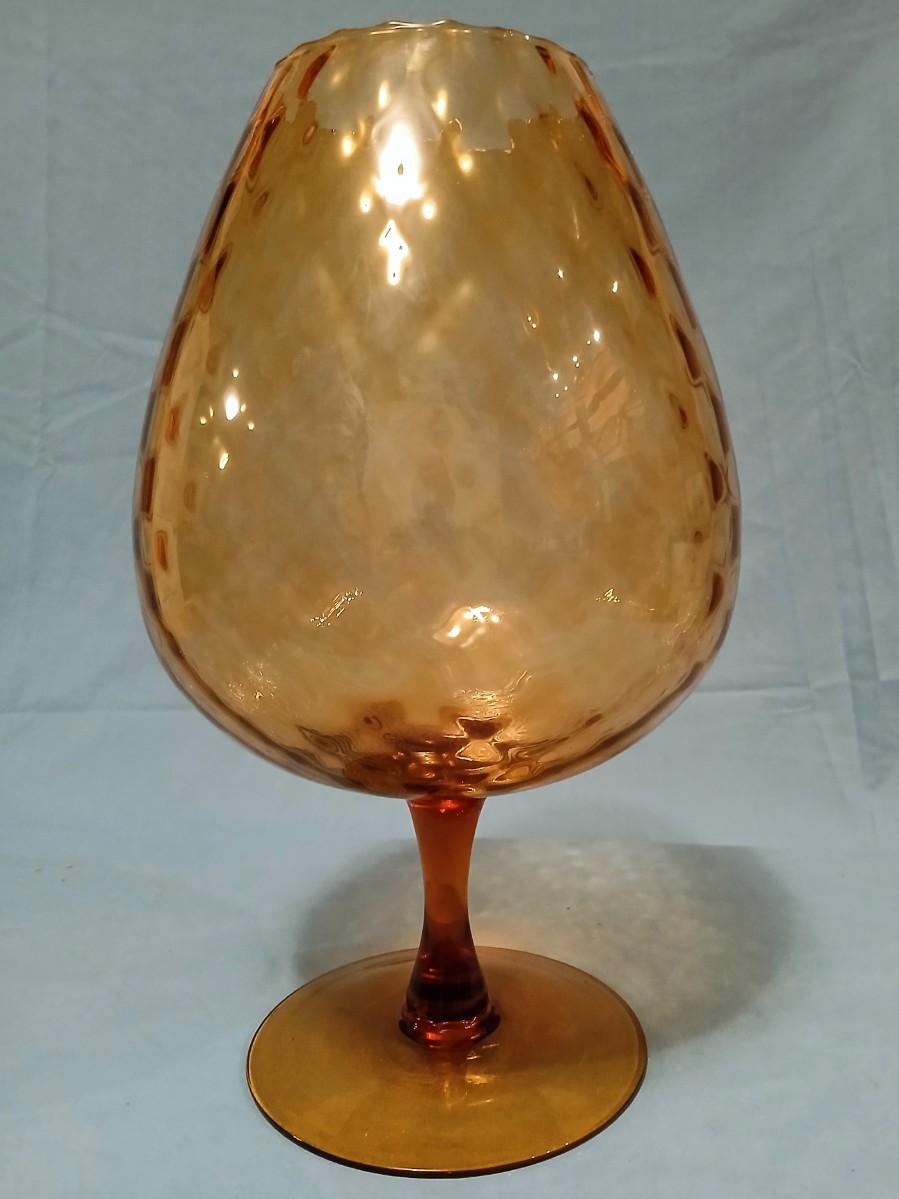 Large MCM Vintage Empoli Brandy Snifter Vase - Amber Diamond Optic Glass