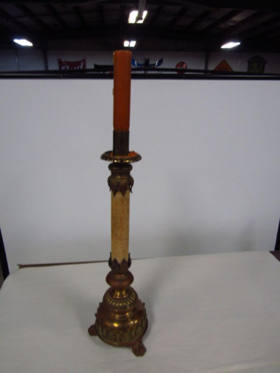 Large Metal and Natural Stone Candle Stick Holder- Approx 25" Tall