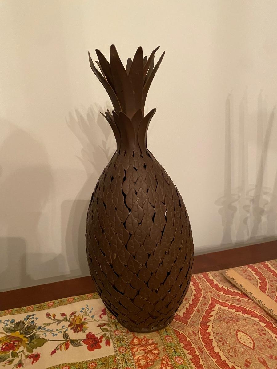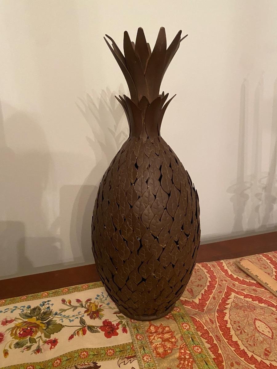 Large 18" In Metal Art Free Standing Pineapple Sculpture in excellent condition. Add a candle and make cool patterns.