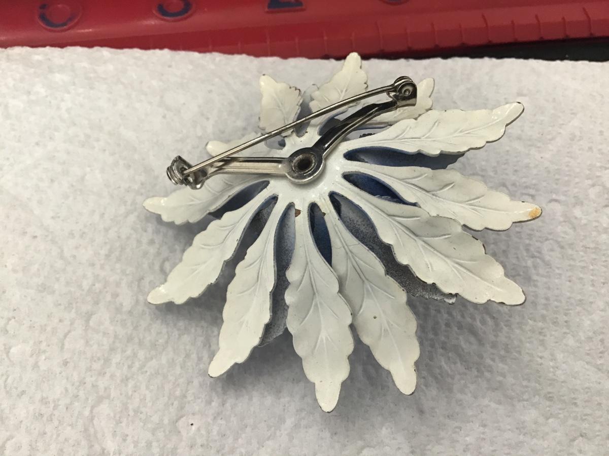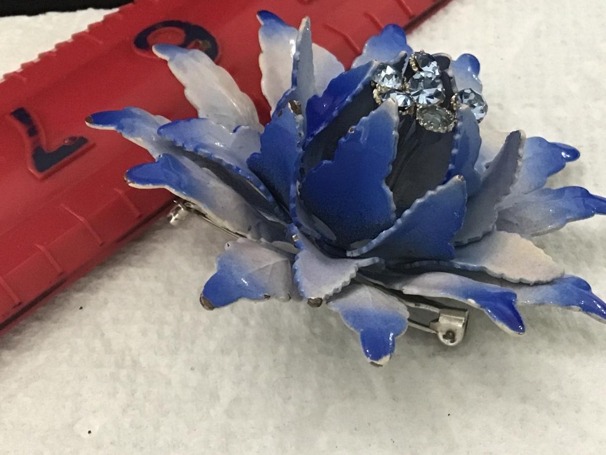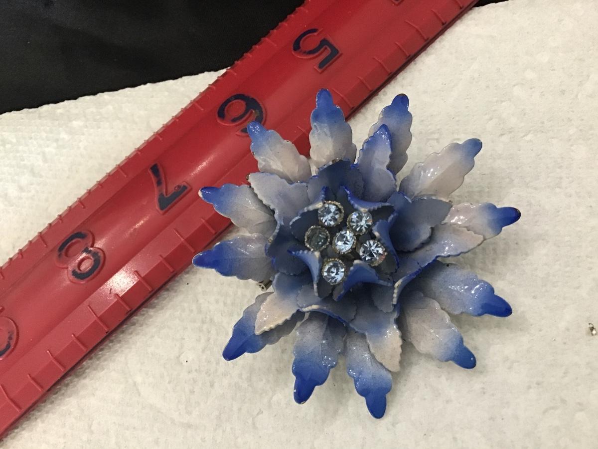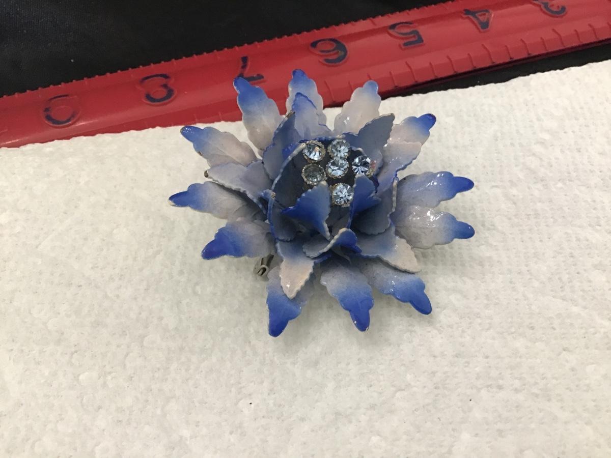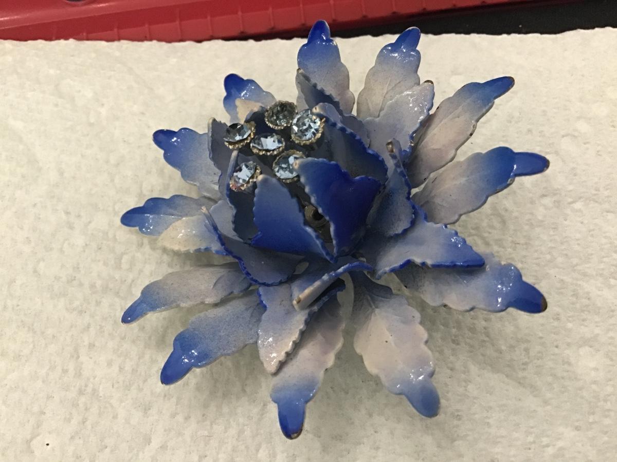 Large Metal Domed Blue and White Metal With Rhinestones Vintage
