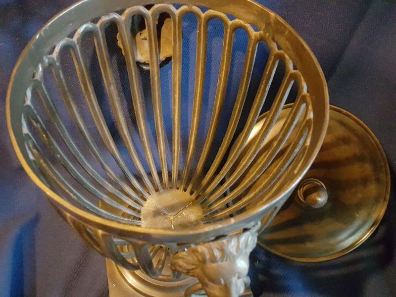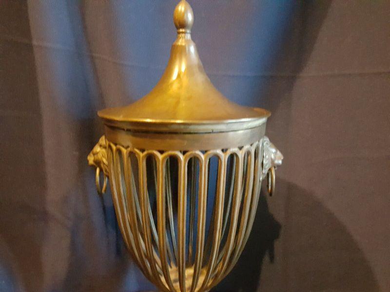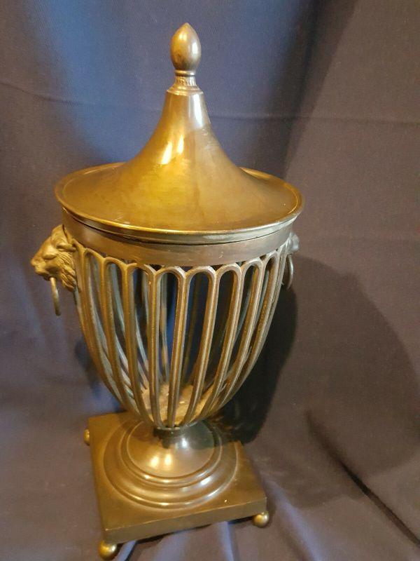 Large metal lantern w/ Lion Head Handles and removable Lid.