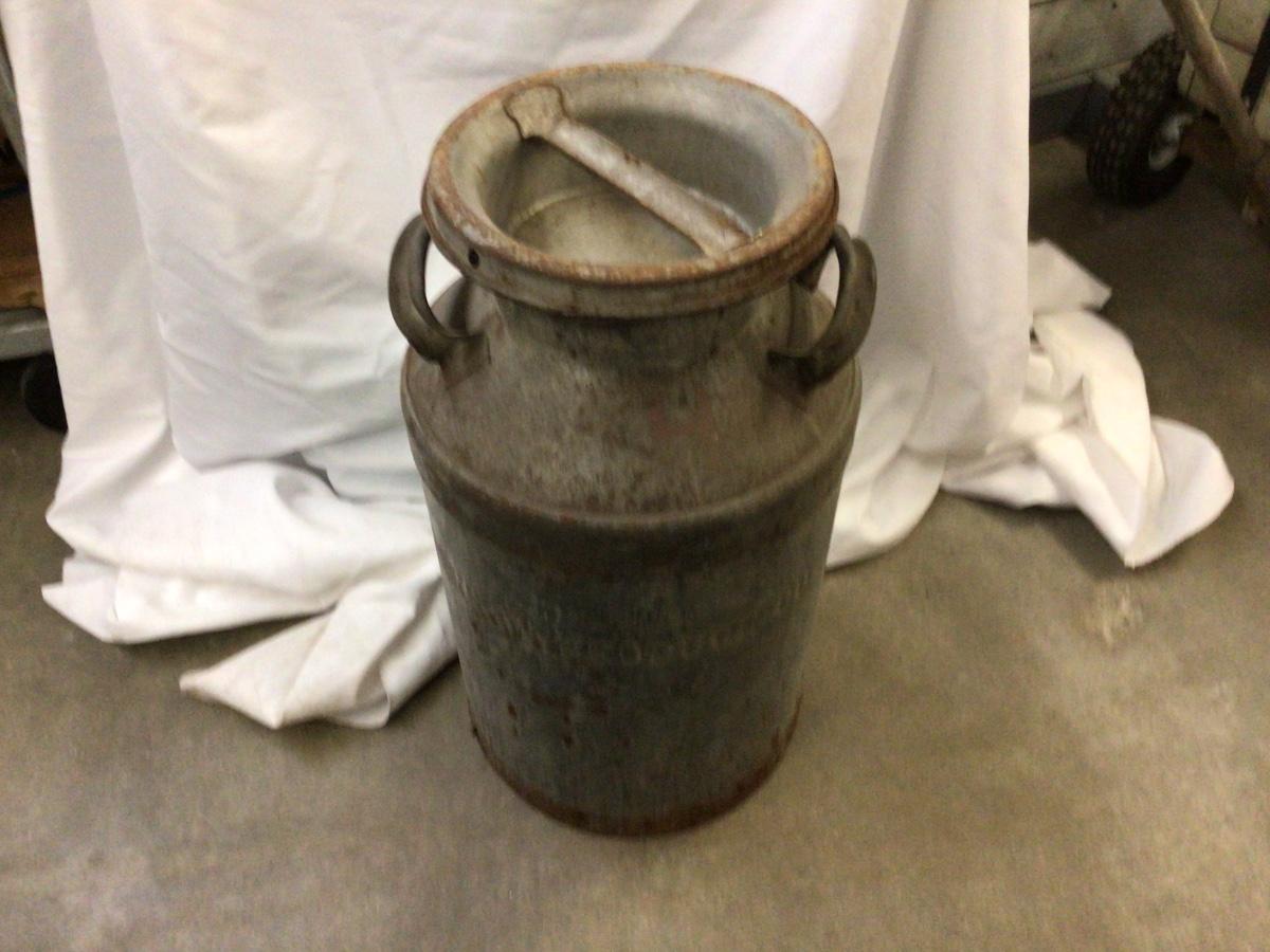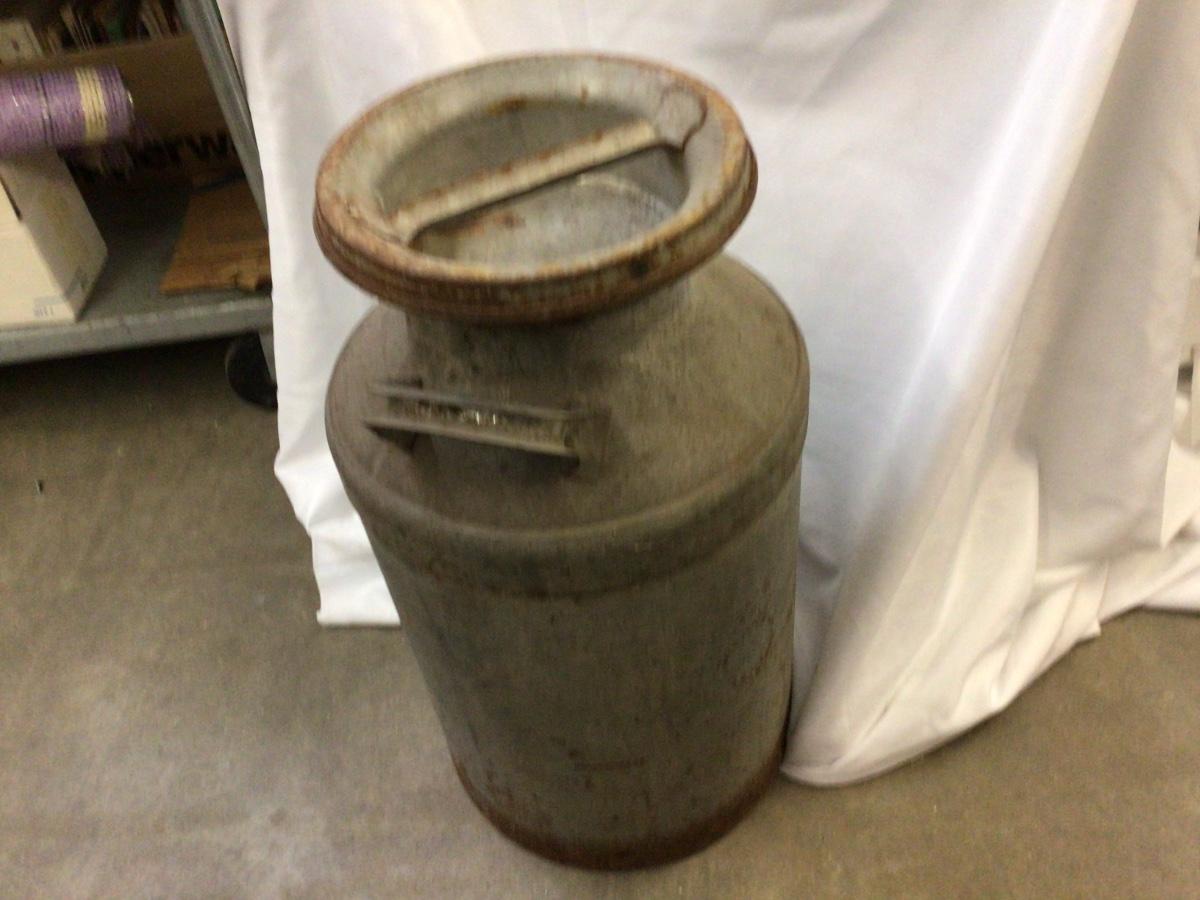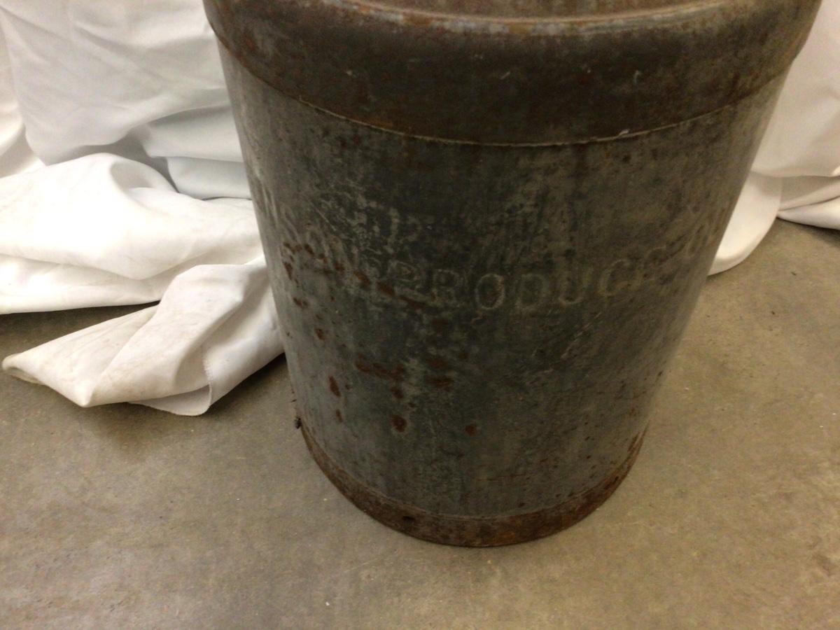 You get a great enamel rectangle Benson Produce Co large metal milk can. Was not able to get lid off.