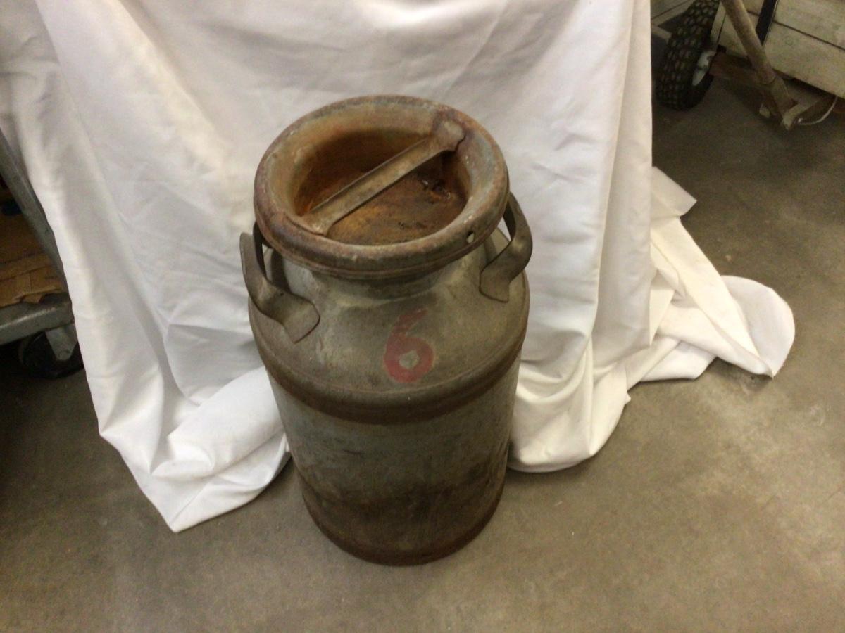 You get this great large milk can with #6 painted on it. Was not able to get the lid off.