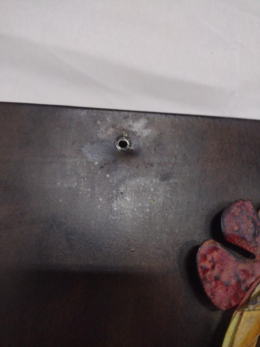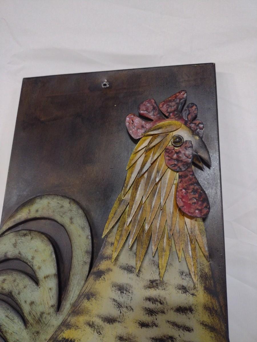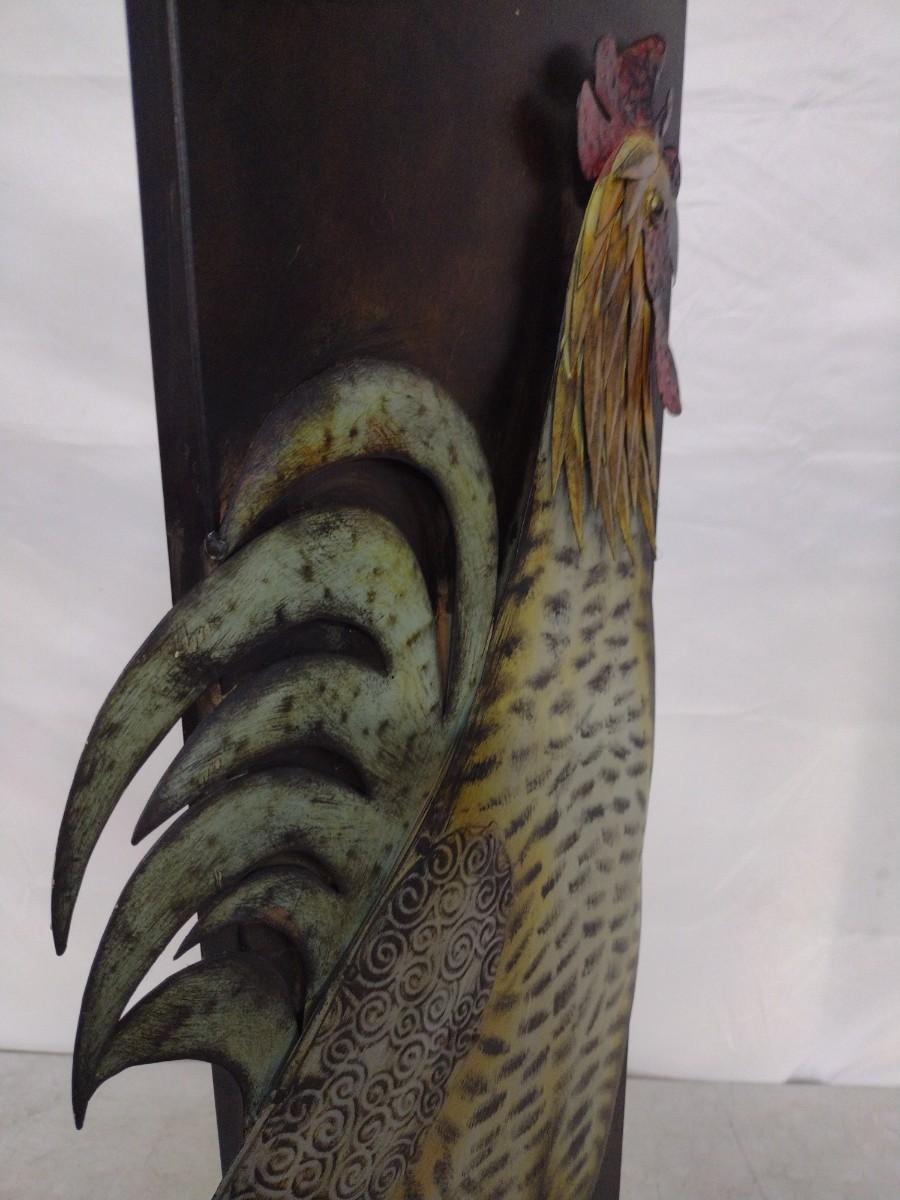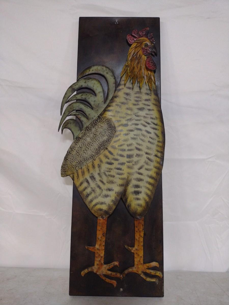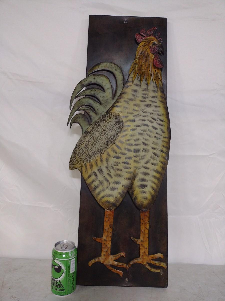 Large Metal Rooster Themed Wall Decor. Measures approximately 32" x 12". Piece has been mounted previously and has a small hole at the top and bottom-please see all pictures.