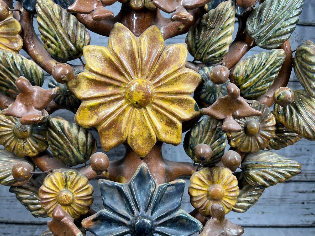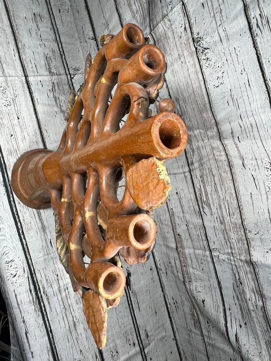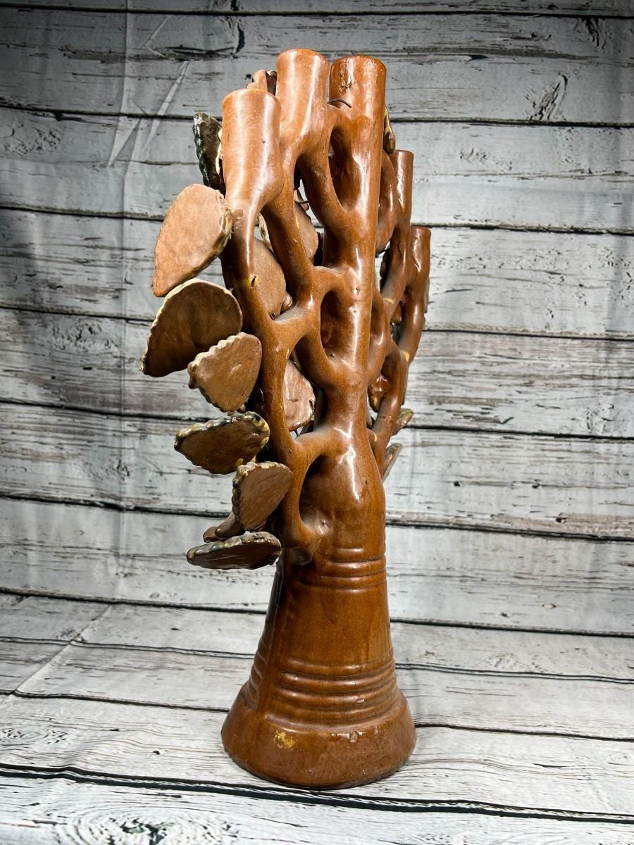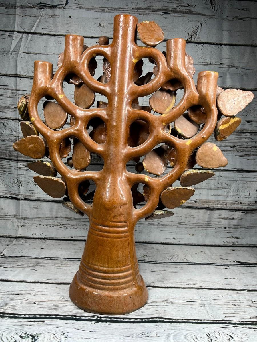 Large Mexican Folk Art Floral Pottery Tree of Life Statue Candle Holder Candelabra