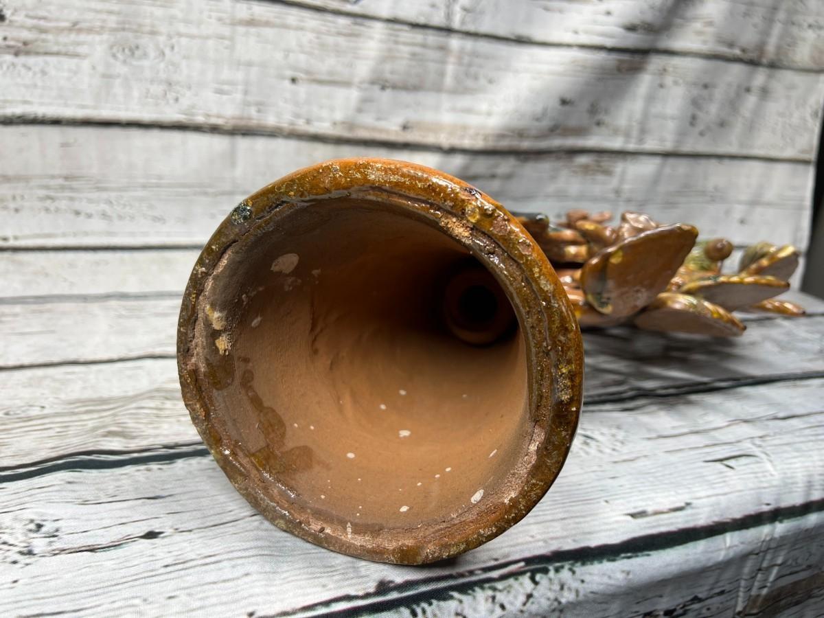 Large Mexican folk art floral Tree of Life statuette. Nicely done pottery, muted colors. Open ends can be used as a candelabra. Minor chips here and there but they blend in with pottery. About 20" tall. Unsigned.