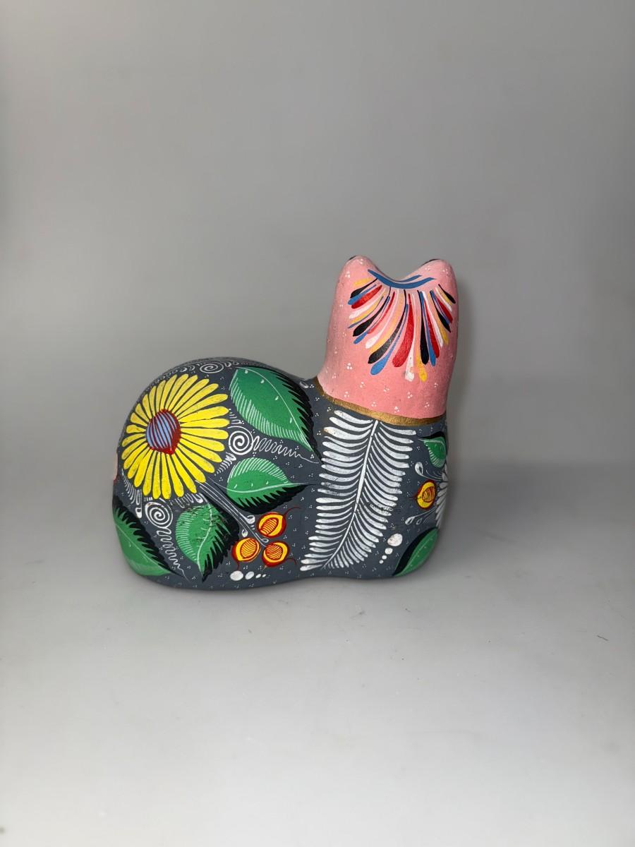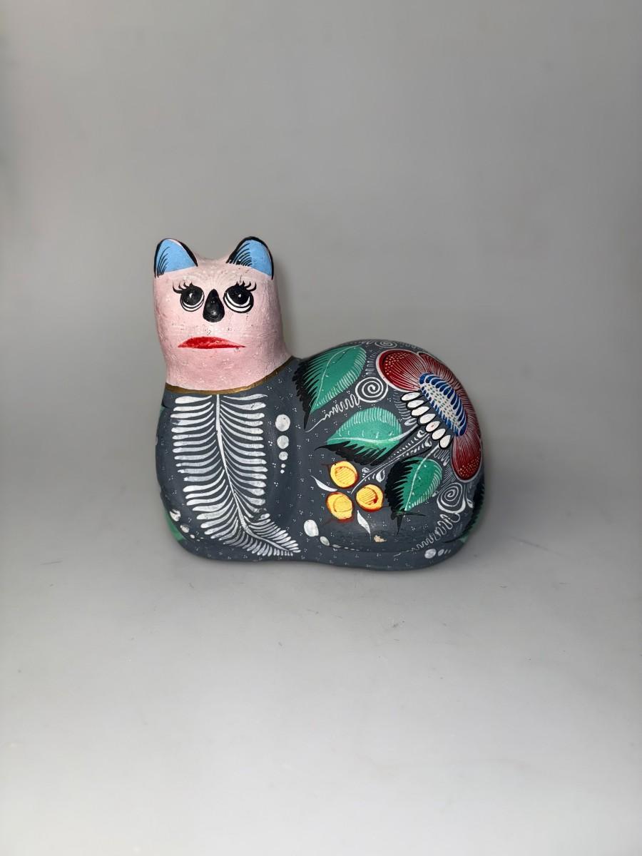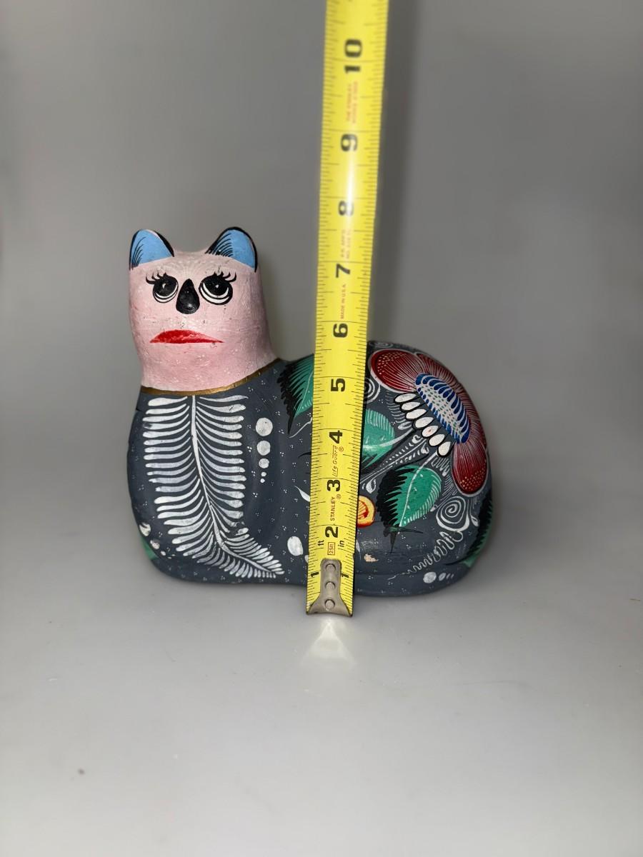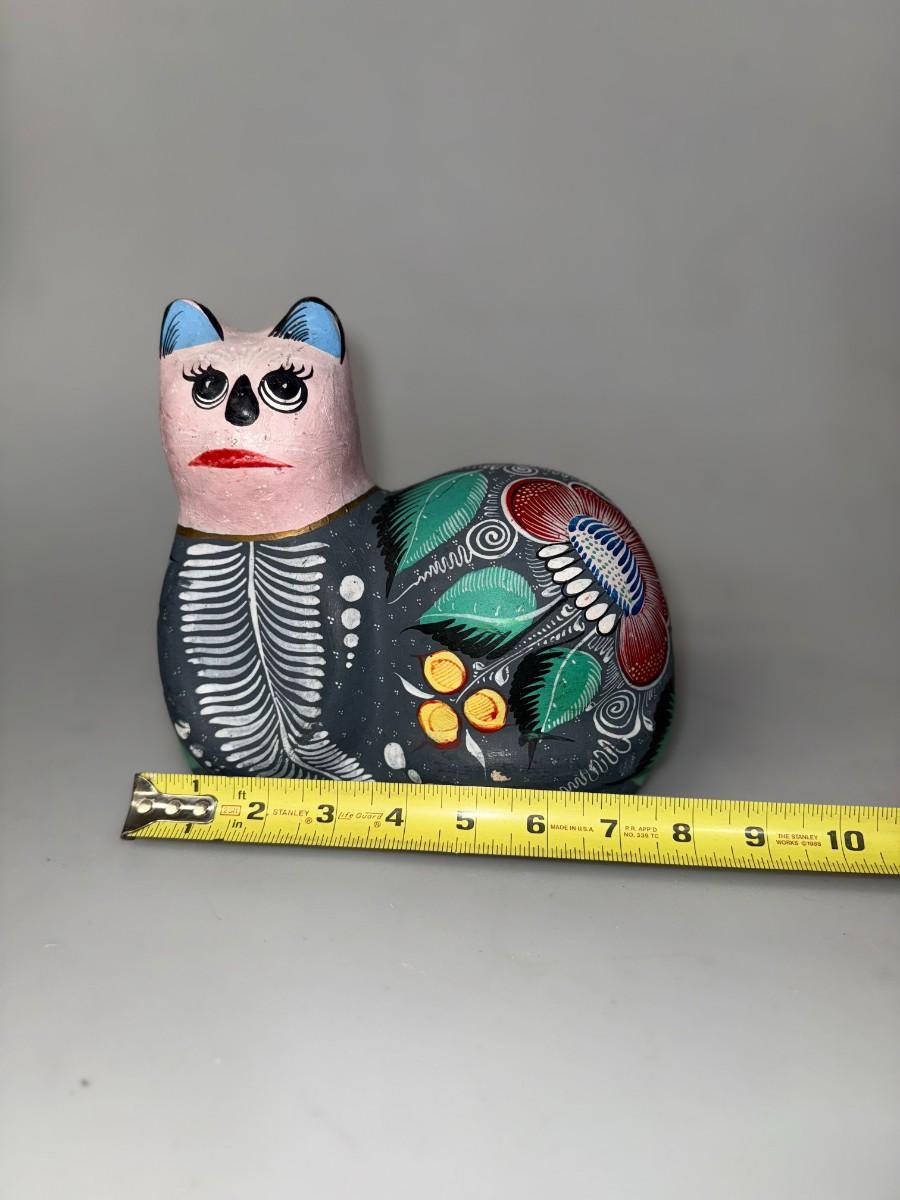 Large Mexican Talavera Multicolor Cat Figurine Hand Painted Folk Art