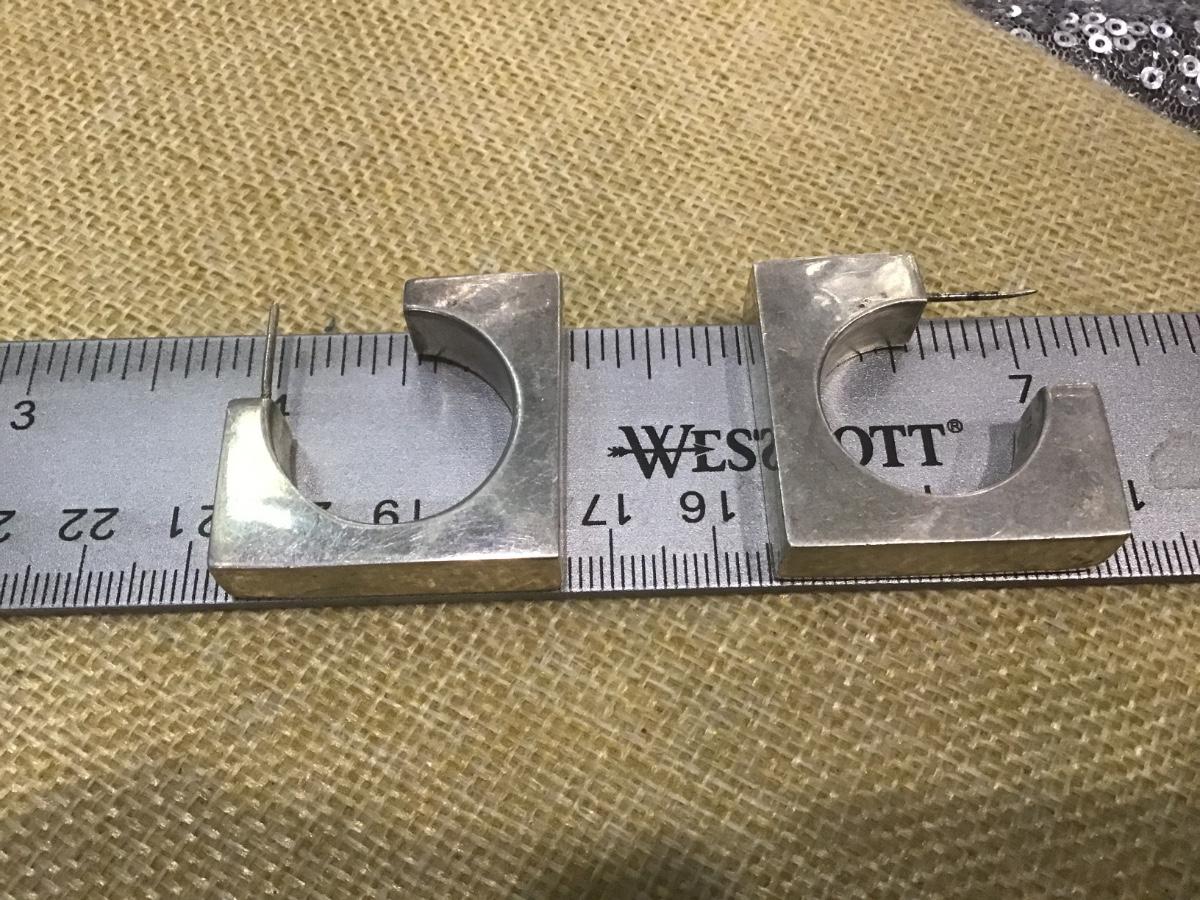 lARGE MEXICO 925 Sterling Silver - Vintage Dark Tone Square Hoop Earrings