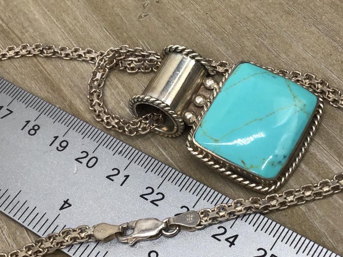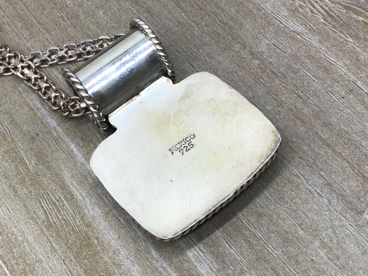 Large Mexico Silver 925 Pendant. Italy Sterling Silver. Heavy Chain