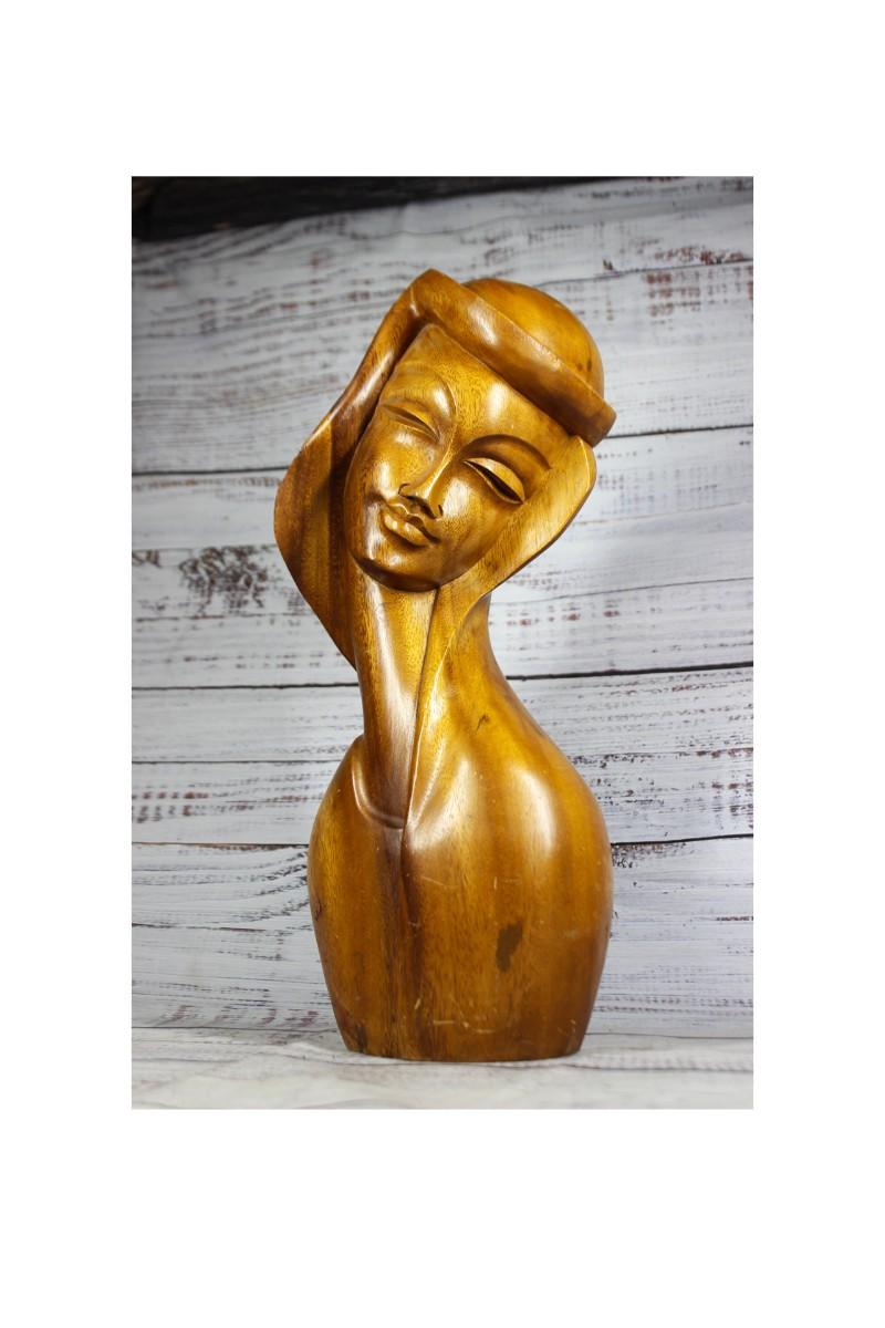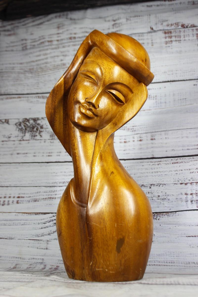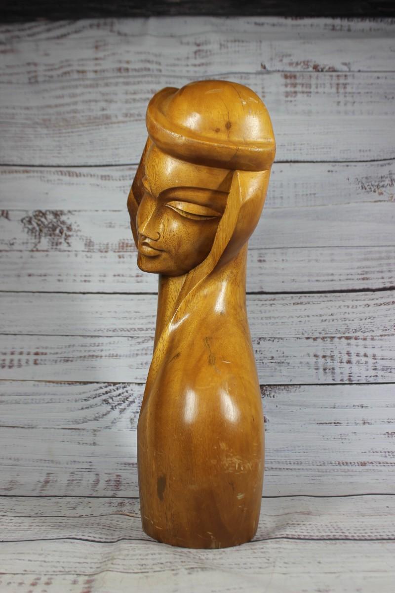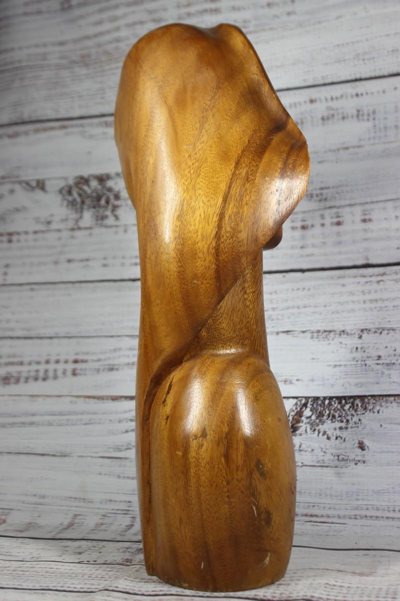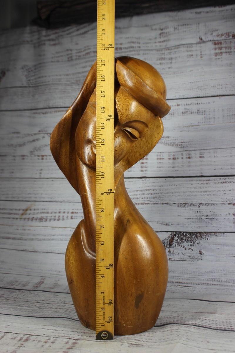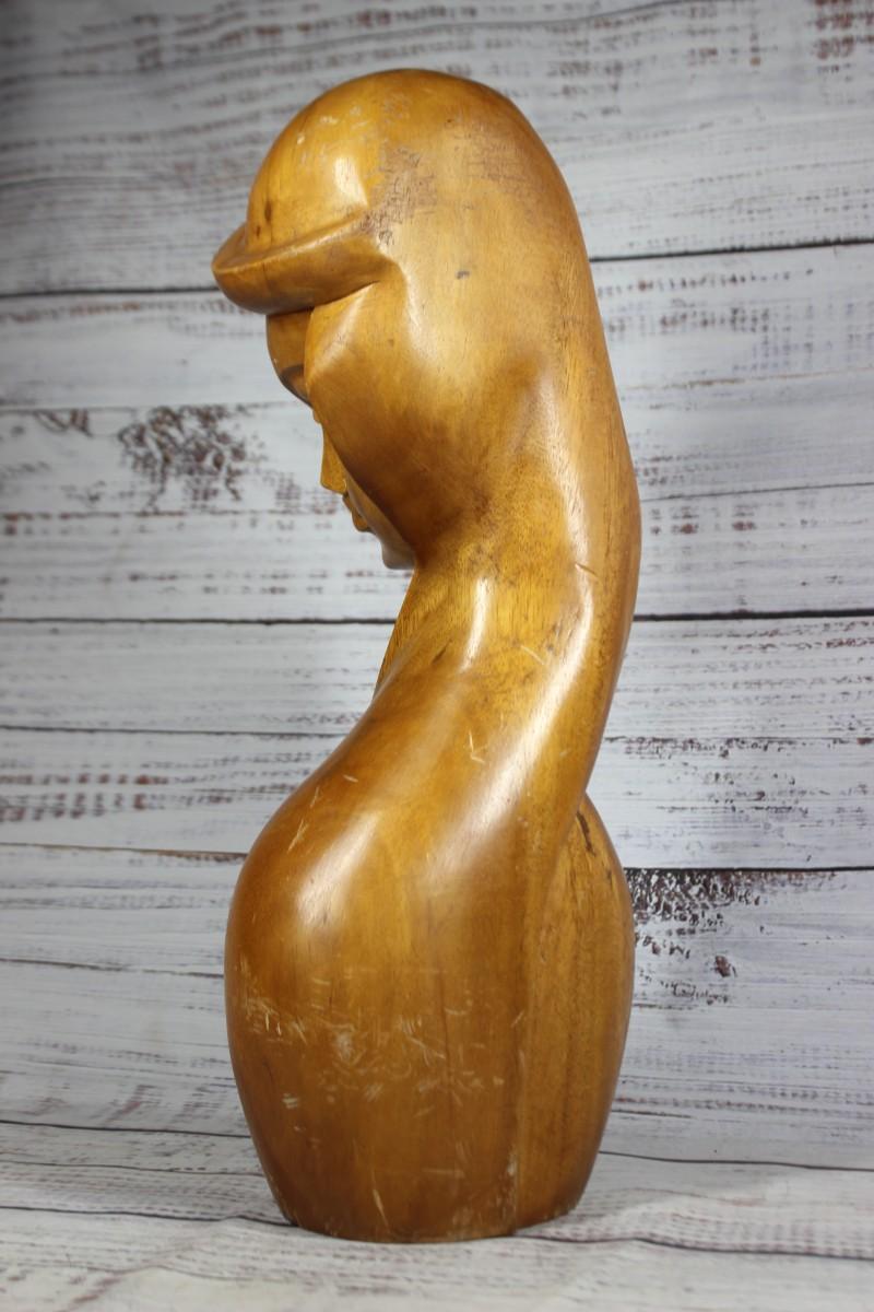Mid-century carved bust of a woman. Monkey pod wood carving about 18" tall. Does have some scratches from age and display, but no bad damage looks good.