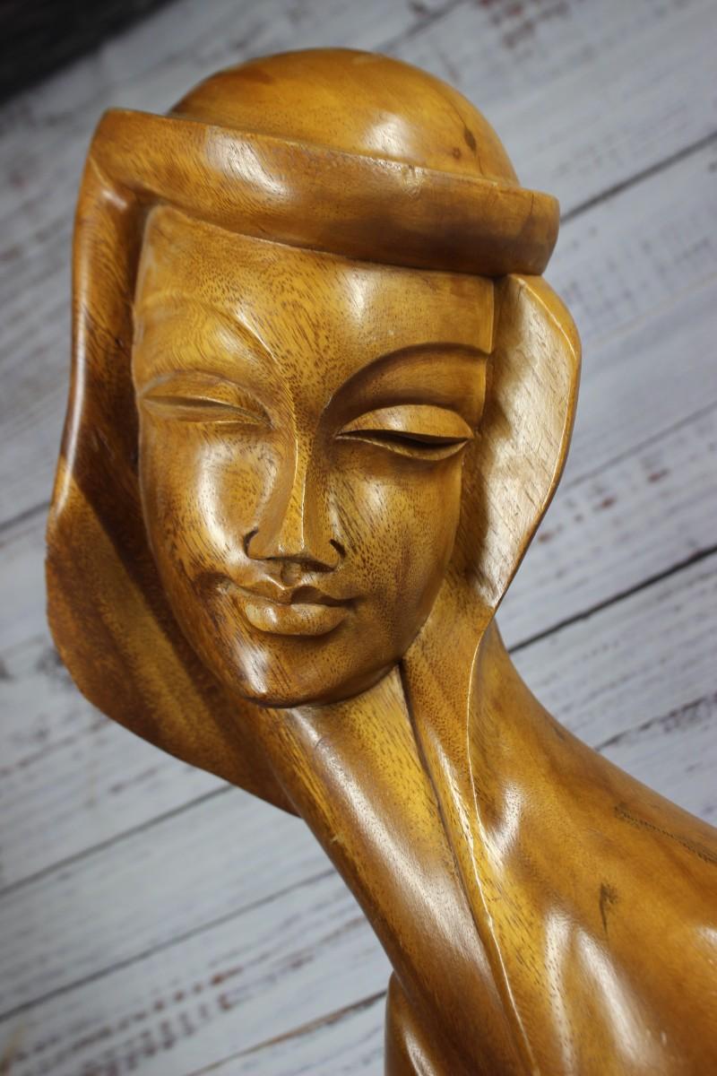 Large Mid Century Carved Wood Monkey Pod Bust Girl Woman