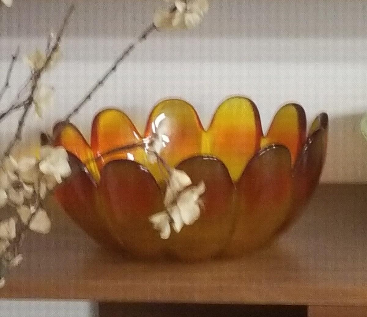 Large mid-century translucent Orange Bowl with unique shaded coloration