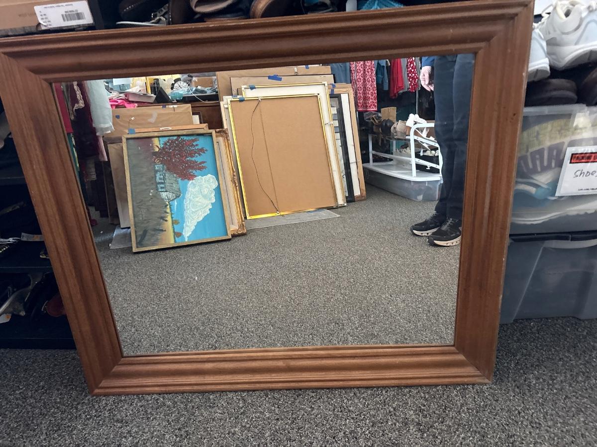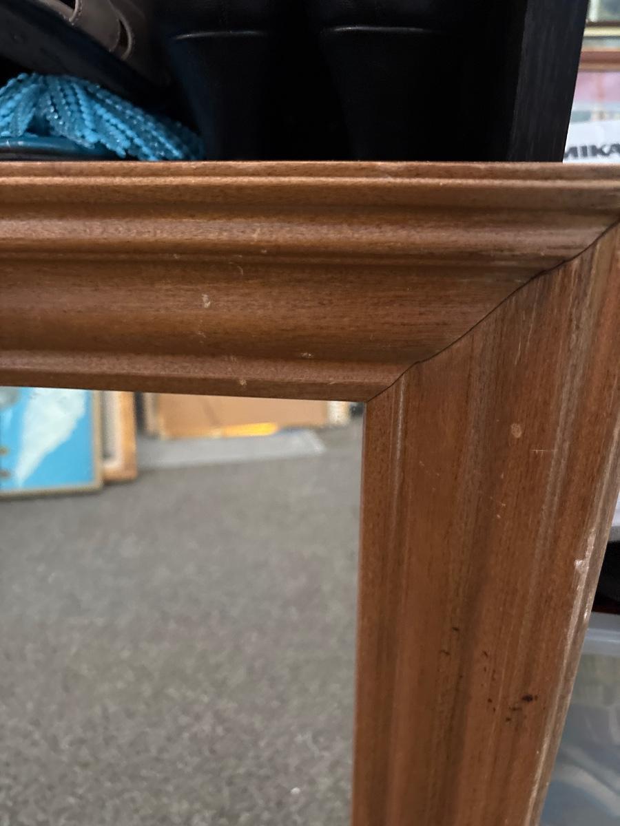 Was used on a dresser, but could be adapted for wall use. 38x32