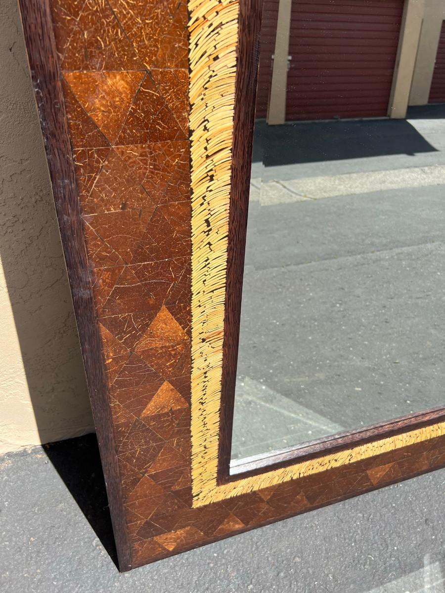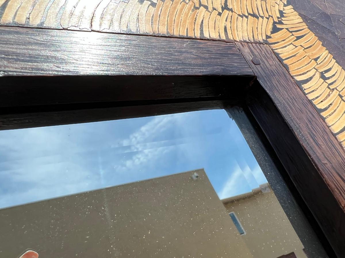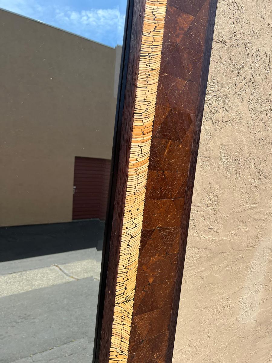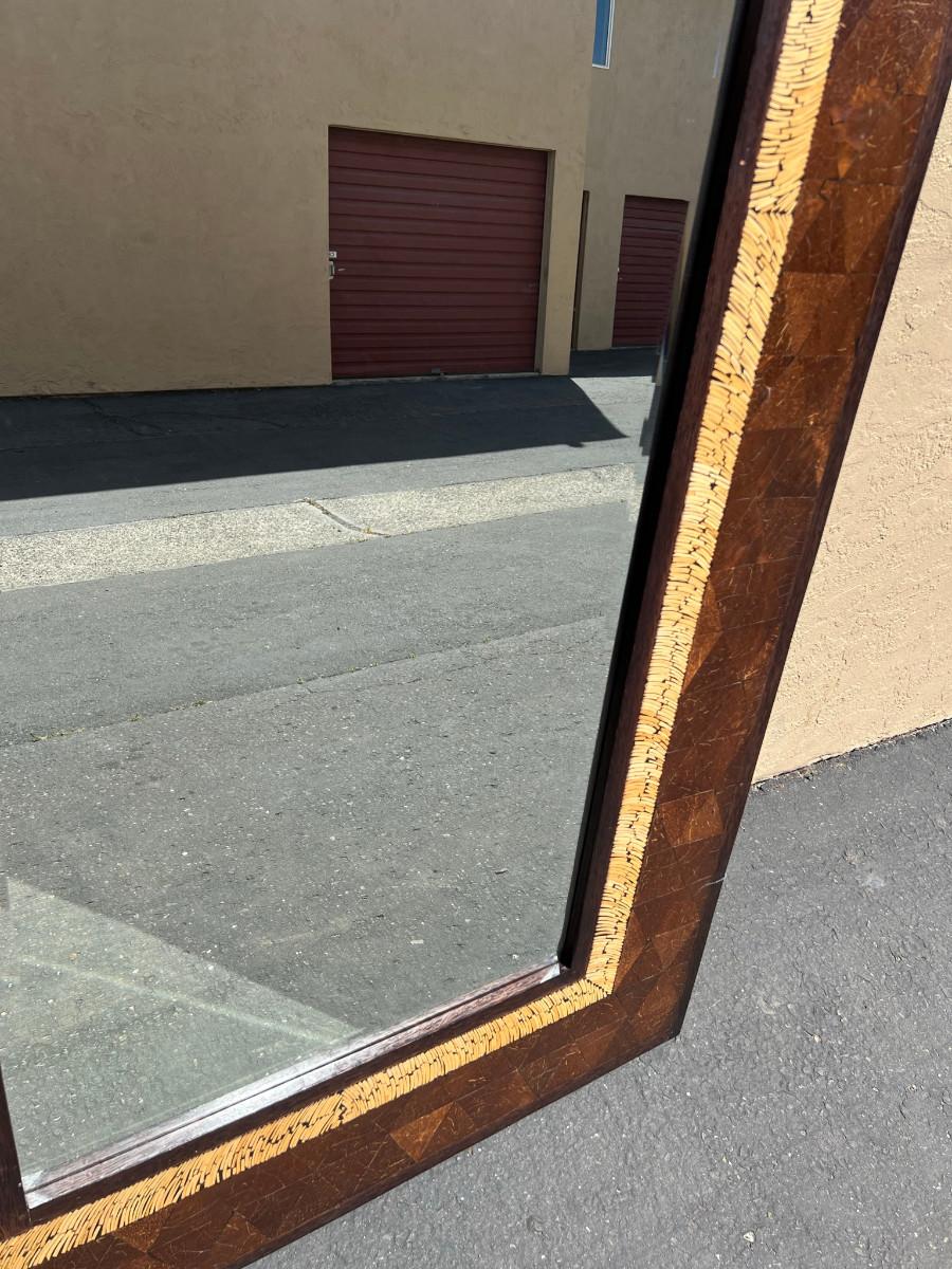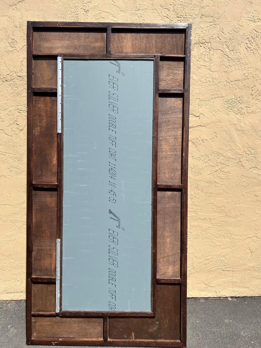 Rectangular mirror with interesting frame. 39" tall x 79" wide by 1" thick. Must bring help to load this item